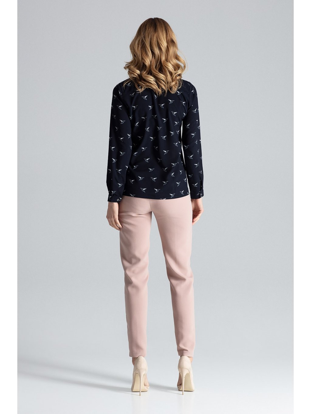 Könnyű sötétkék ing madár mintával