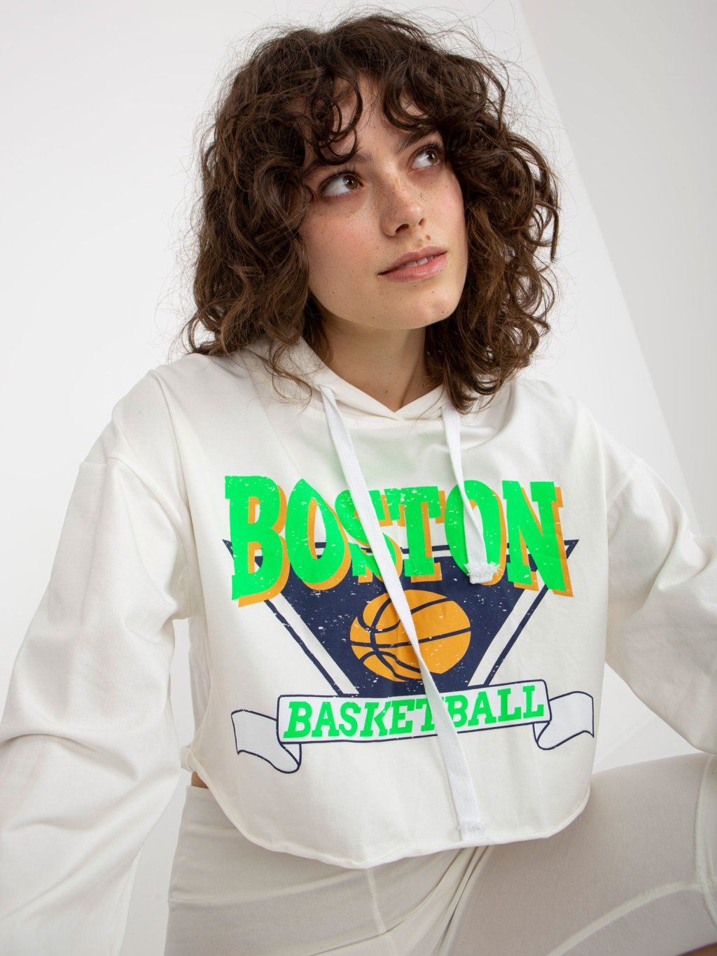 Krémszínű női sportos szett, rövidnadrág és pulóver