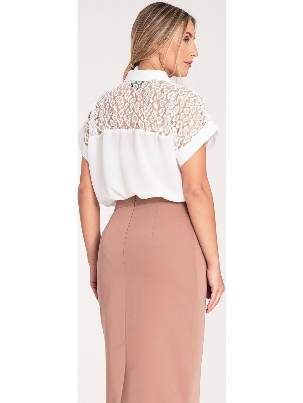 Krémszínű ing csipkével és gallérral
