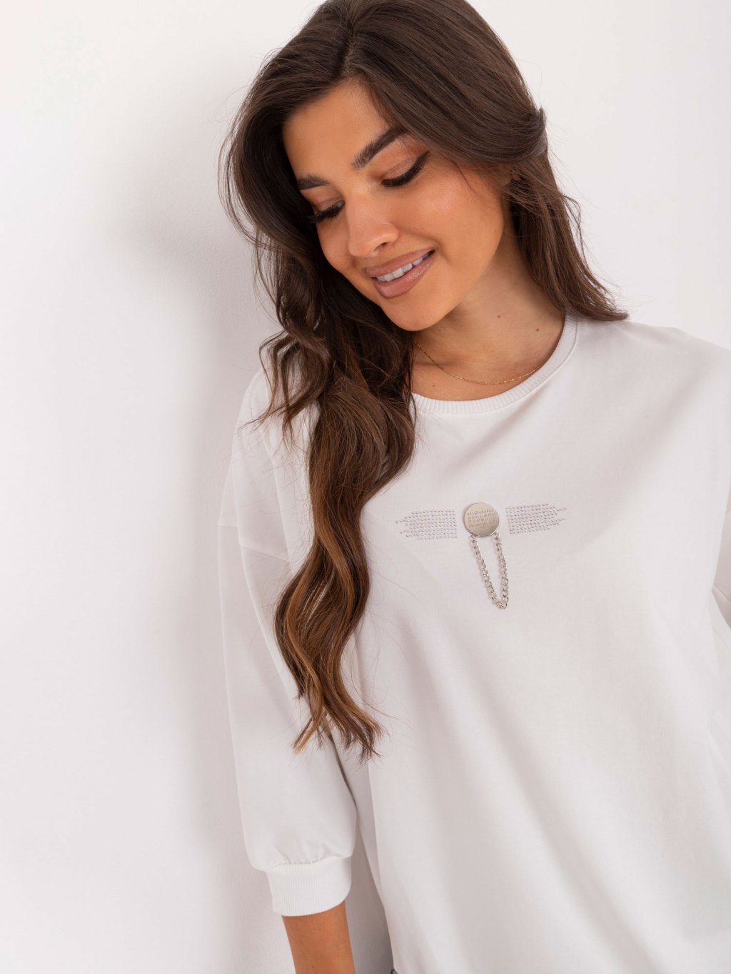 Krémszínű könnyű pulóver rátéttel