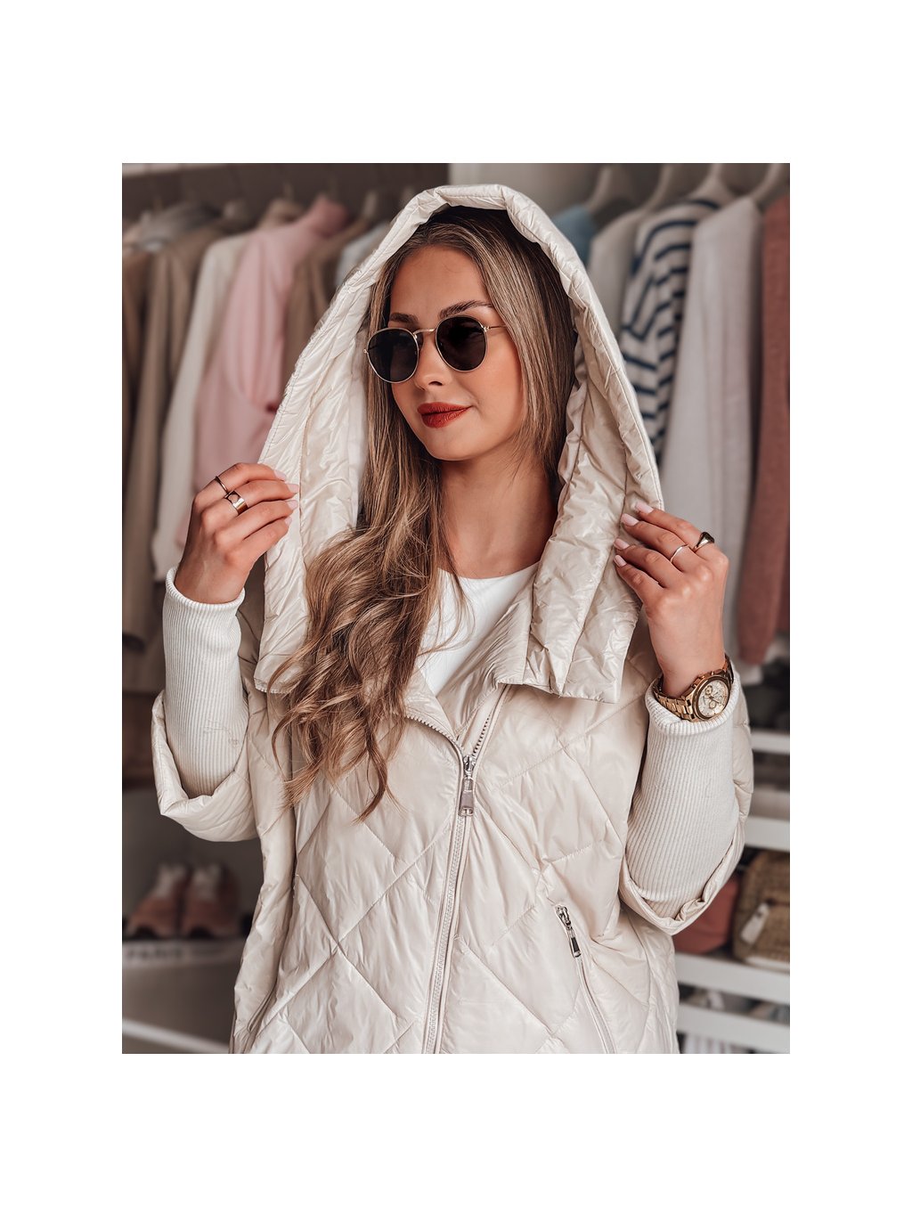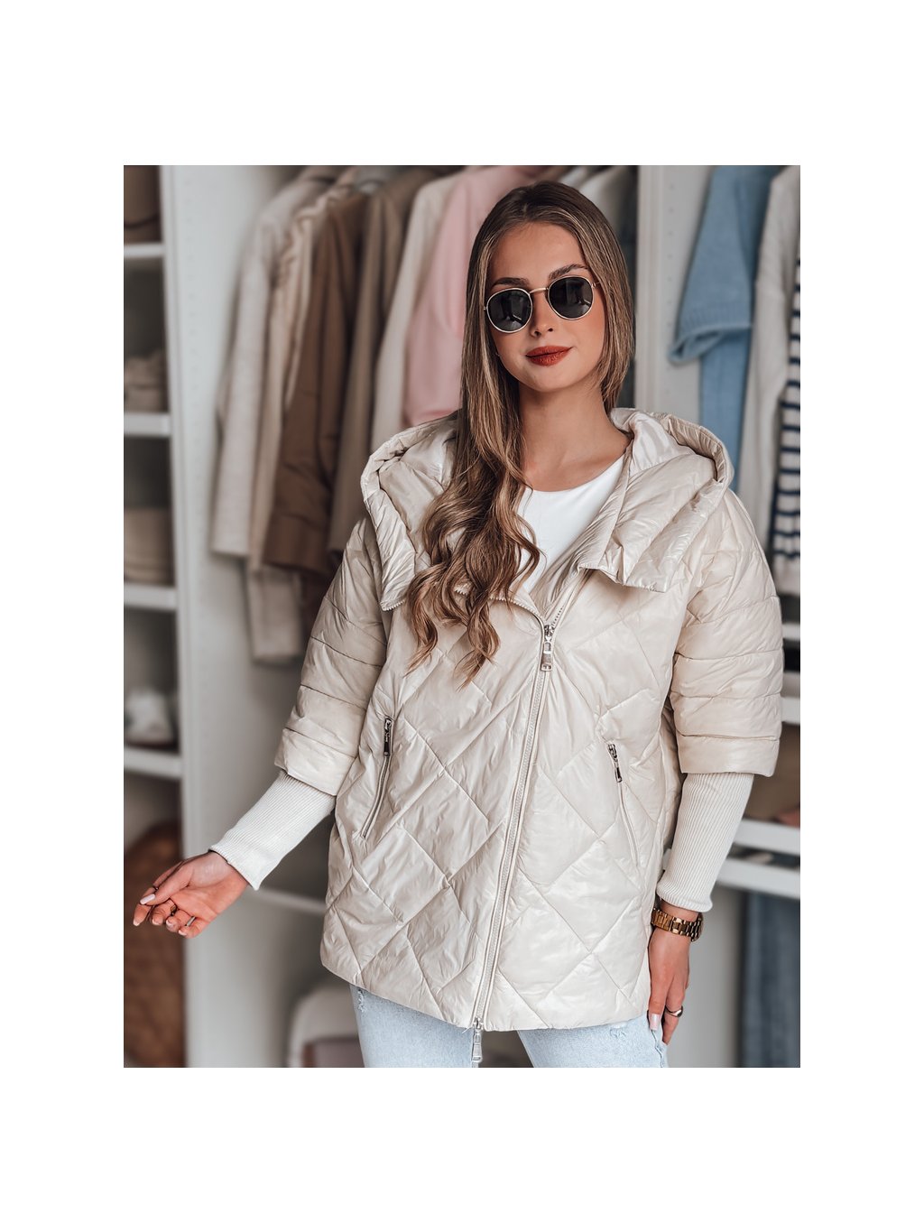 Krémszínű női átmeneti kabát mandzsettával az ujjakon PUFFILOF