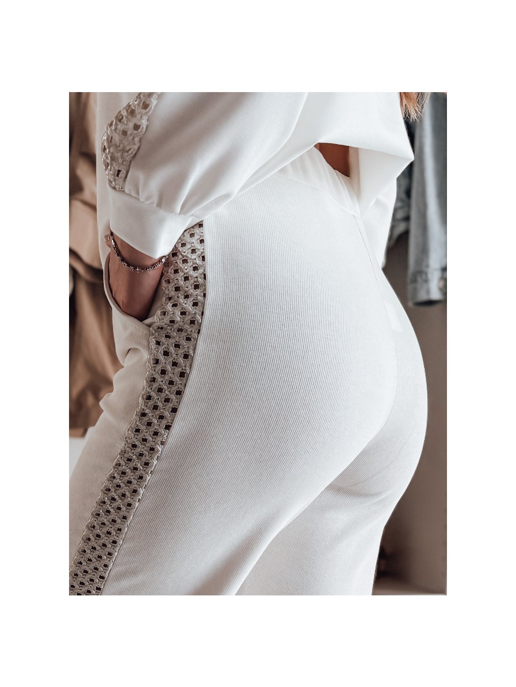 Krémszínű női bordázott melegítőnadrág oldalán dekorcsipkével LUXEEN