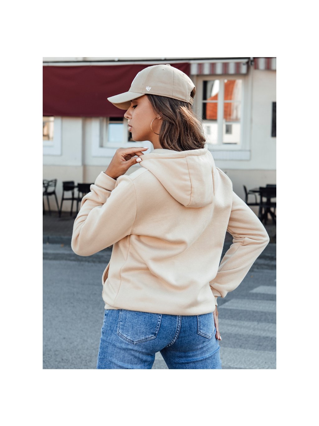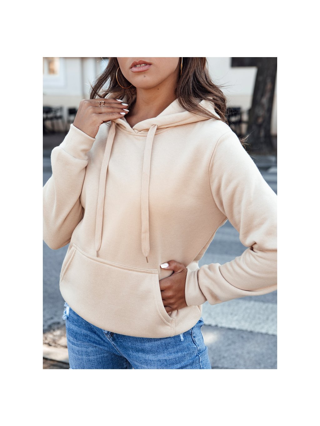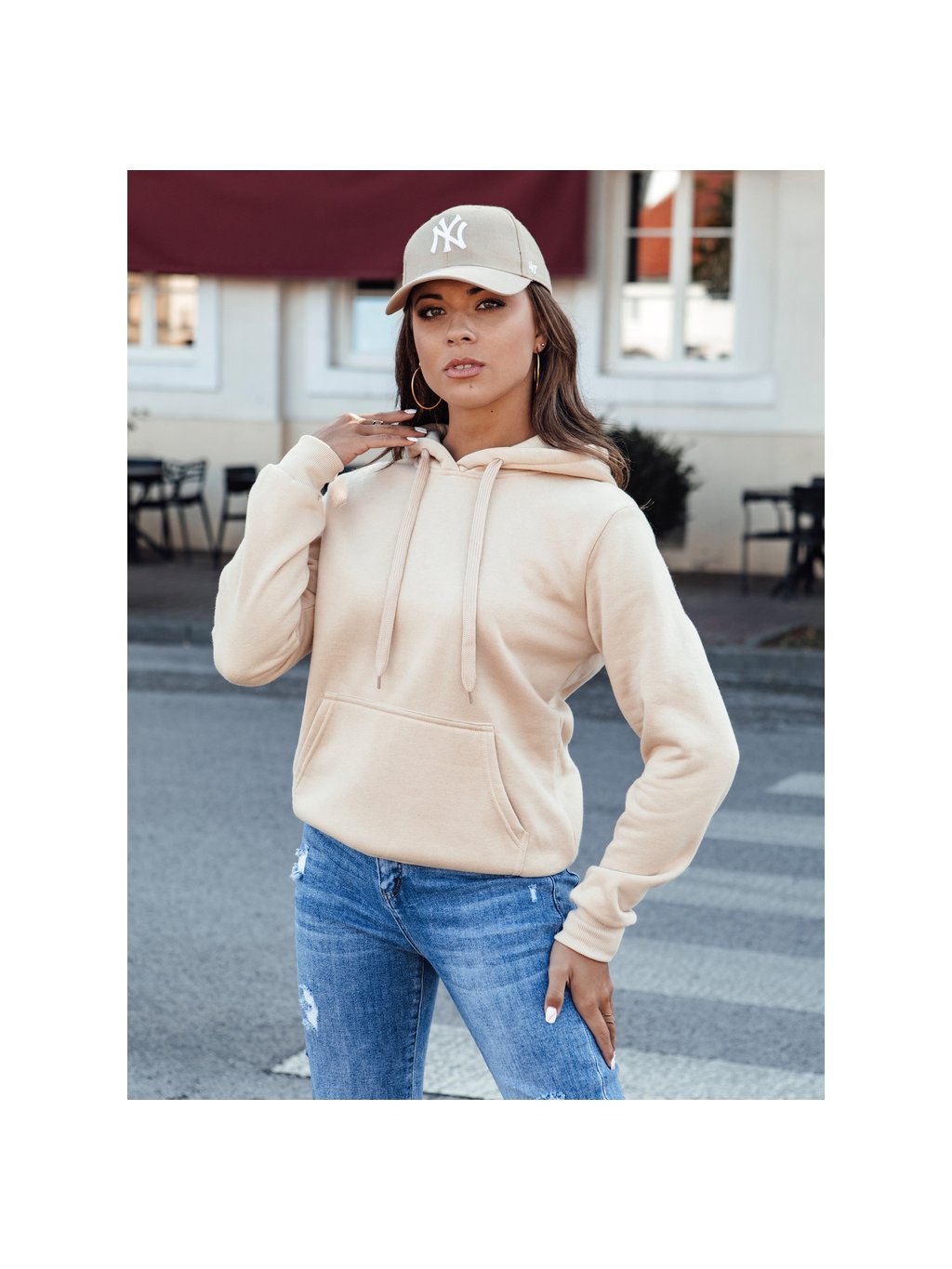 Krémszínű női kapucnis pulóver BASIC