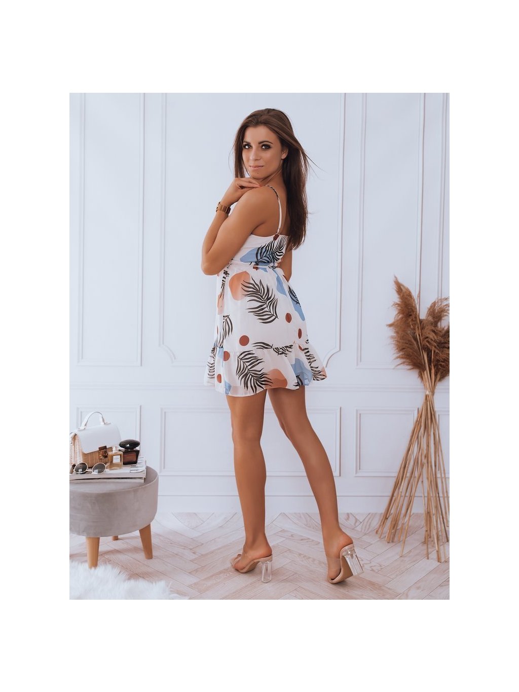 Krémszínű nyári ruha levélmintával HESSA