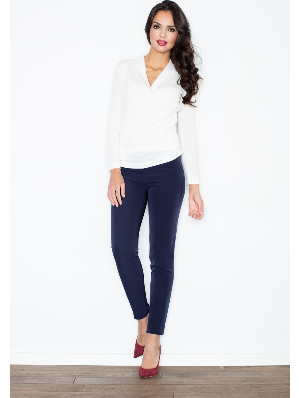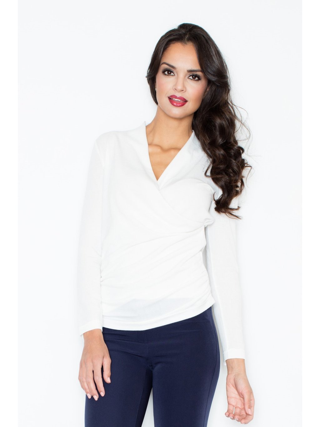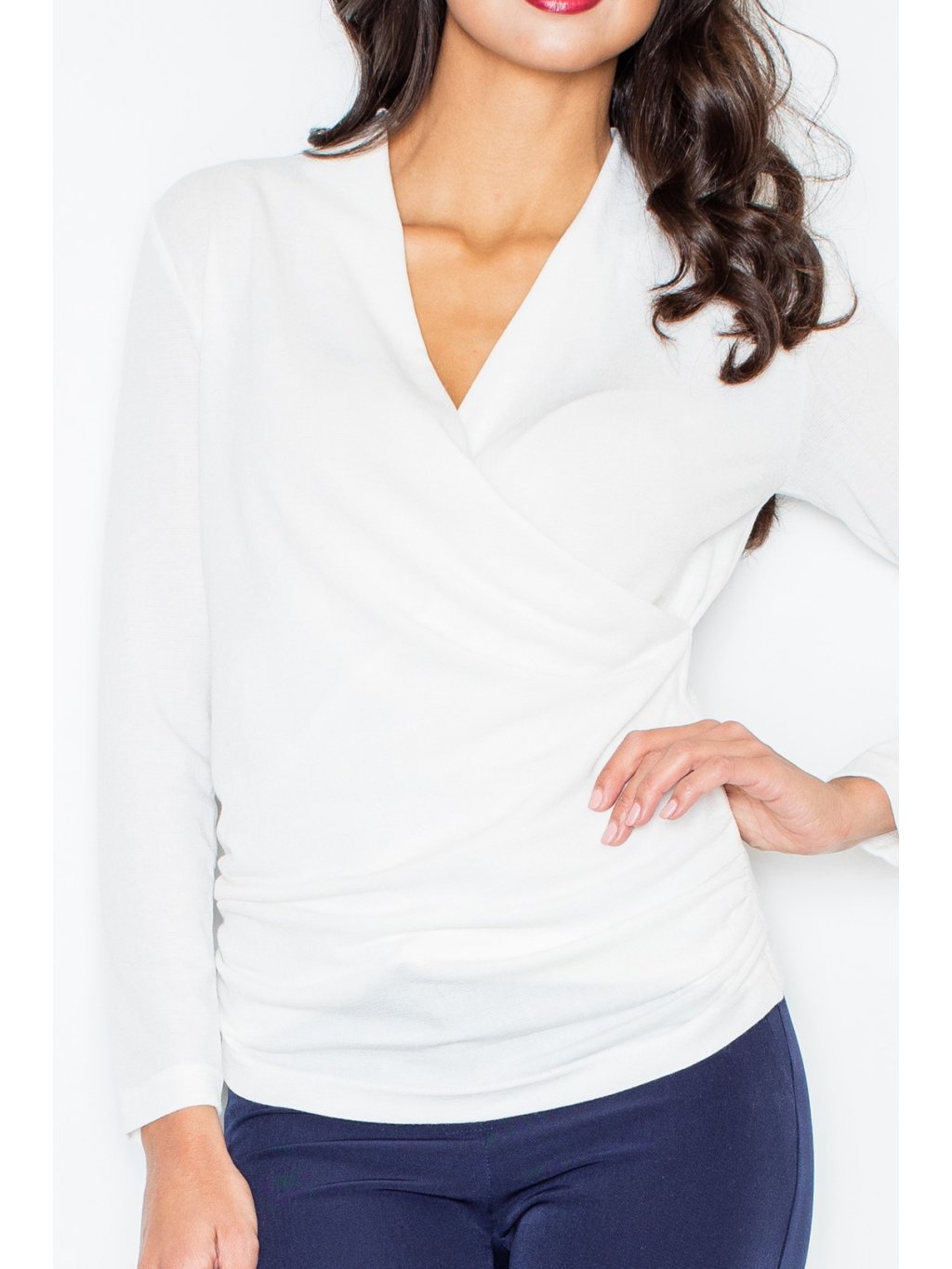 - Redőzött V-alakú nyakkivágás.