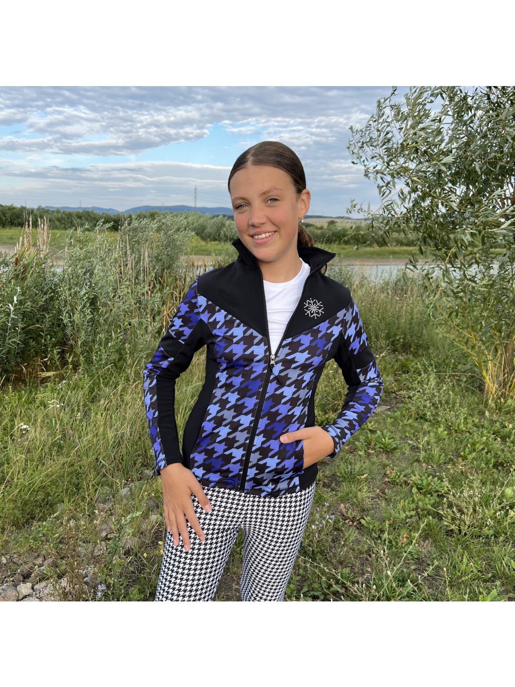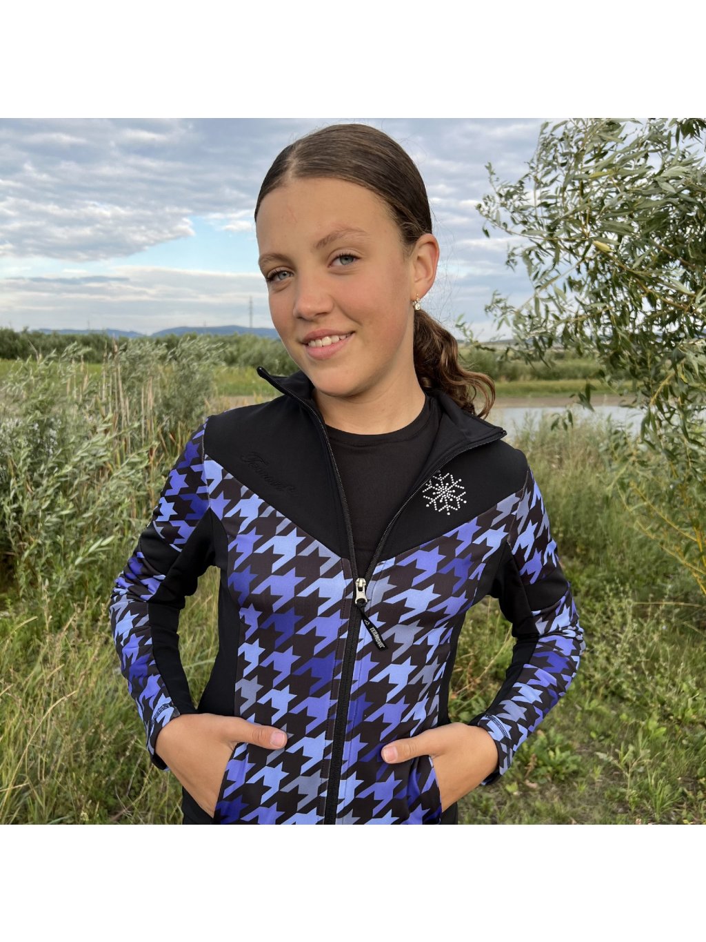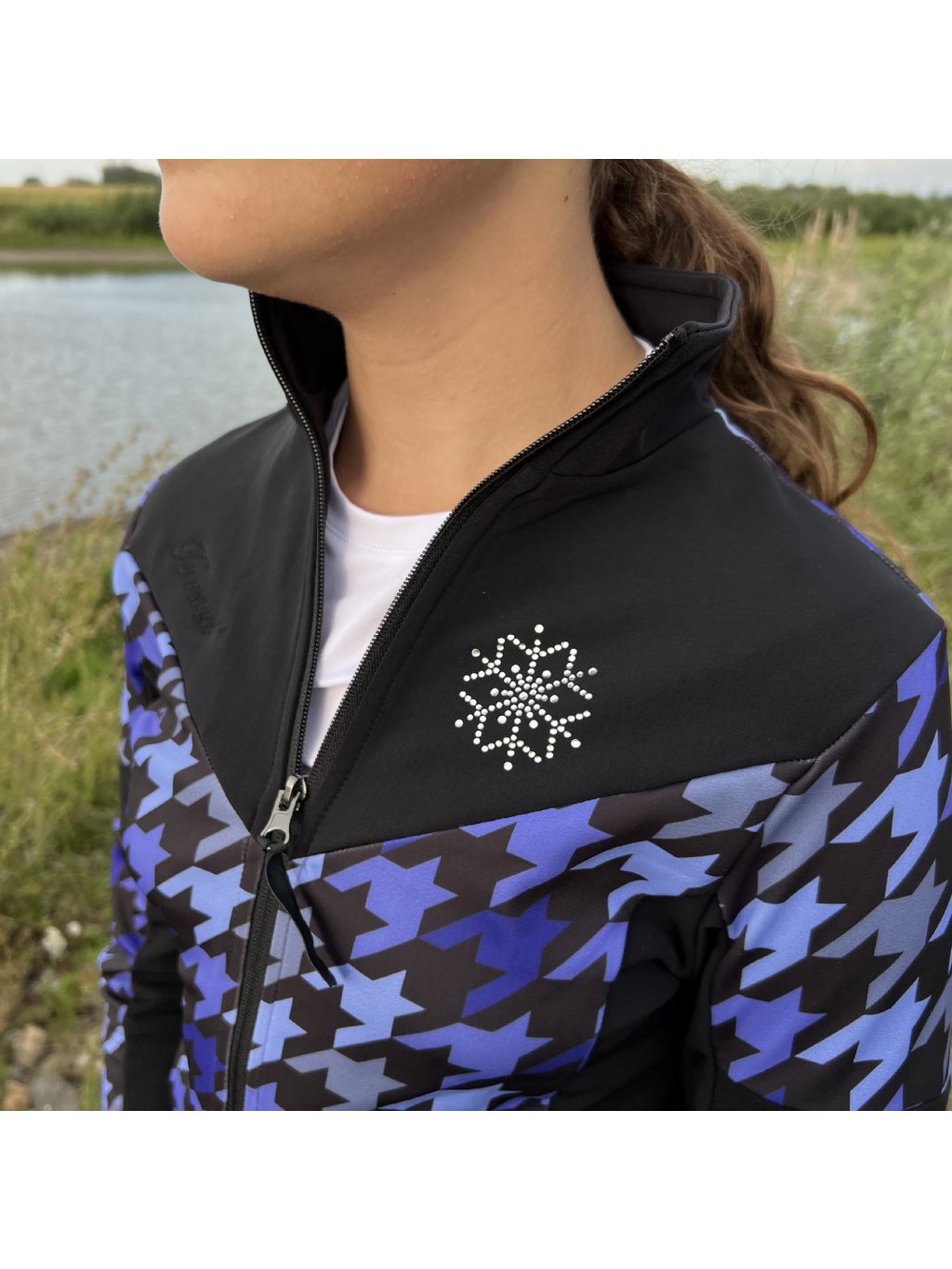 Lány fekete-lila funkcionális pulóver strasszos díszítéssel