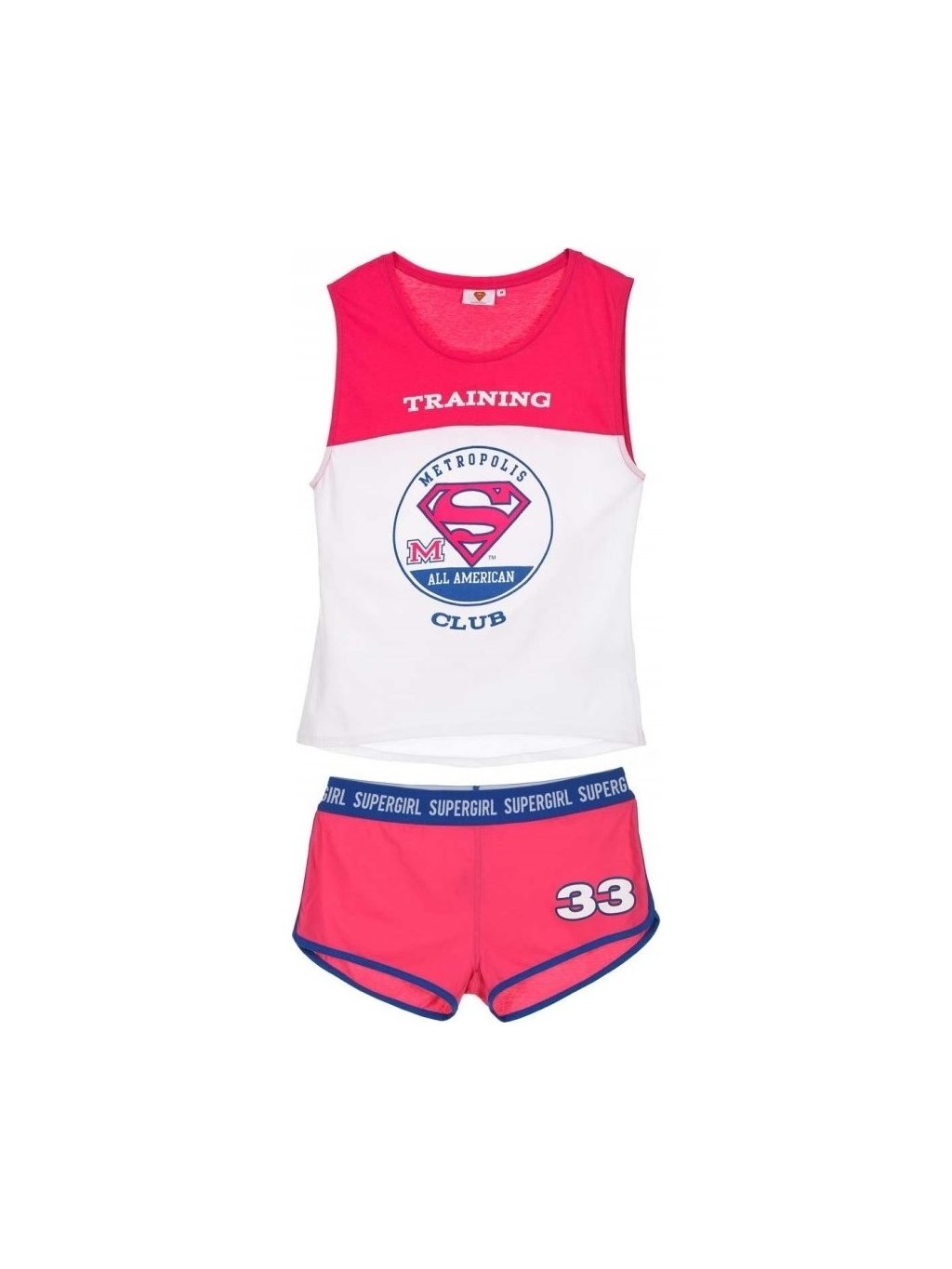 Női nyári pizsama Supergirl - rózsaszín-fehér