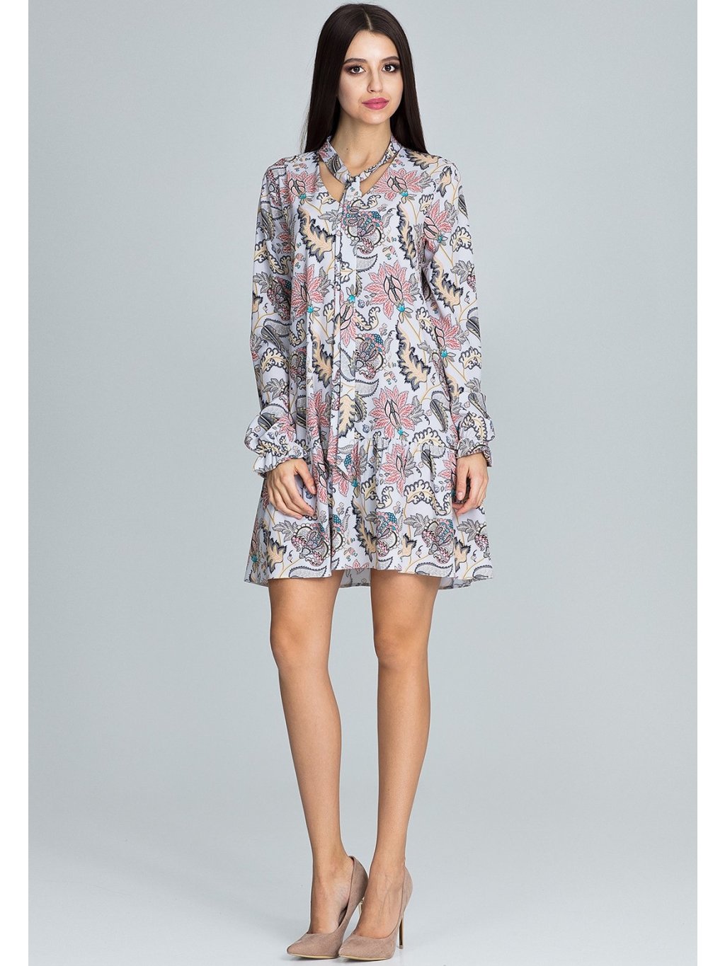 Az ujjak hosszúak, a szoknya rövidebb szabású.