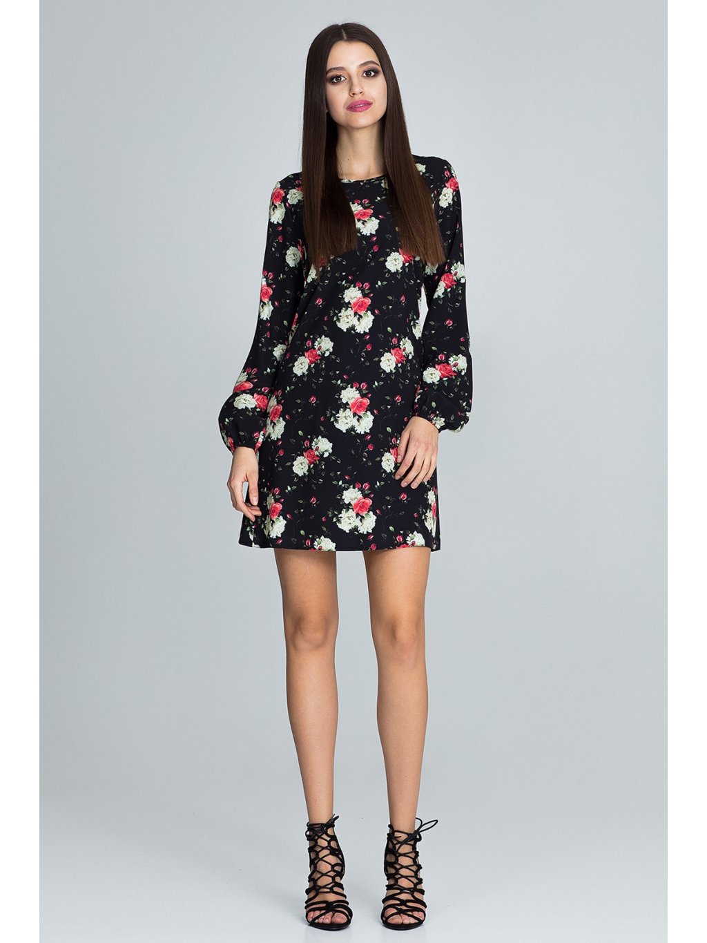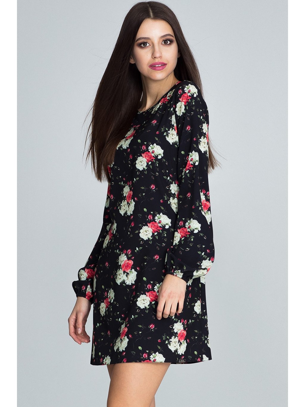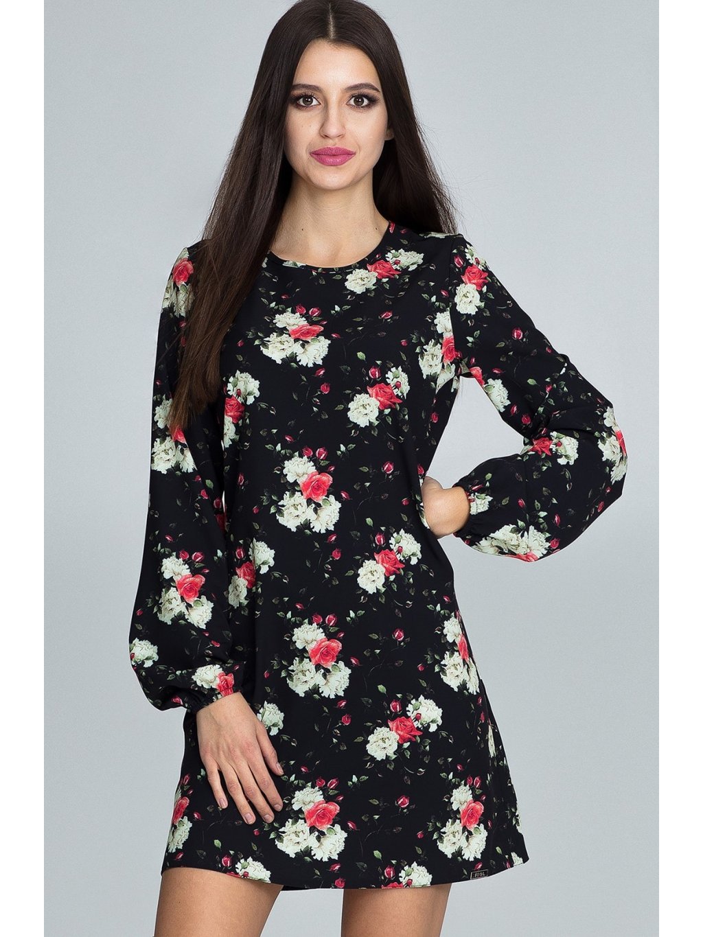 Az ujjak hosszúak, a szoknya rövidebb szabású.