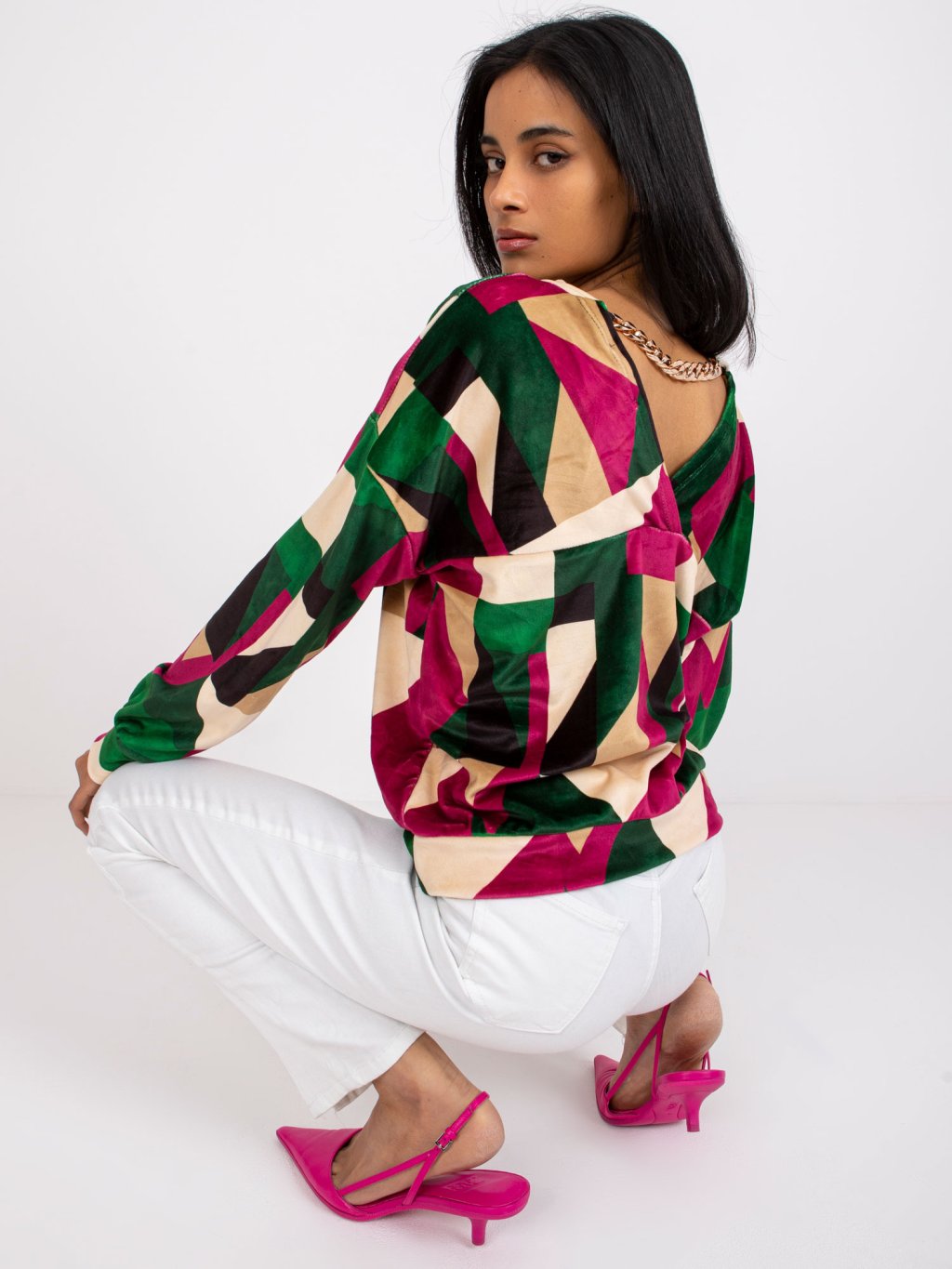 Liliana zöld-rózsaszín velúr blúz