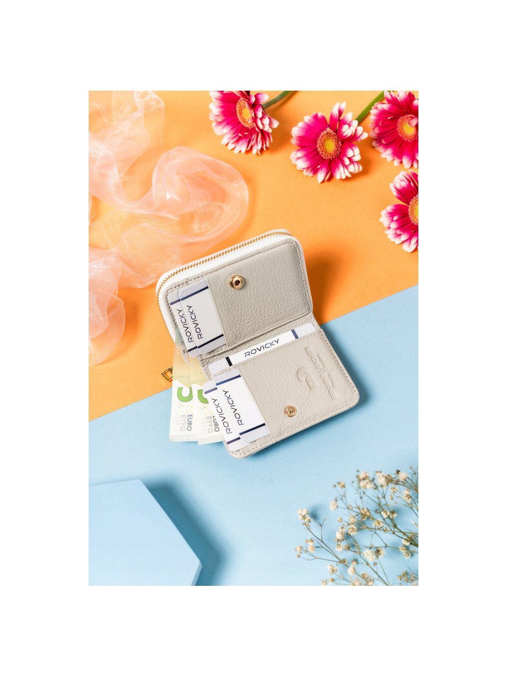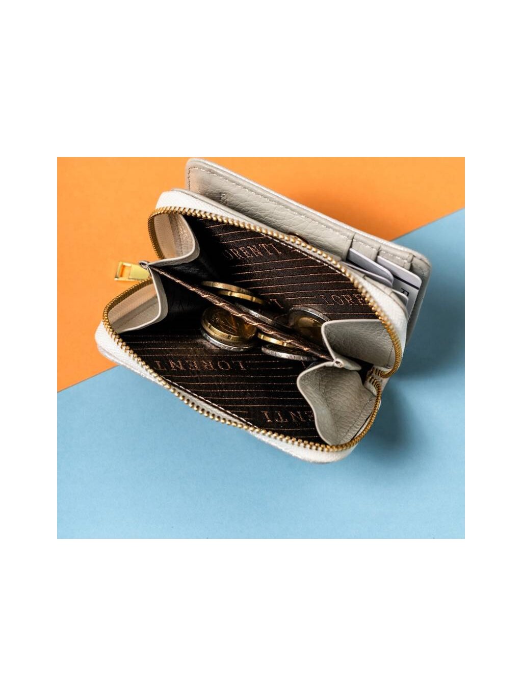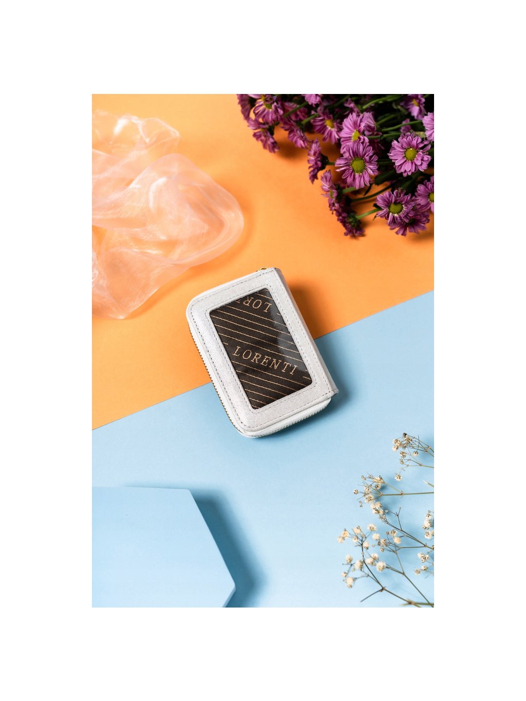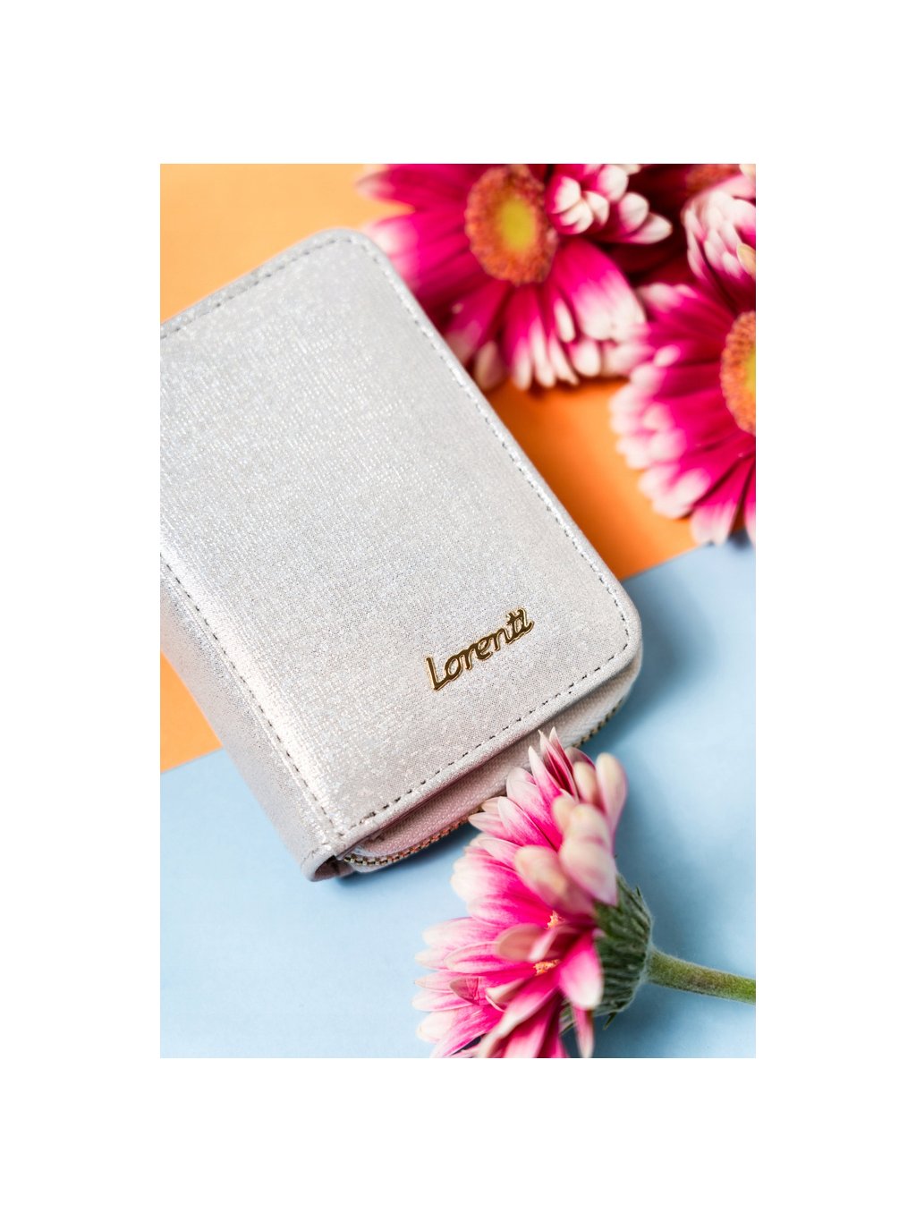 Lorenti ezüst színű kis cipzáras bőr pénztárca S291