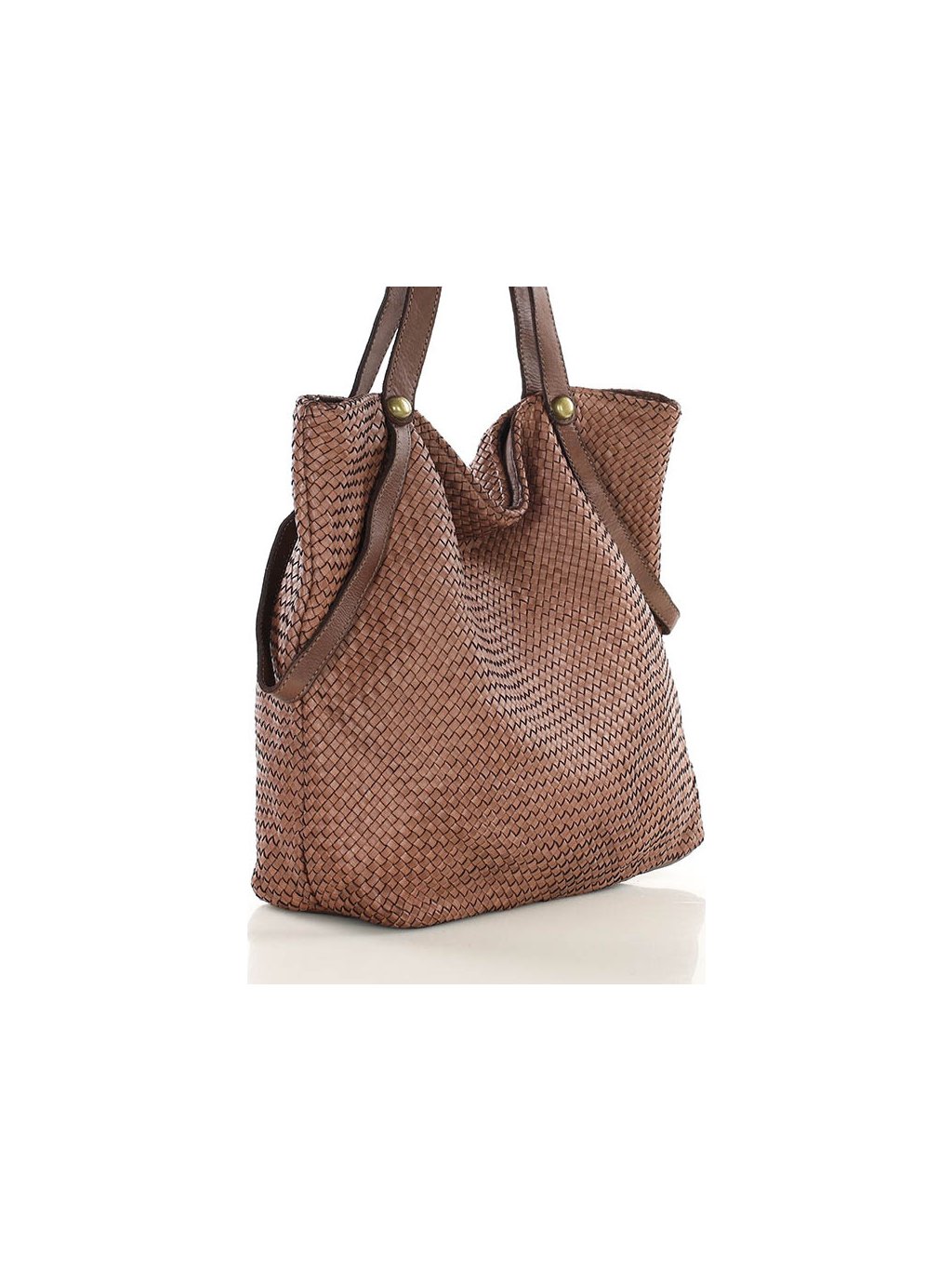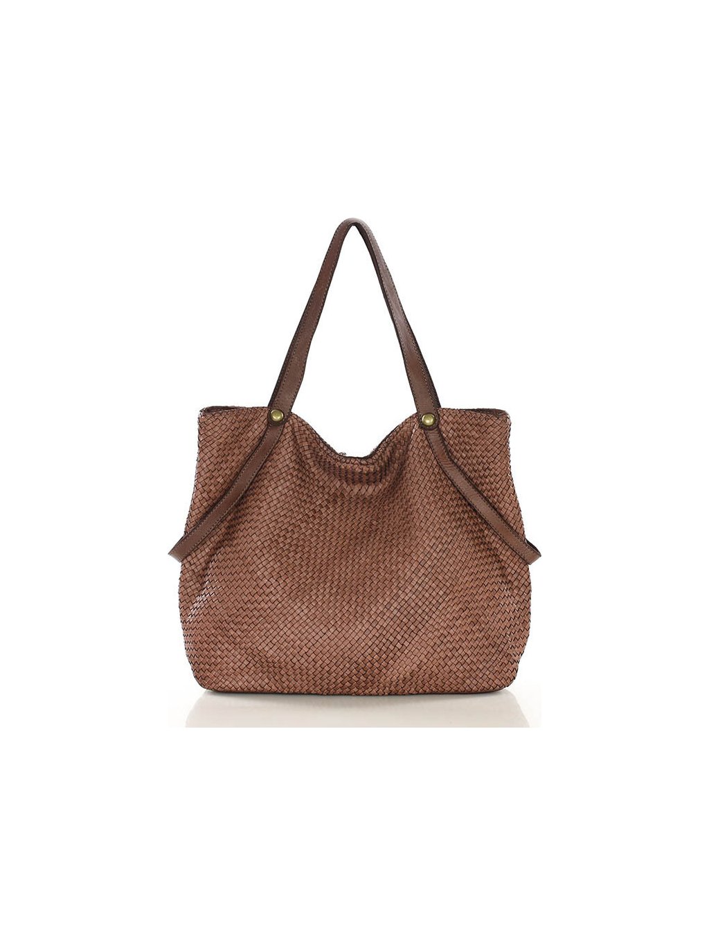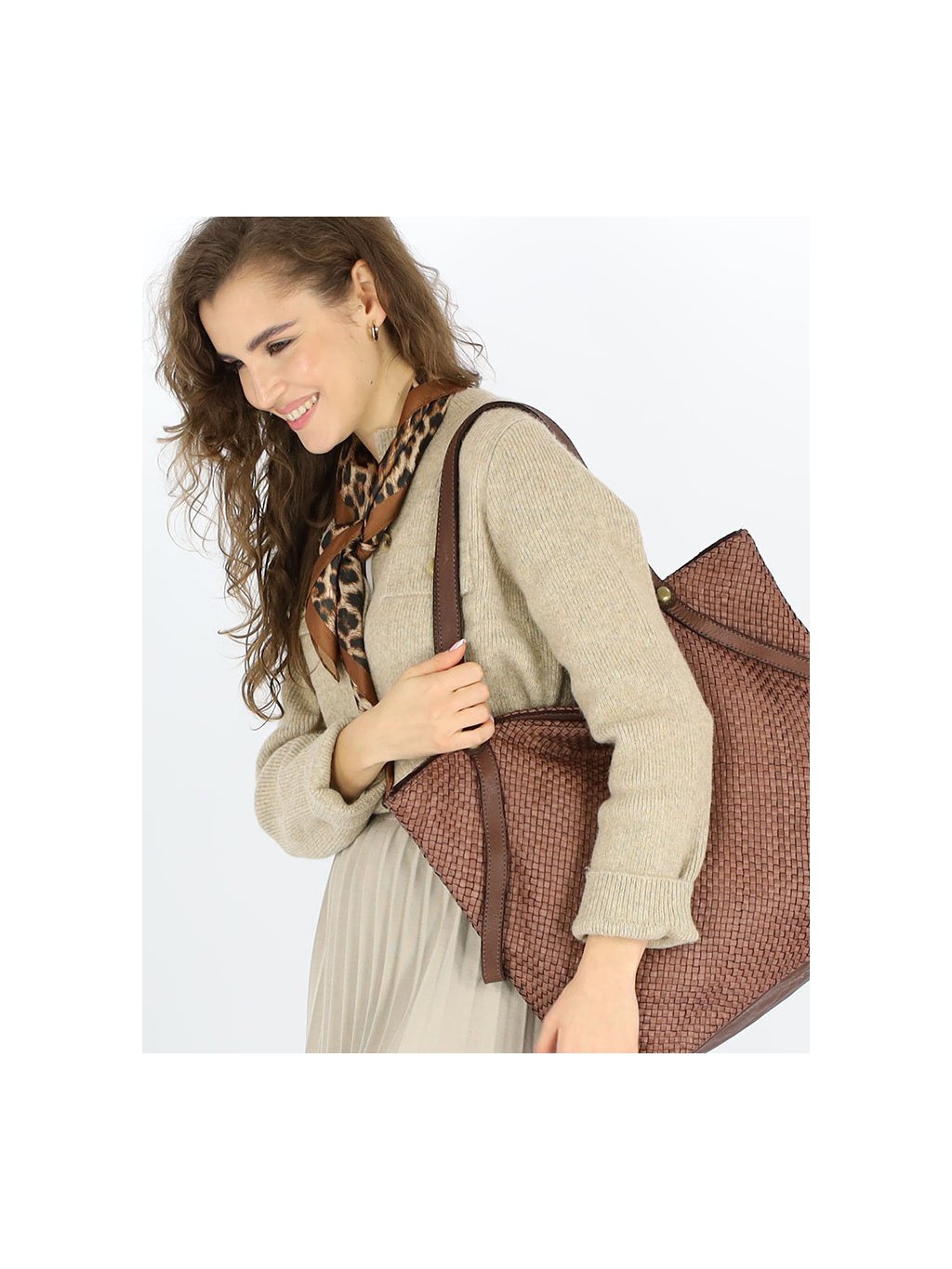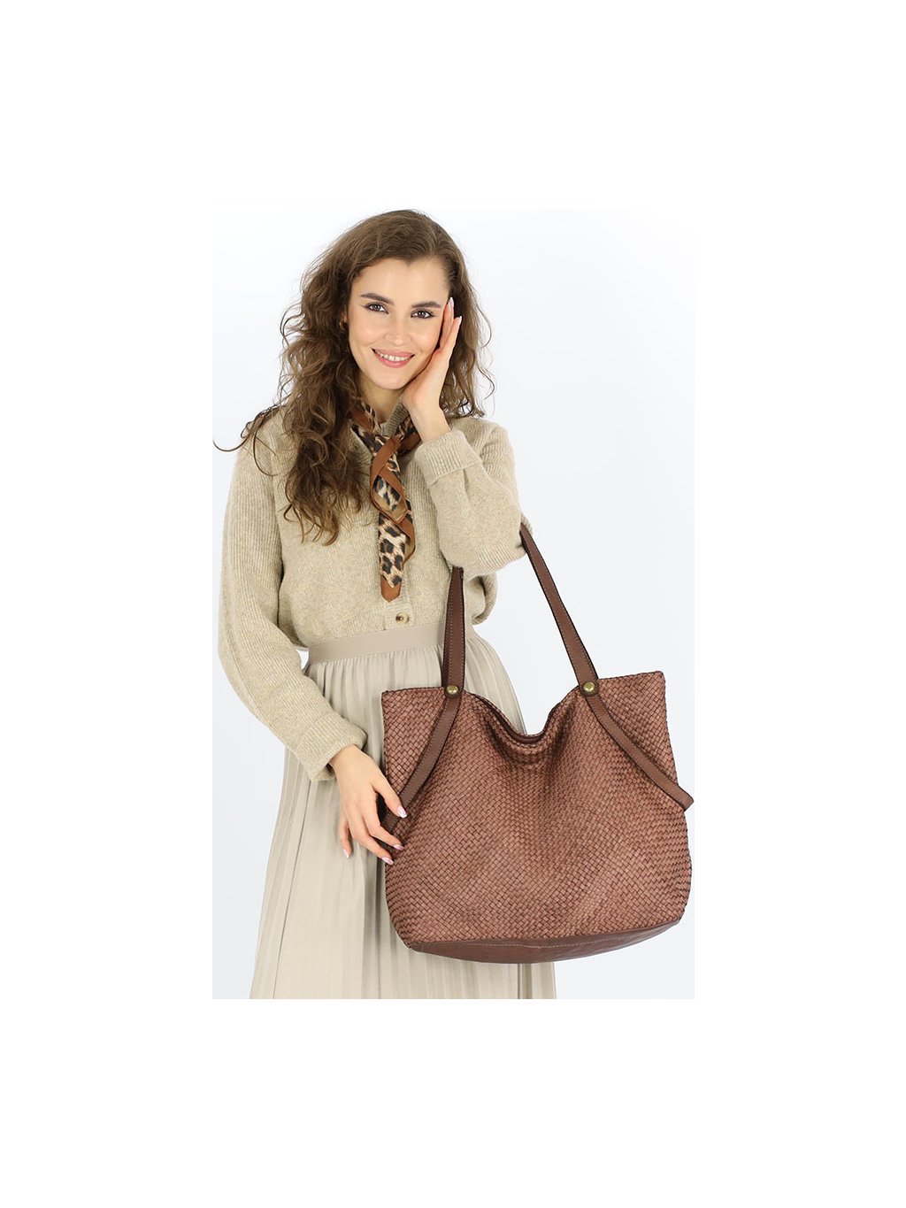 MARCO MAZZINI barna nagy szőtt bőr shopper táska