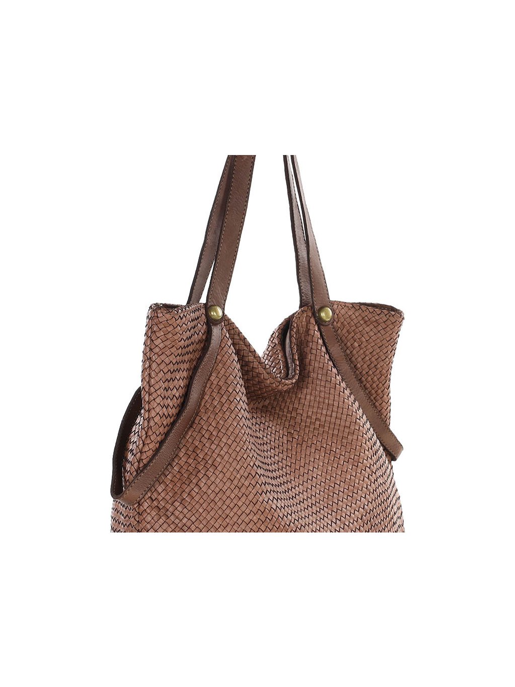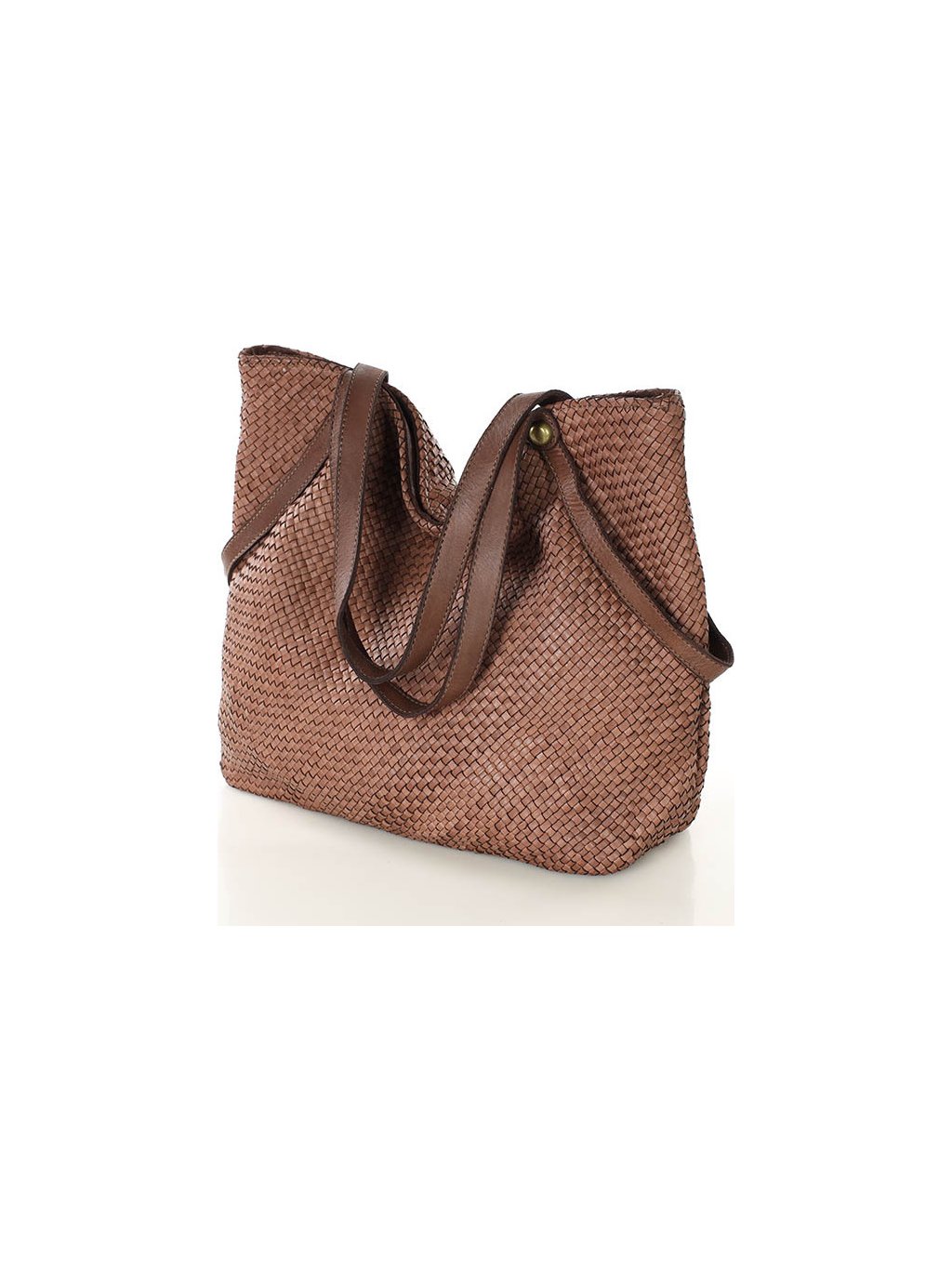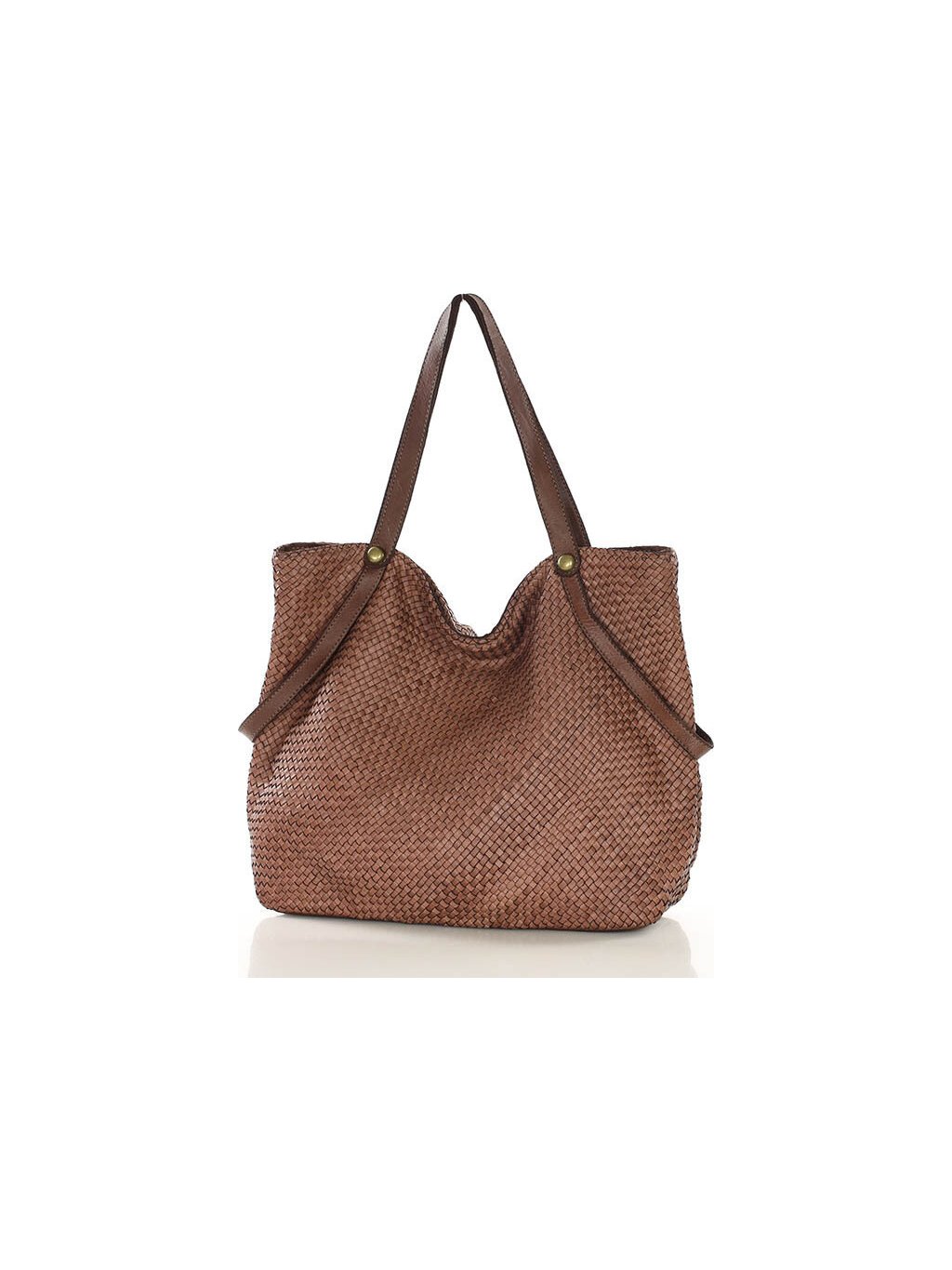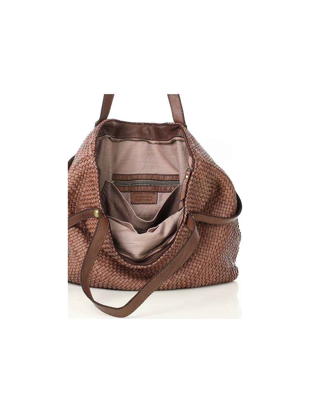 MARCO MAZZINI barna nagy szőtt bőr shopper táska