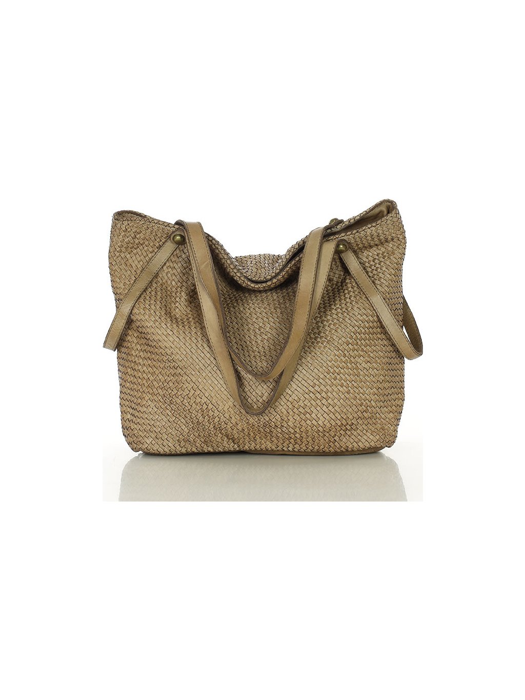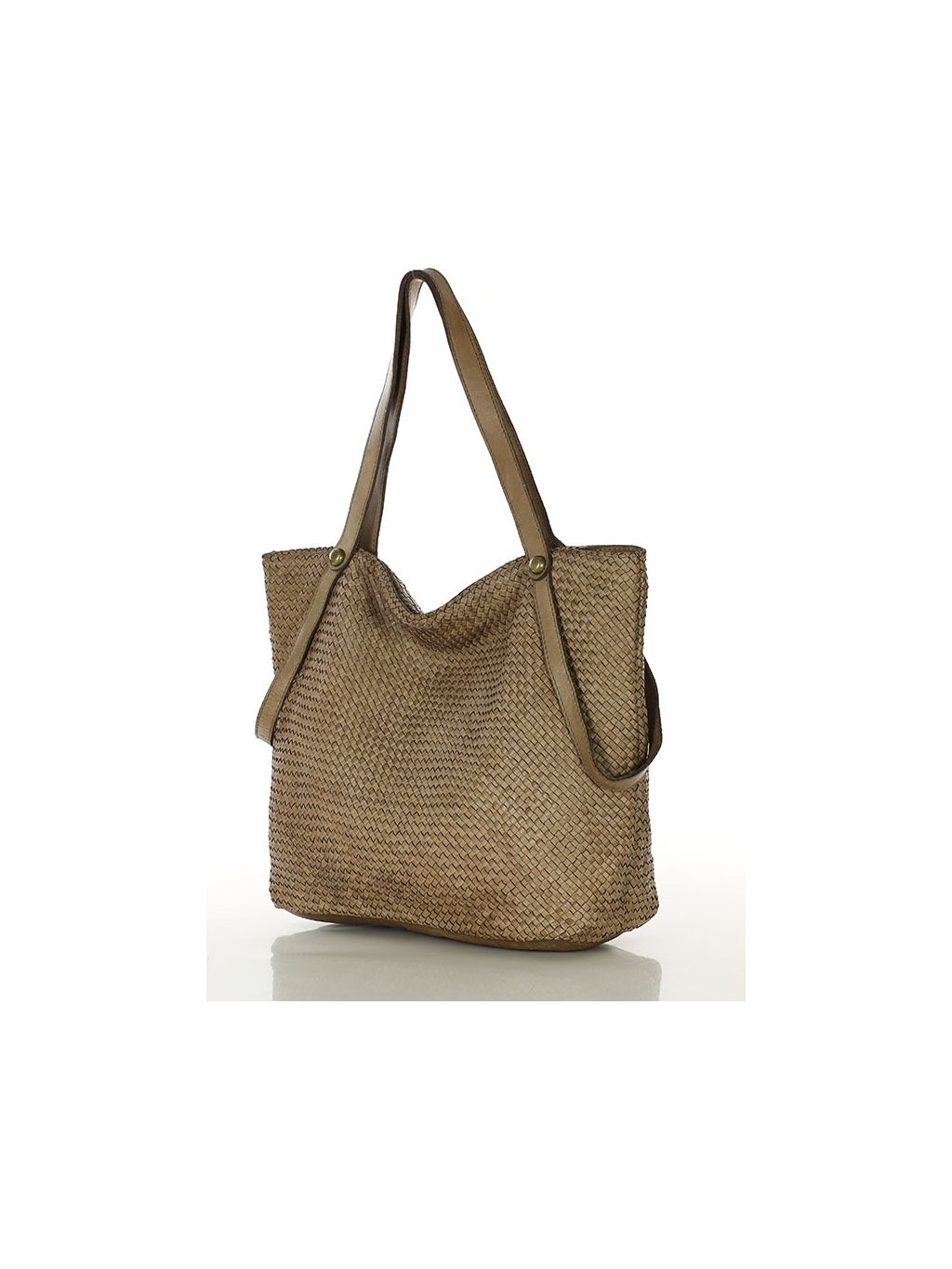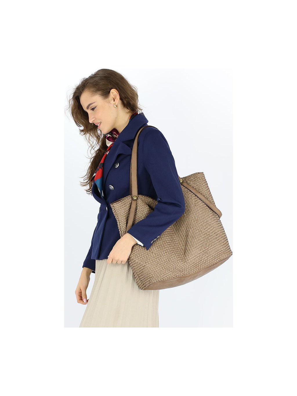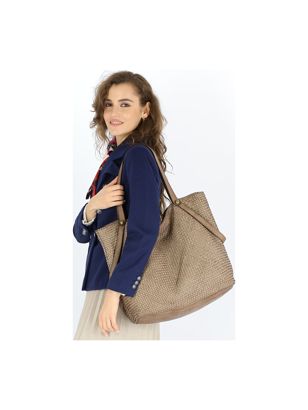 MARCO MAZZINI Bézs nagyméretű szőtt bőr shopper táska