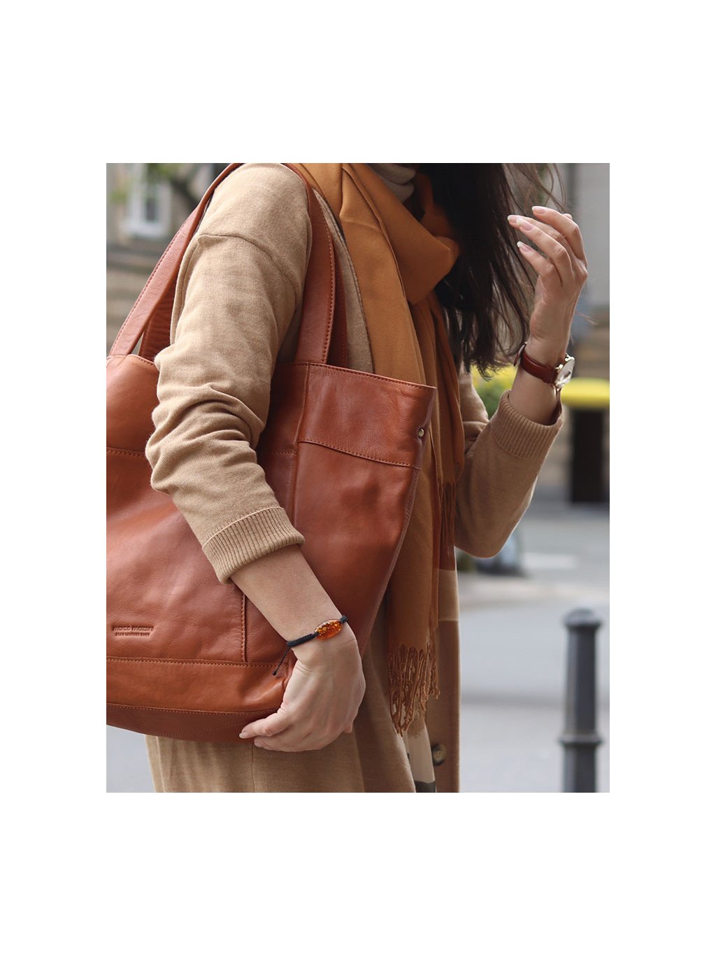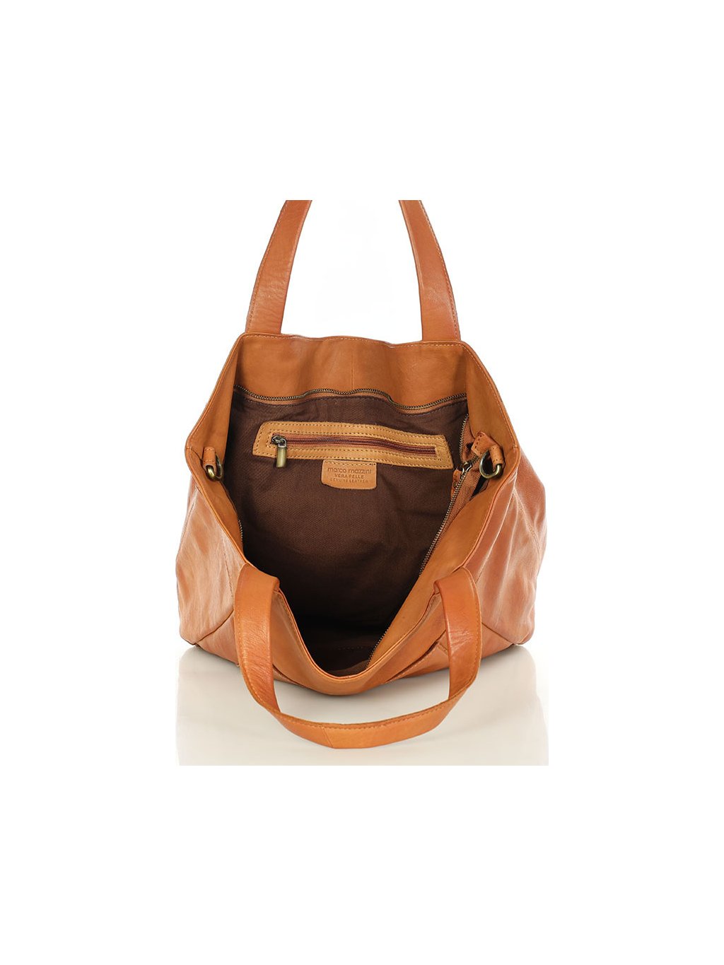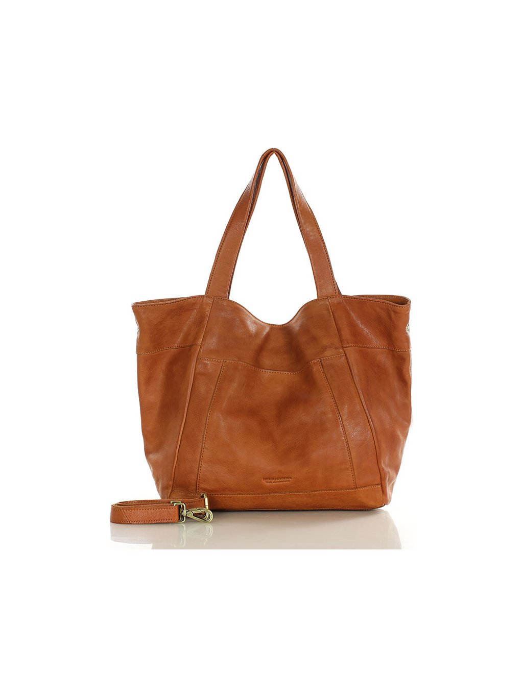 MARCO MAZZINI Camel nagy női bőr shopper táska