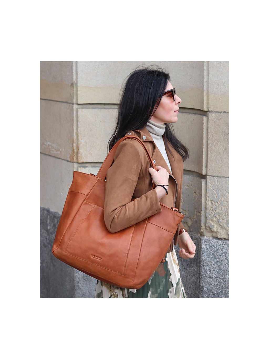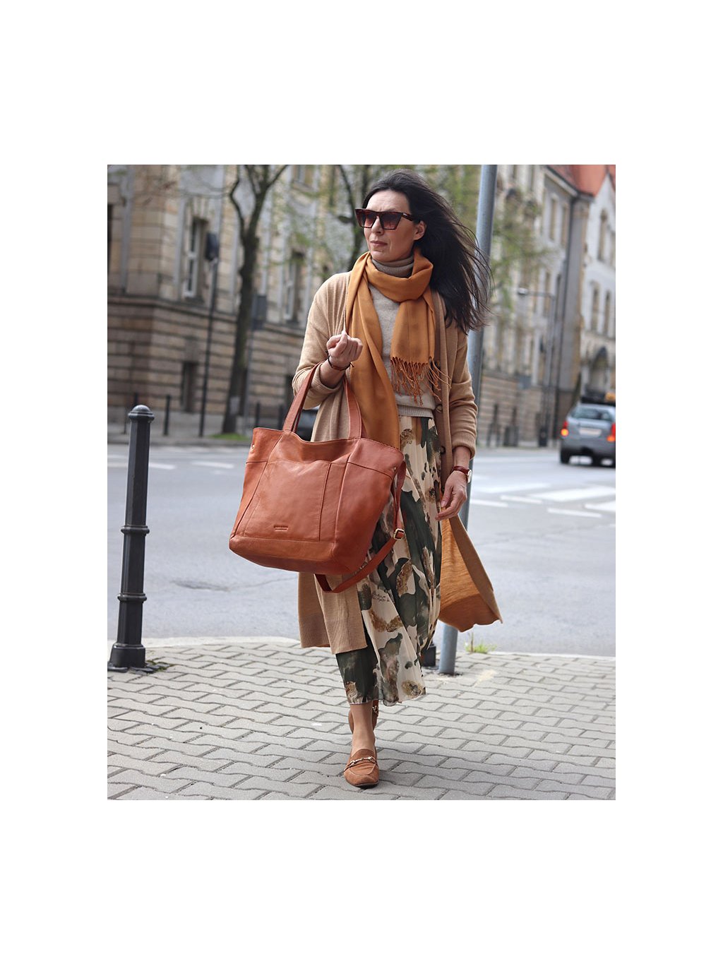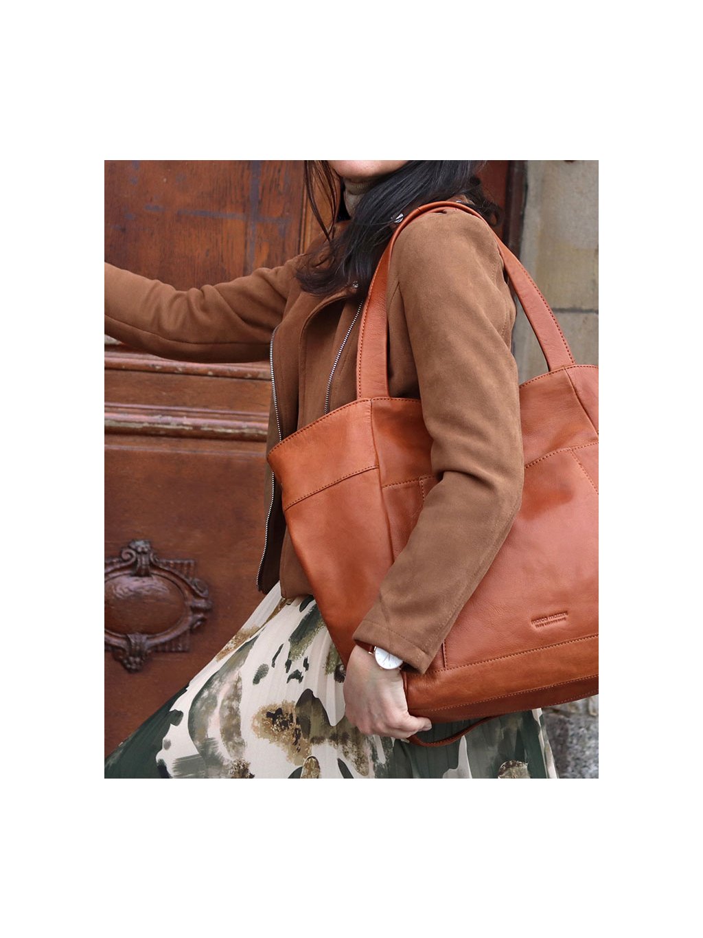 MARCO MAZZINI Camel nagy női bőr shopper táska