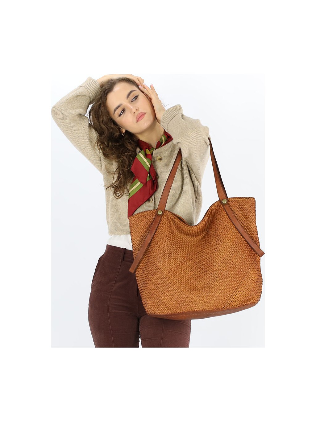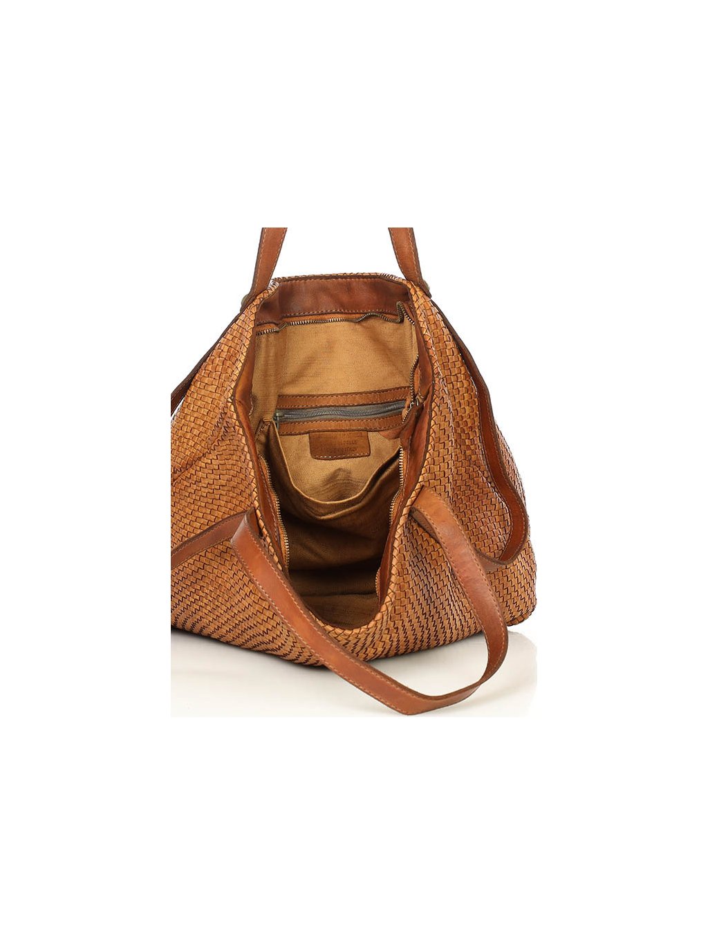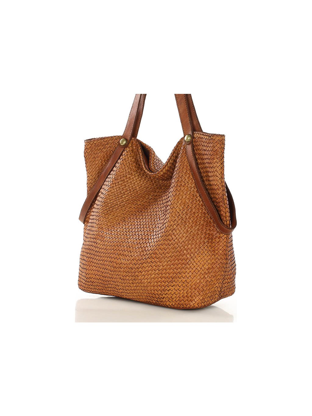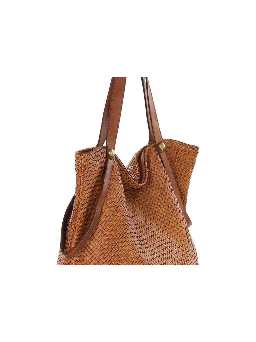 MARCO MAZZINI Camel színű nagy szőtt bőr shopper táska