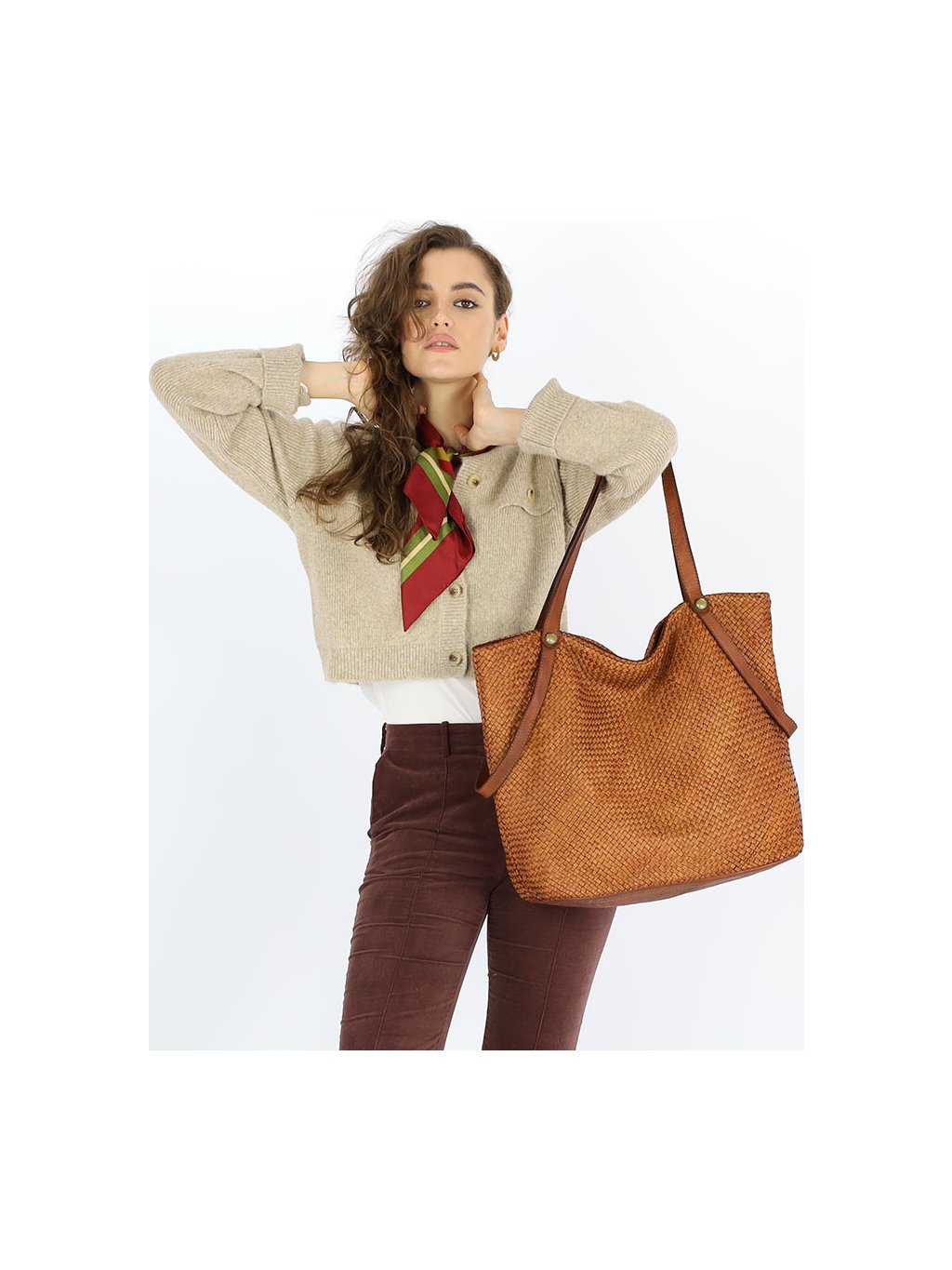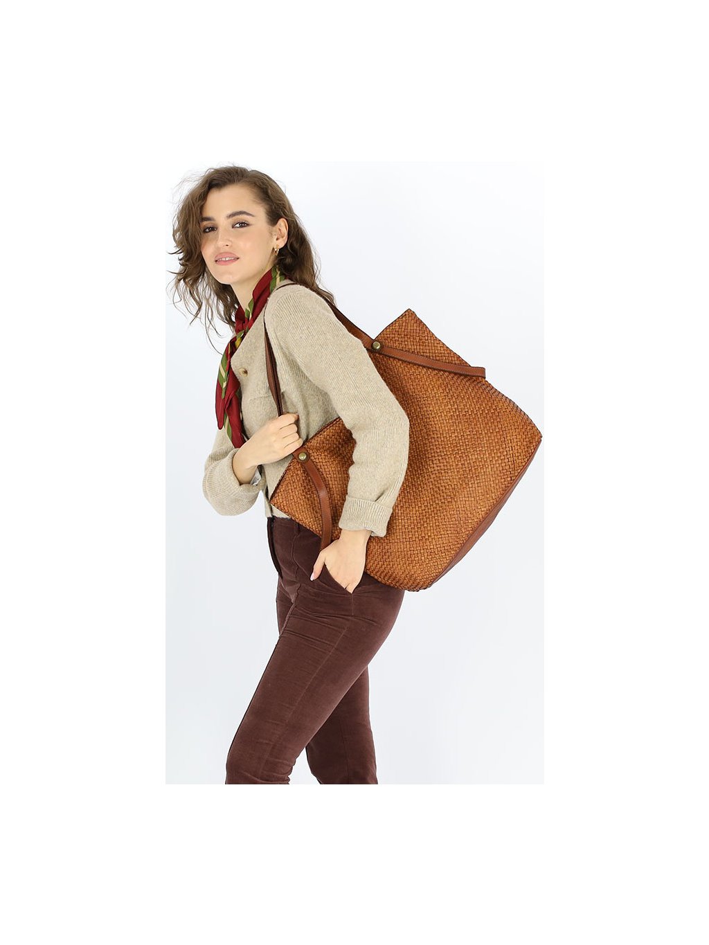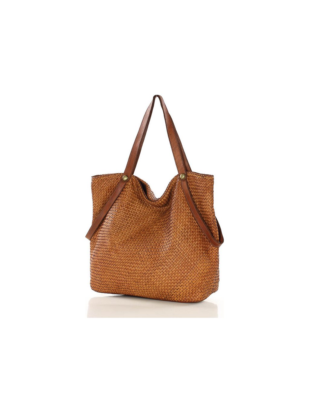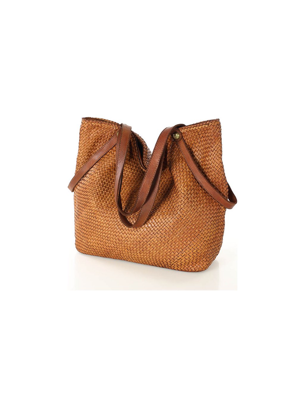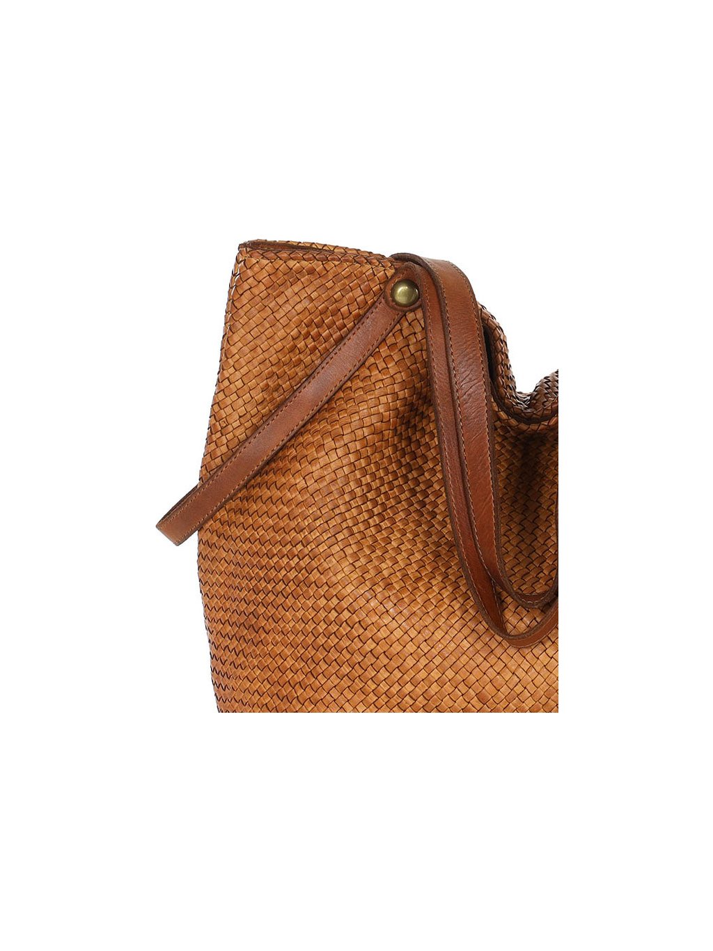 MARCO MAZZINI Camel színű nagy szőtt bőr shopper táska