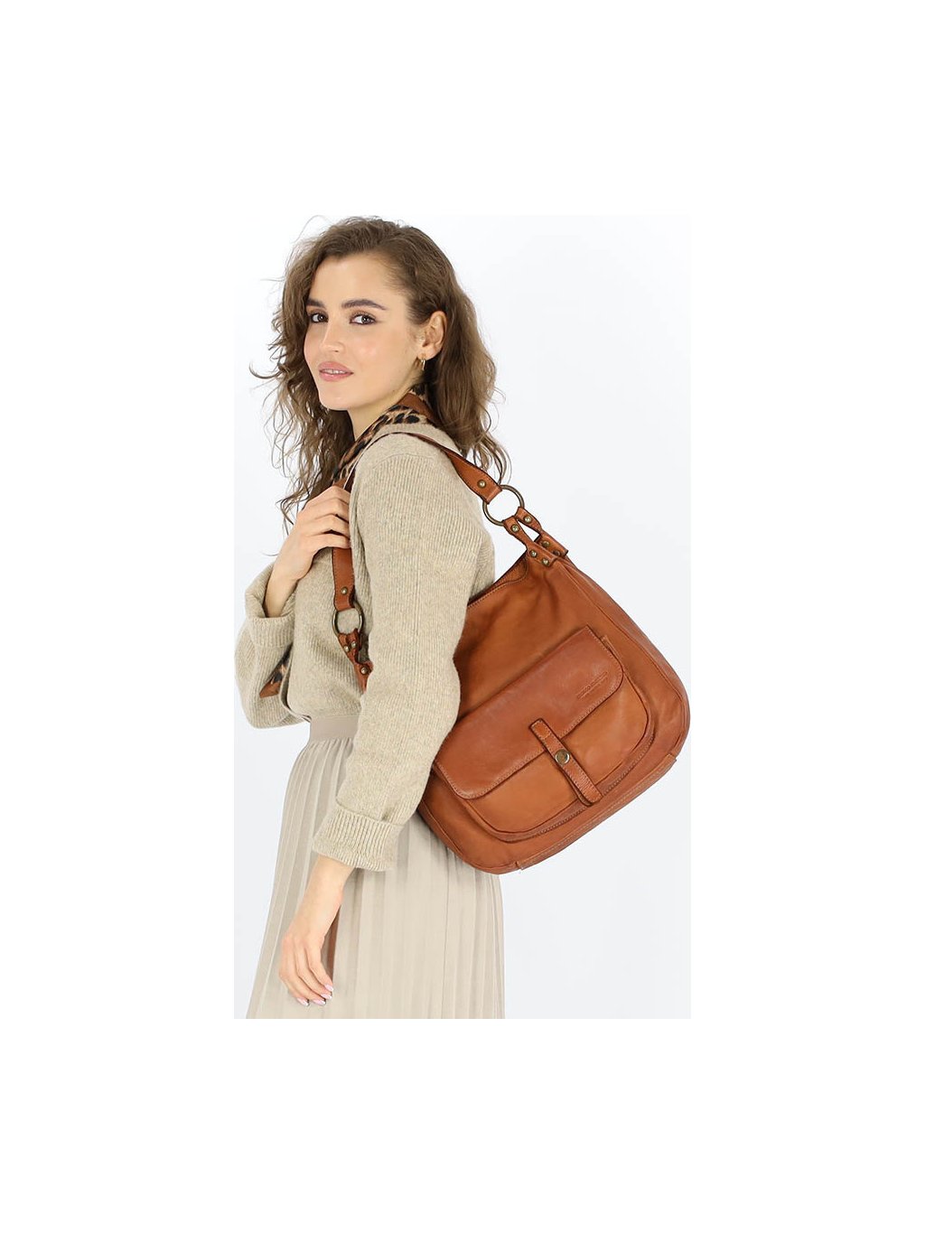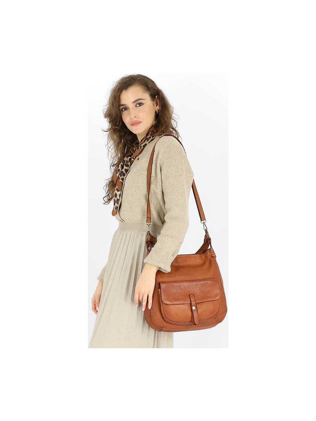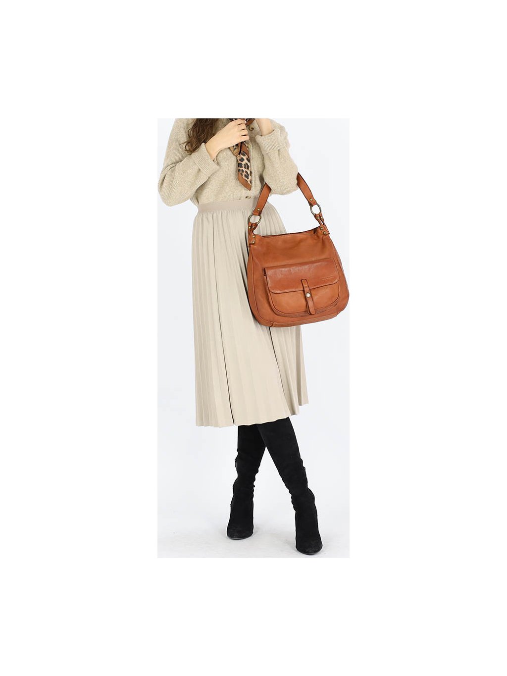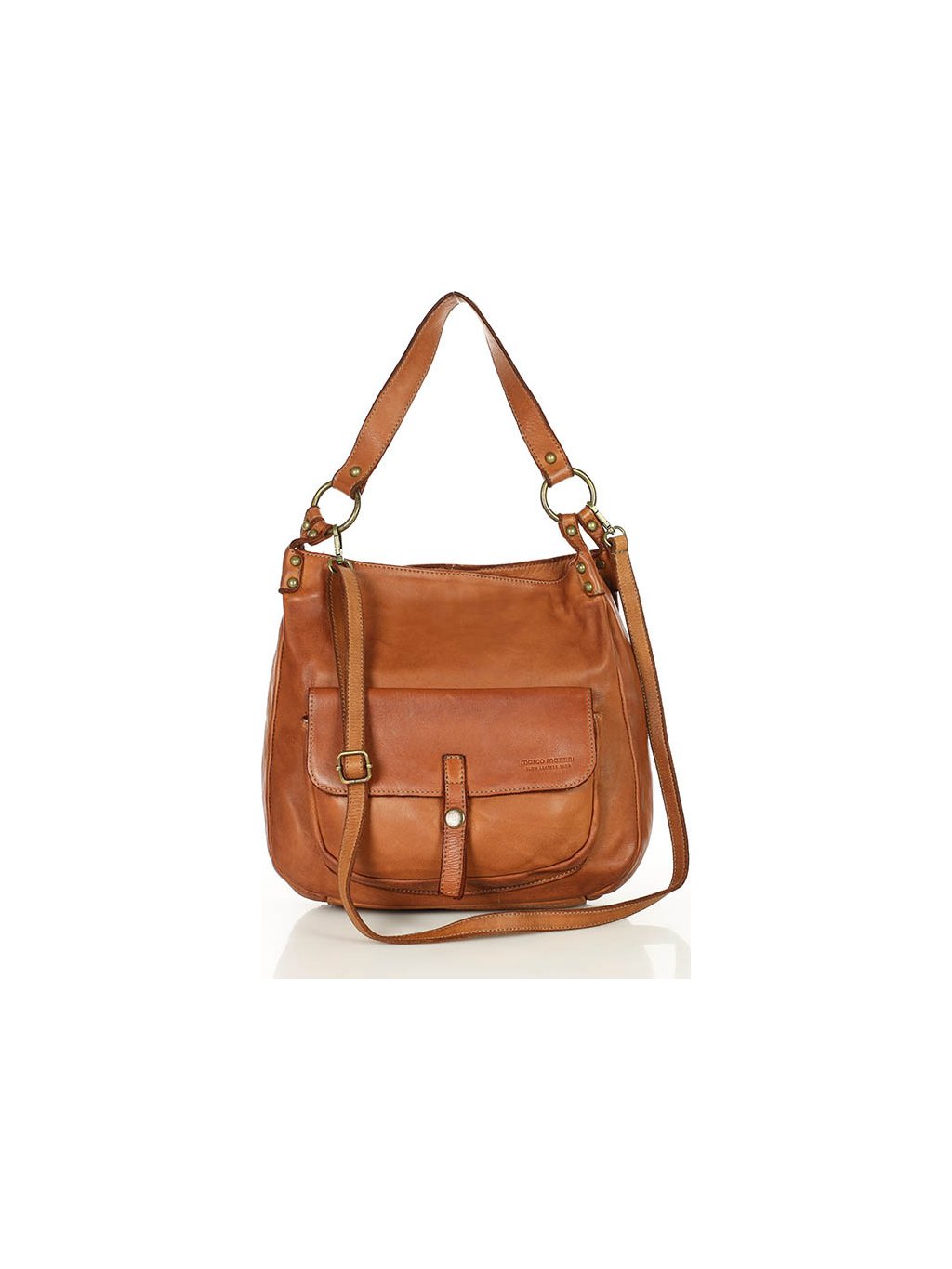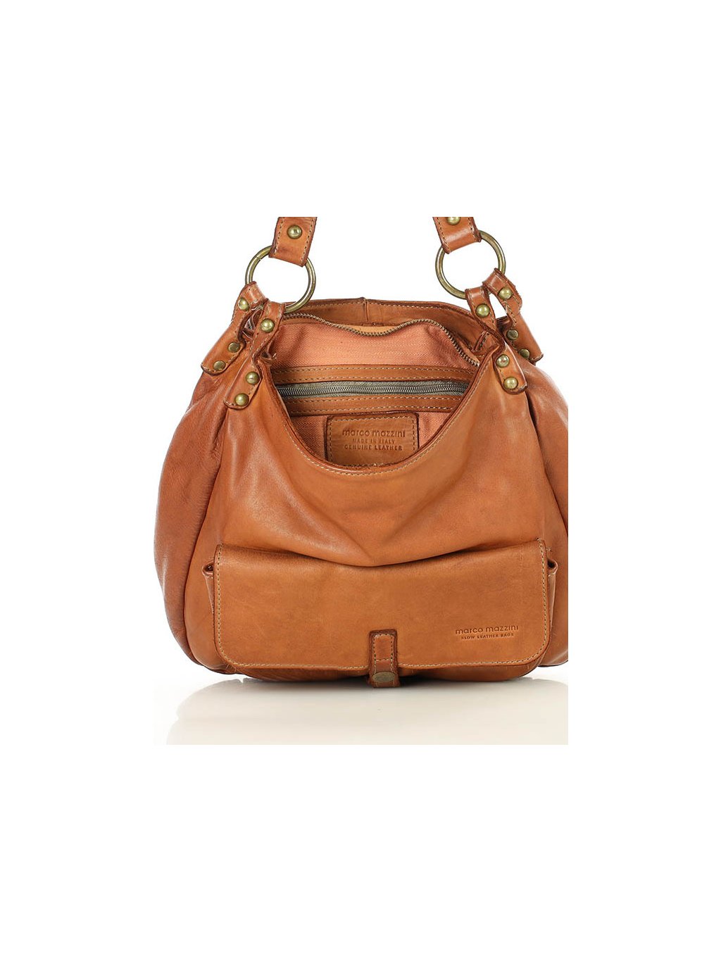 MARCO MAZZINI Camel színű női bőr hobo táska