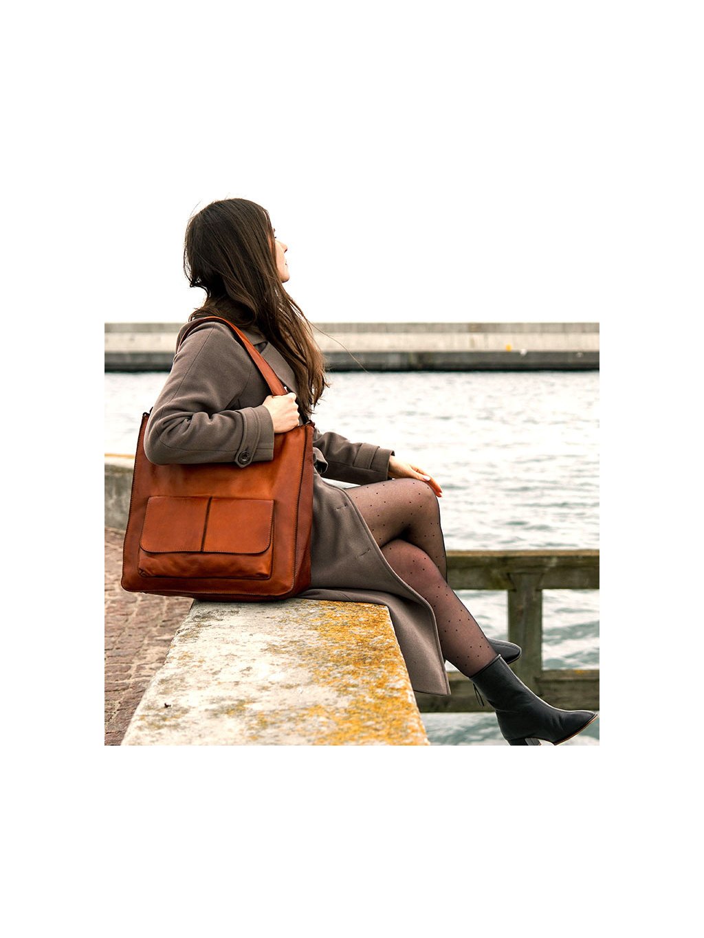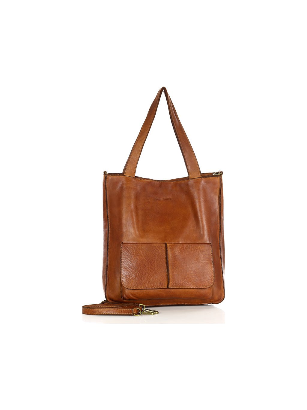 MARCO MAZZINI Camel színű női bőr shopper táska