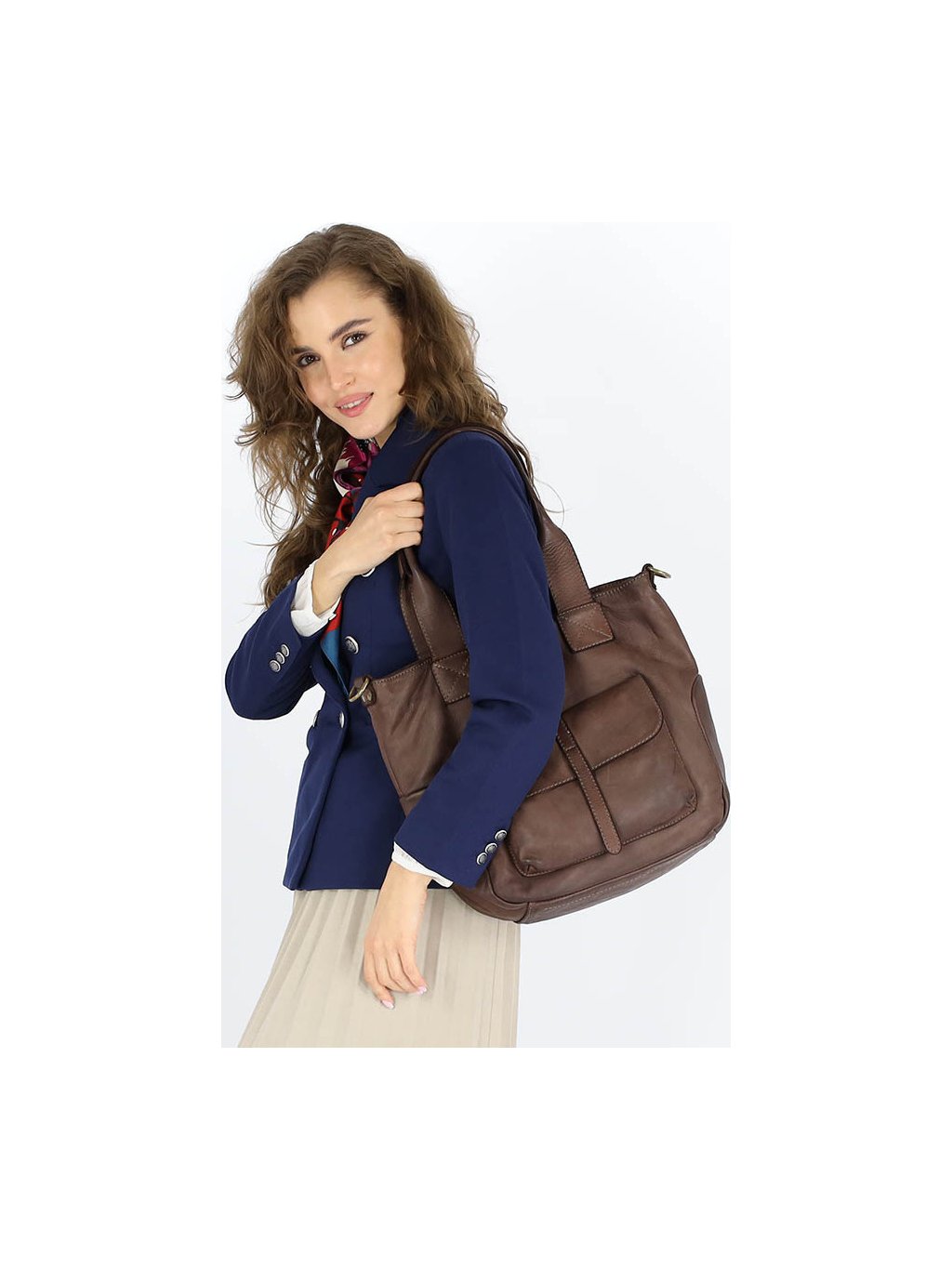 MARCO MAZZINI csokoládébarna női bőr kézitáska