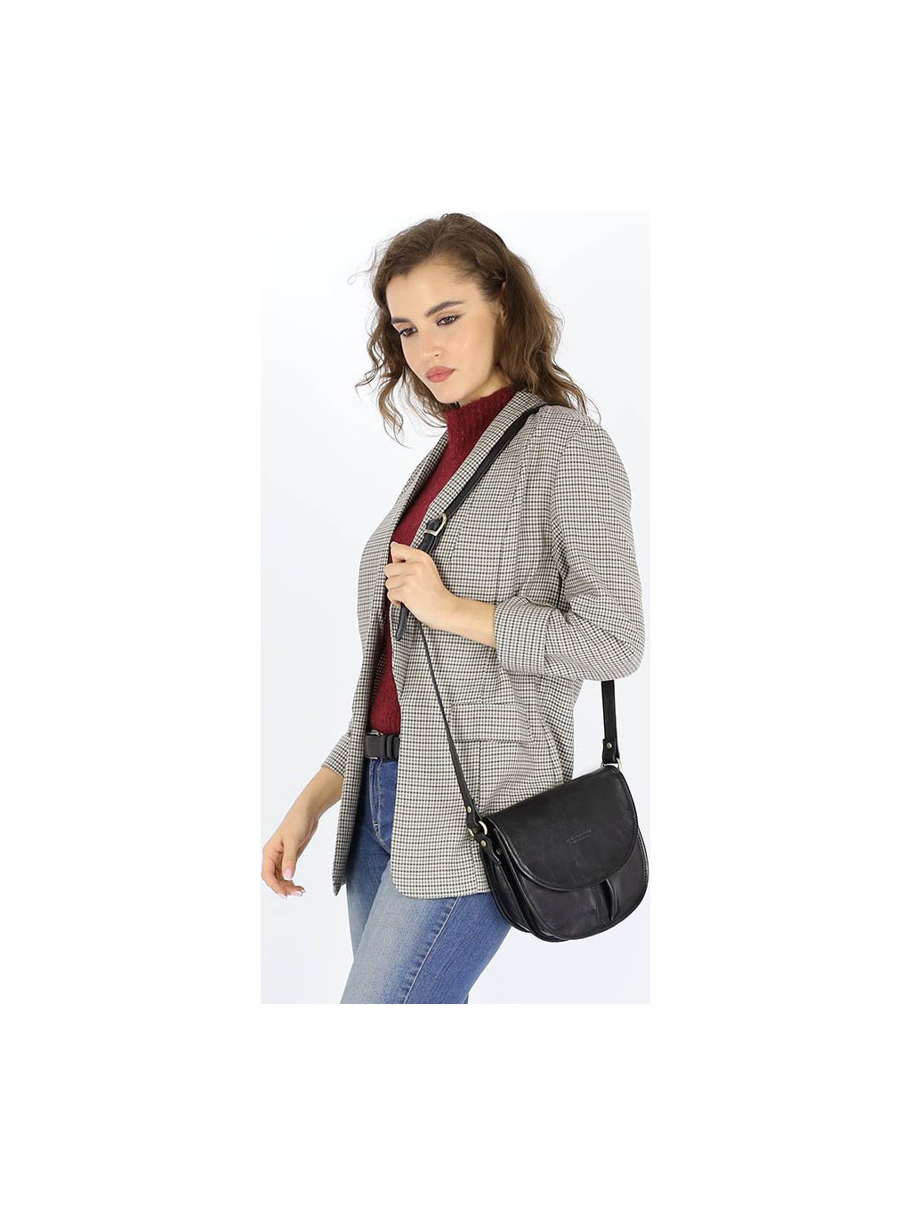 MARCO MAZZINI Fekete bőr crossbody táska fedéllel