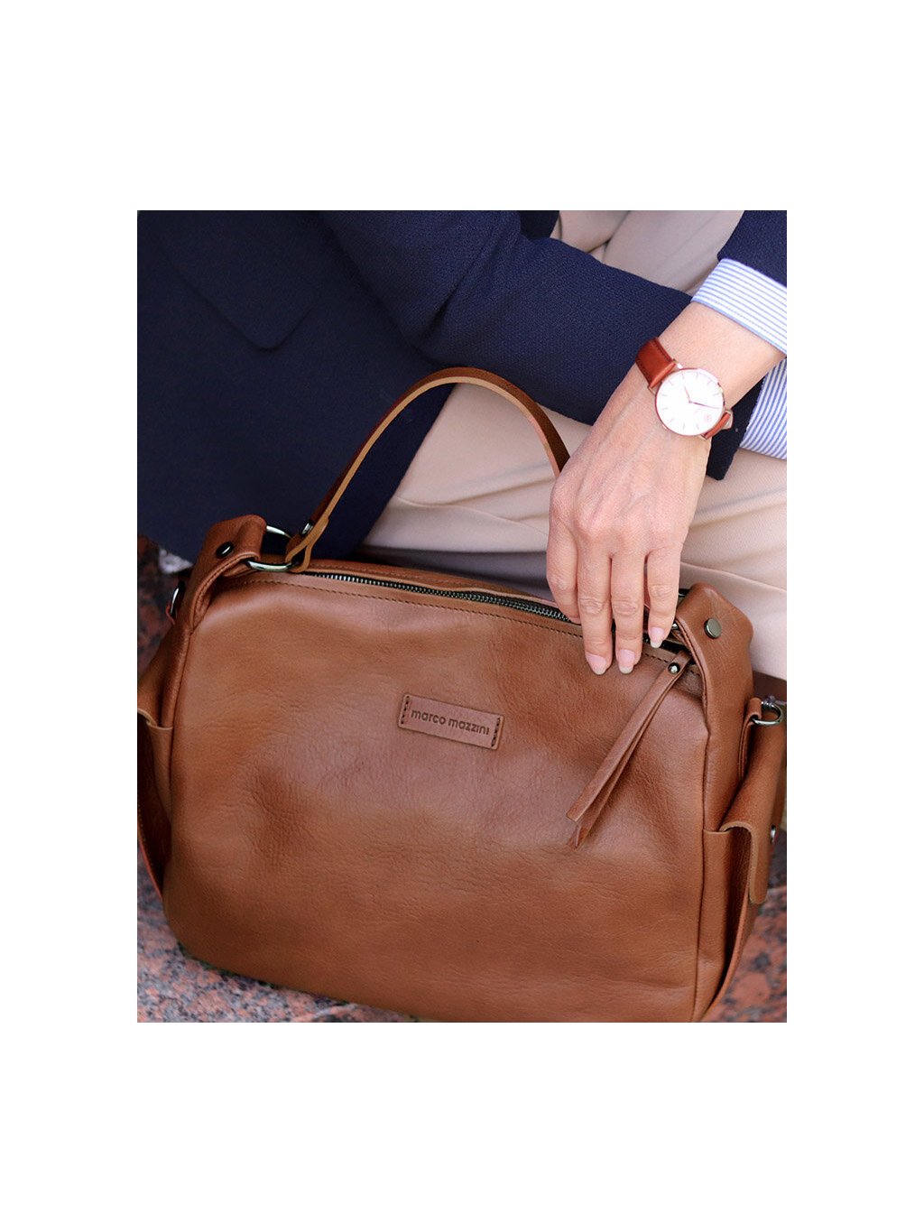 MARCO MAZZINI teve színű közepes bőr kézitáska