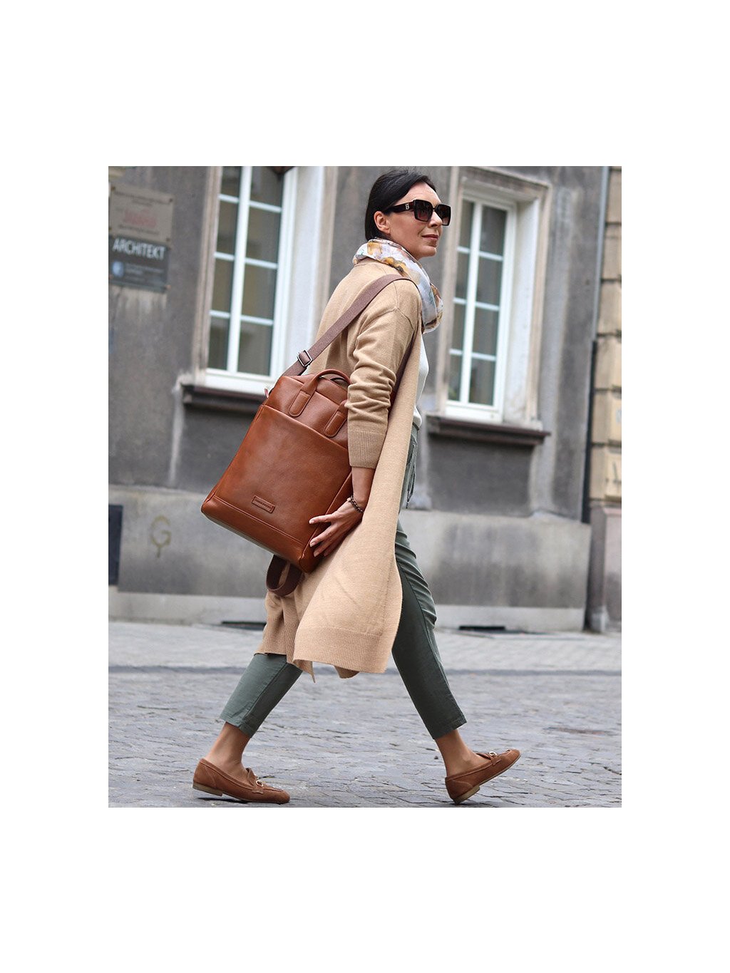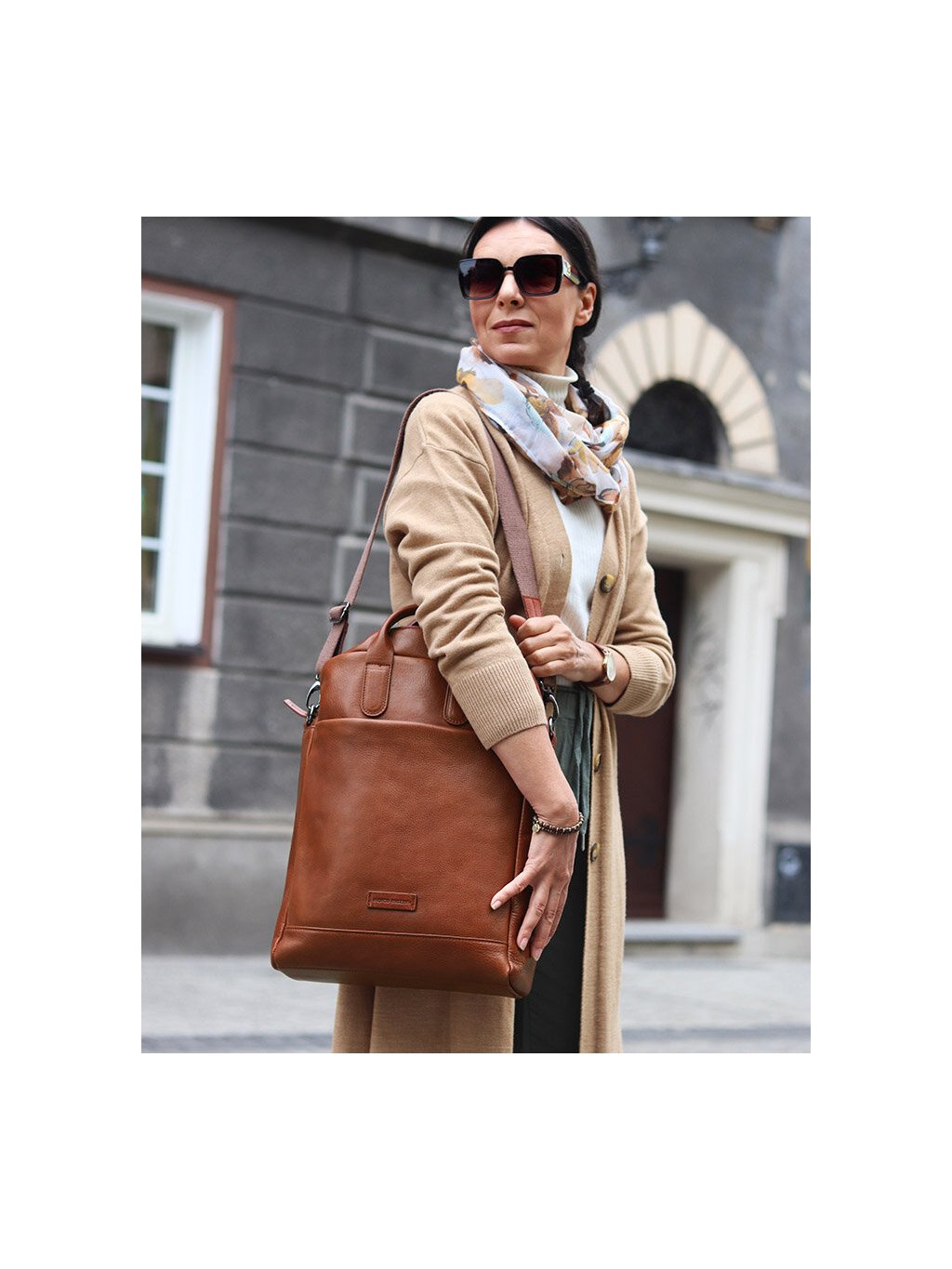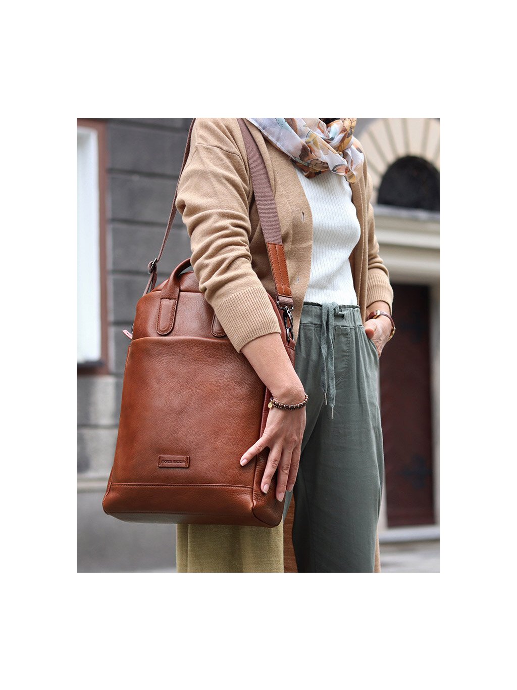 MARCO MAZZINI teveszínű elegáns bőr hátizsák
