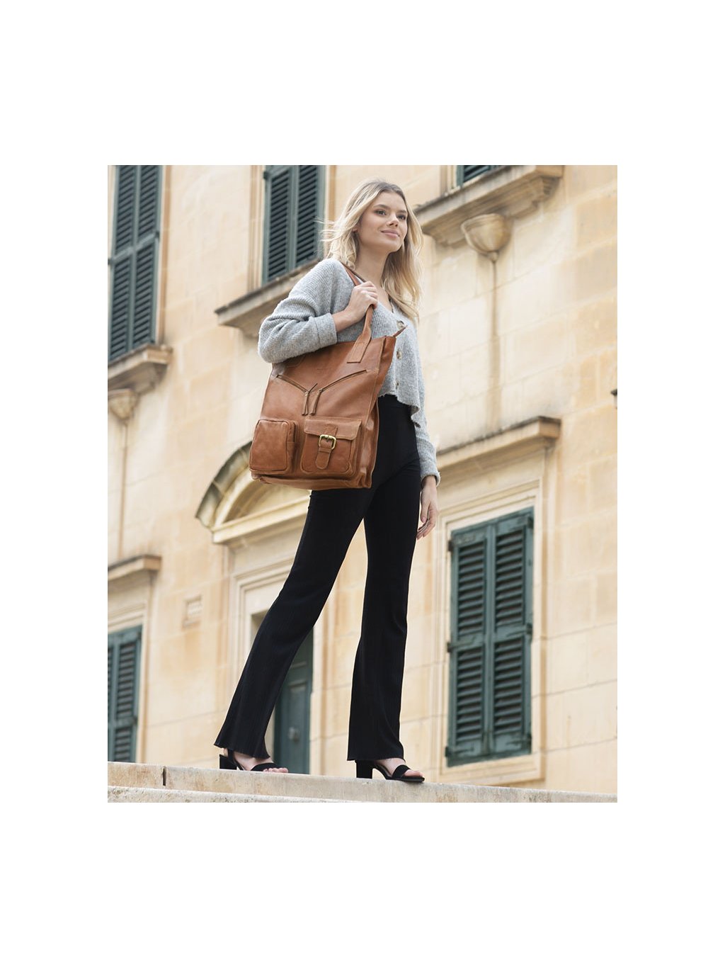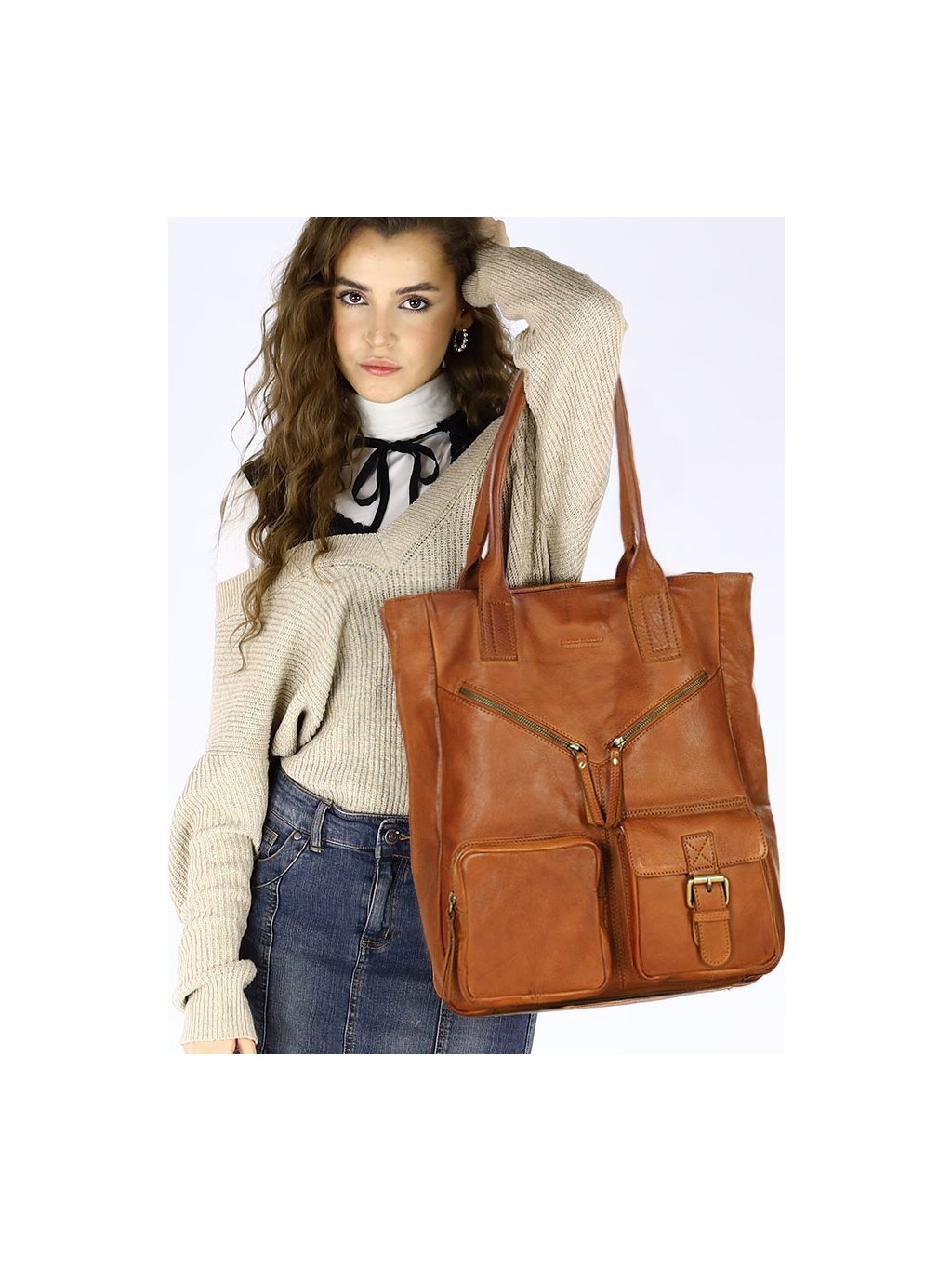 MARCO MAZZINI teveszínű kézitáska zsebekkel