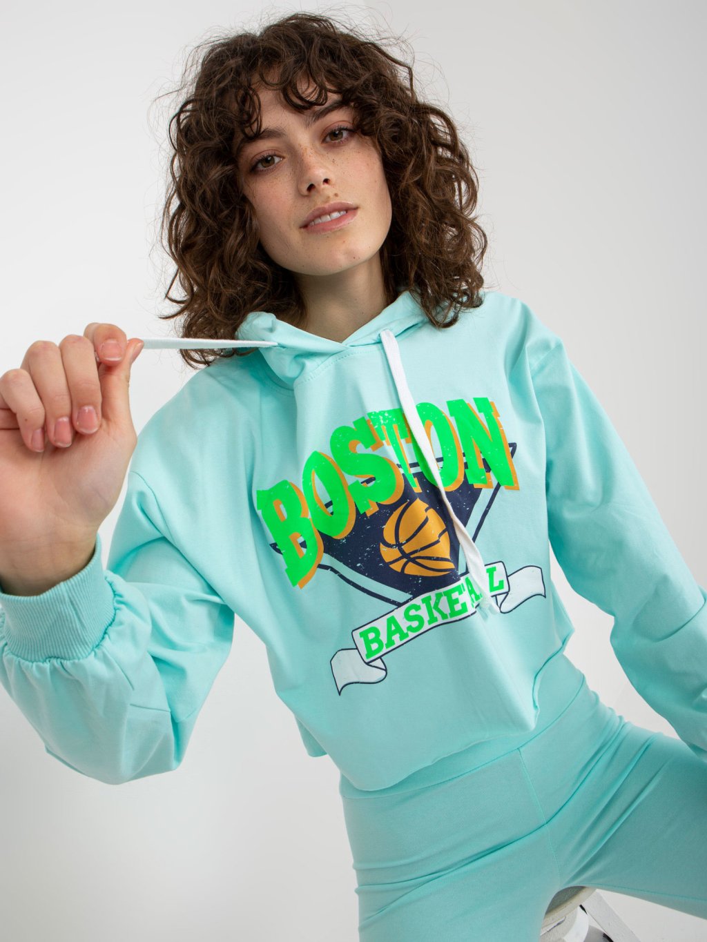 Menta színű női sportos szett, rövidnadrág és pulóver