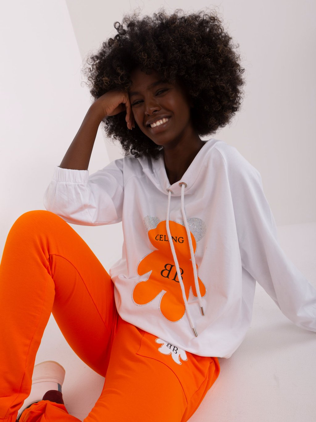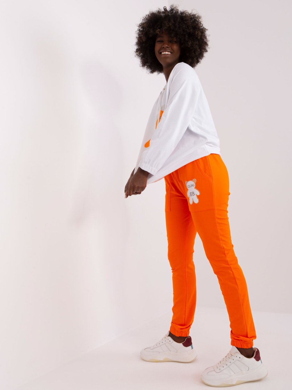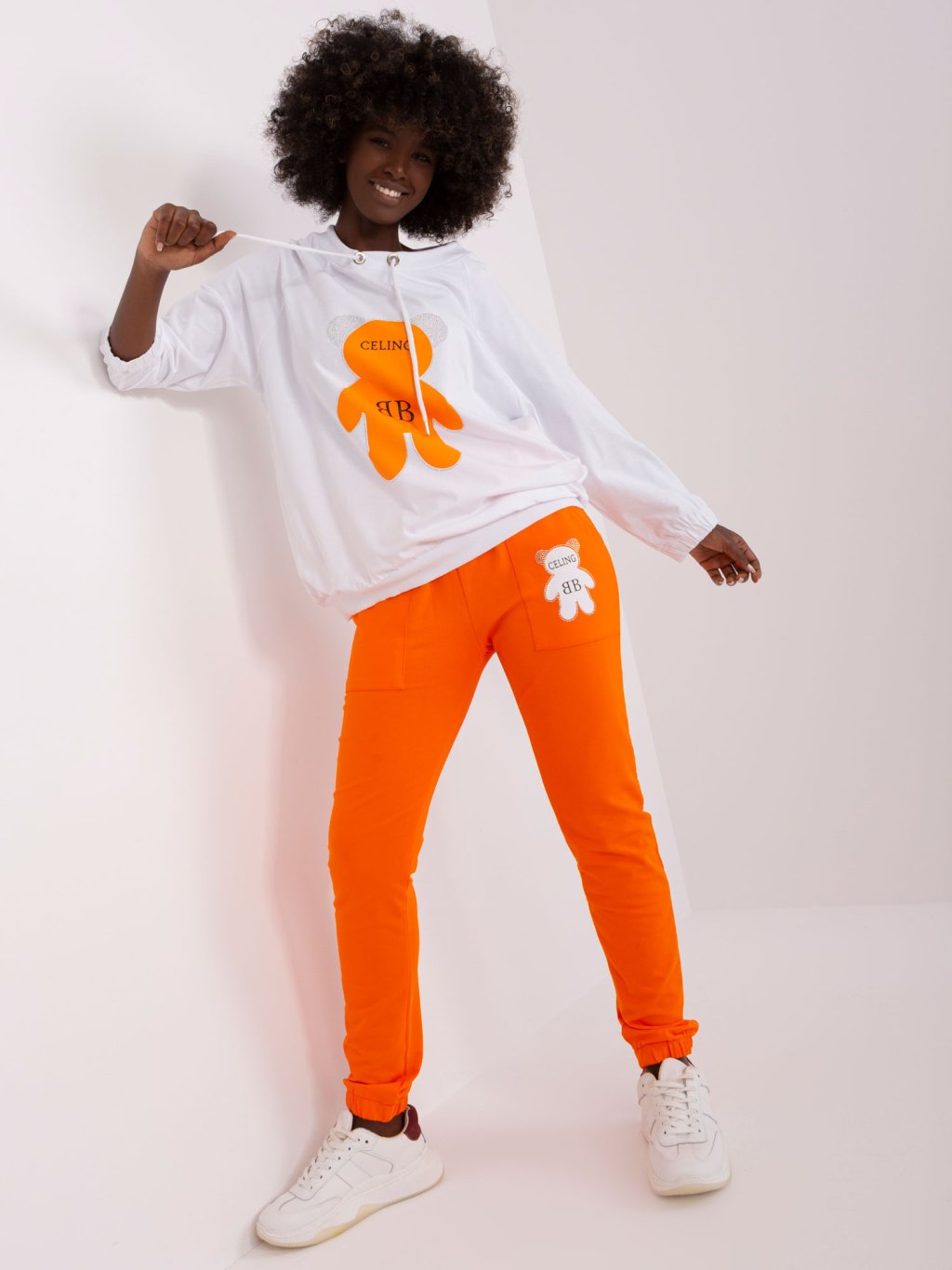 Narancssárga-fehér melegítő szett, nadrág és póló macival