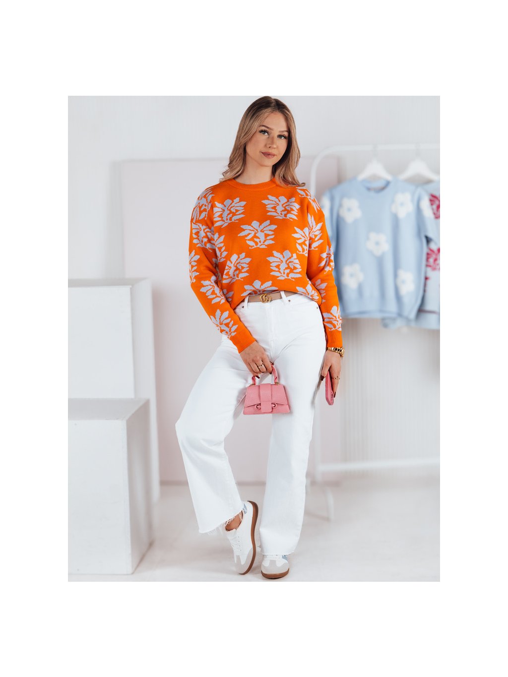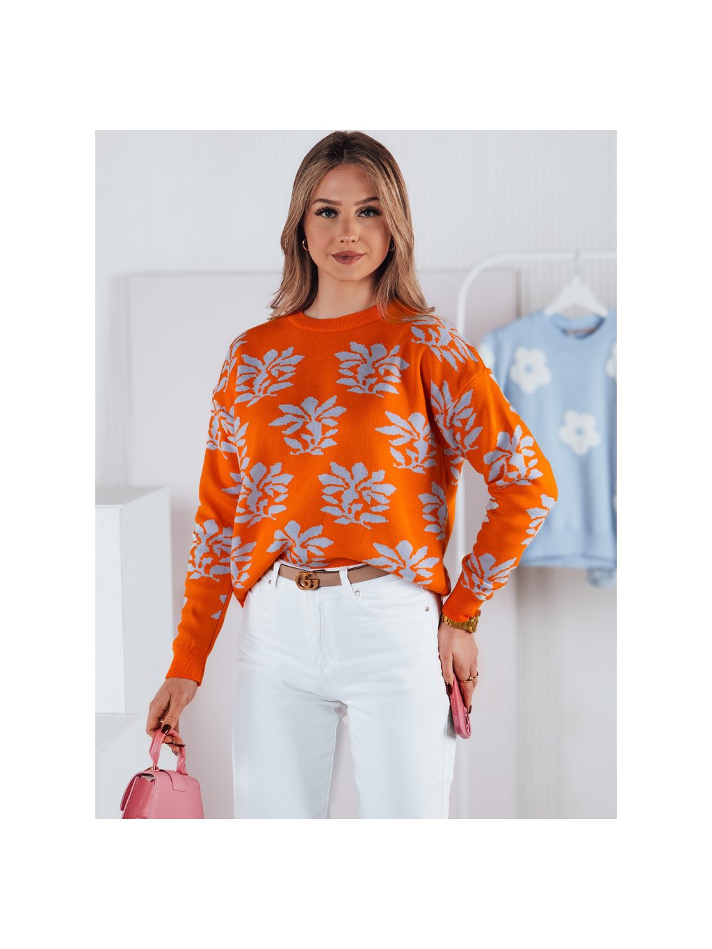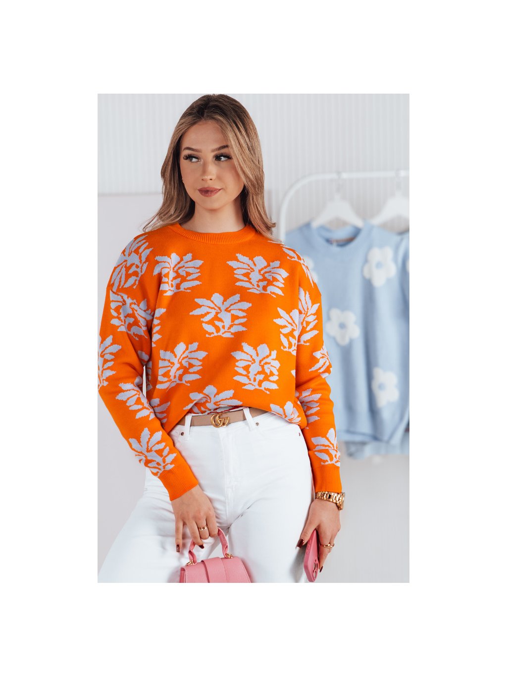 Narancssárga női mintás pulóver SWEET BUNNY