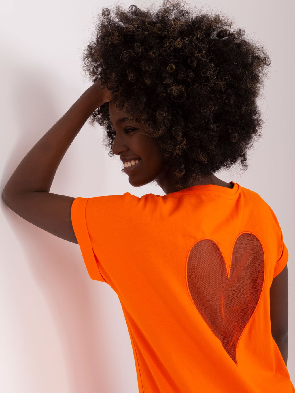 Narancssárga póló szívvel a hátán