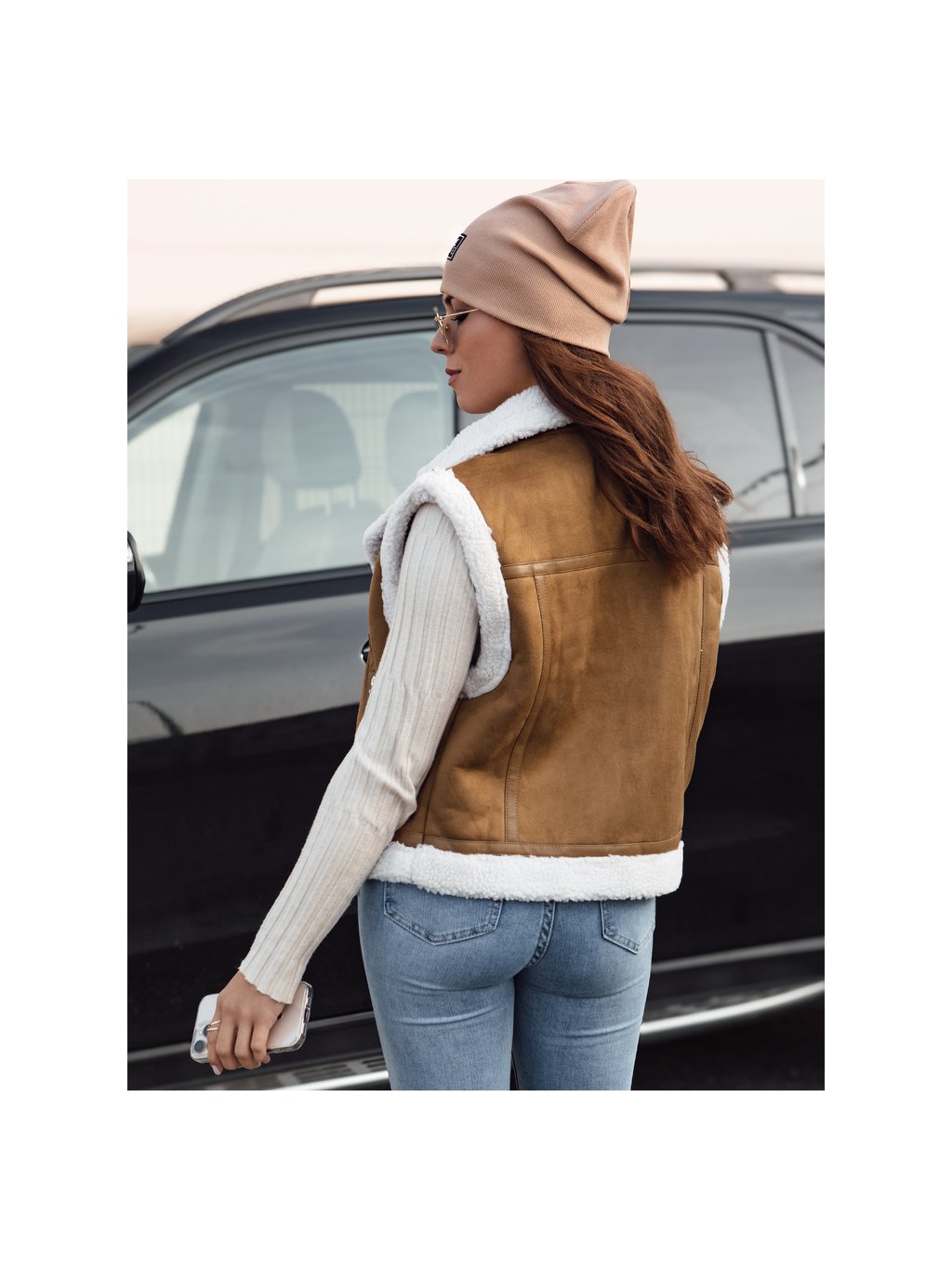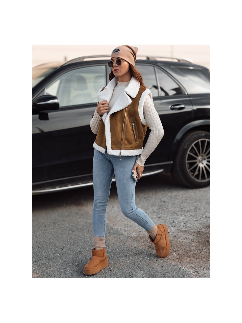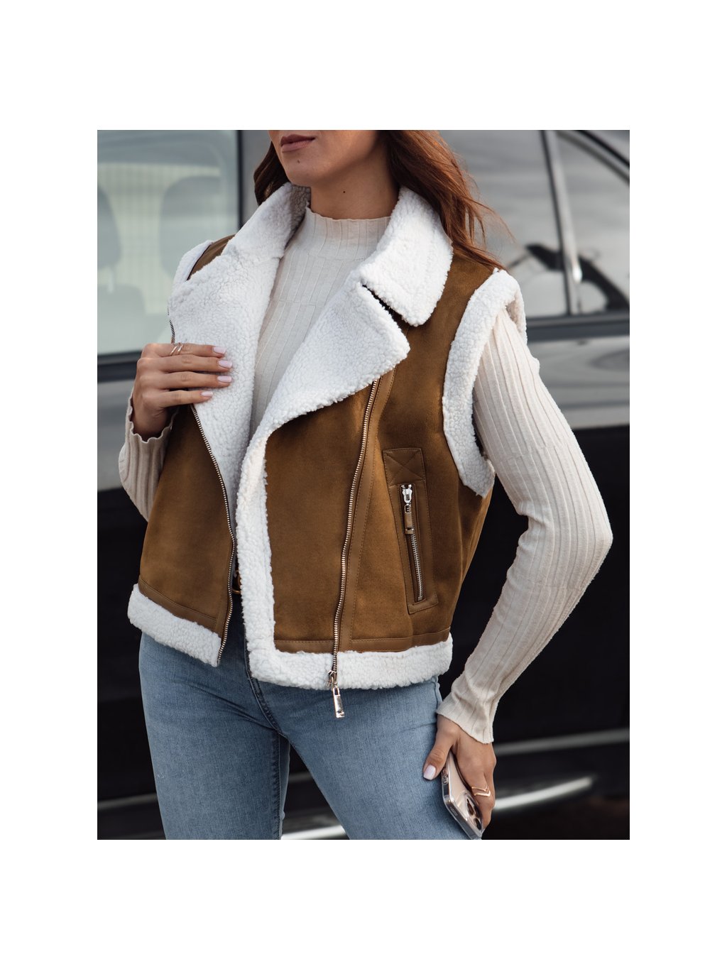 Női barna velúr mellény báránybőrrel WOOLZIP