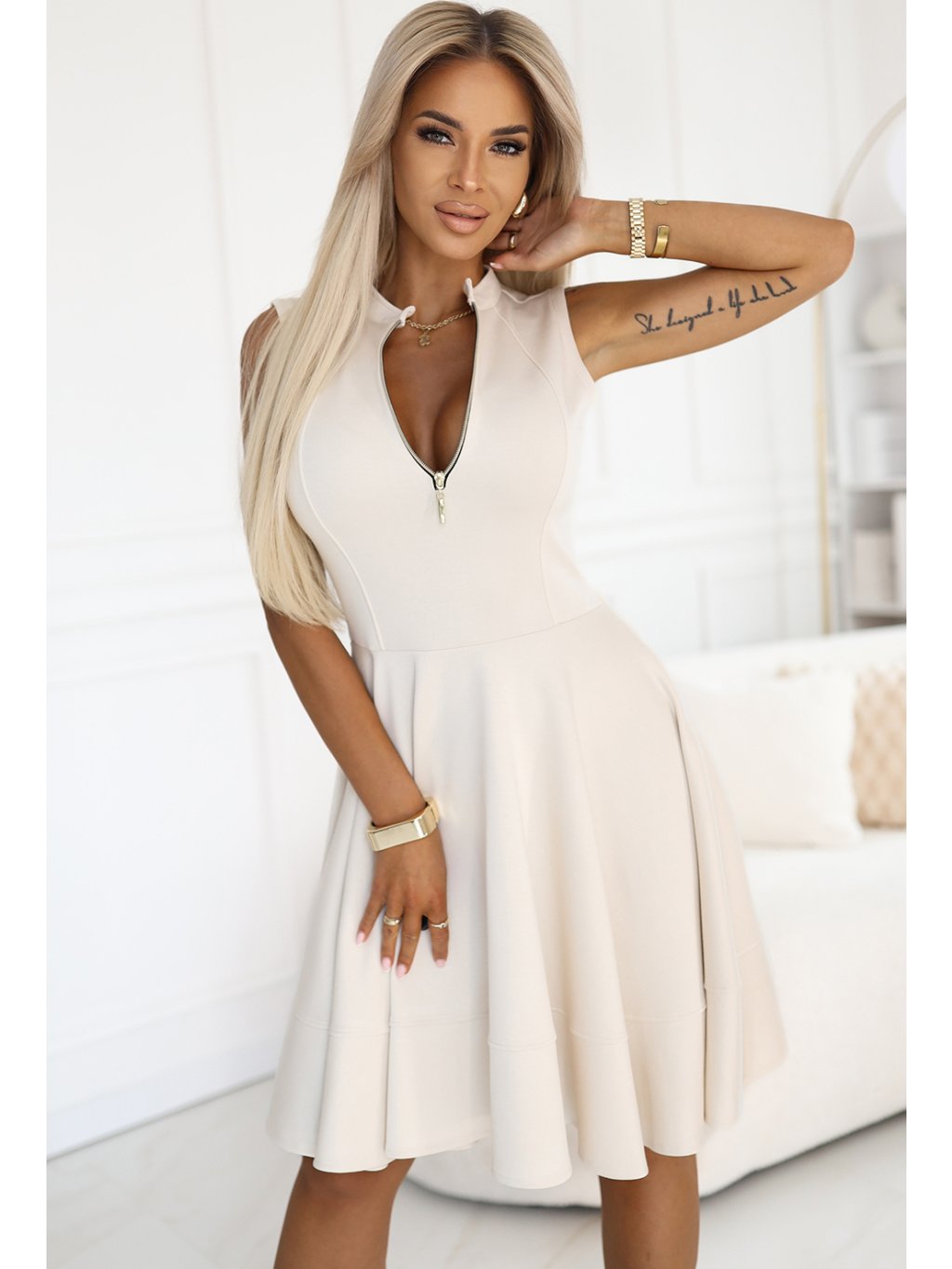 Női bézs ruha elöl cipzárral
