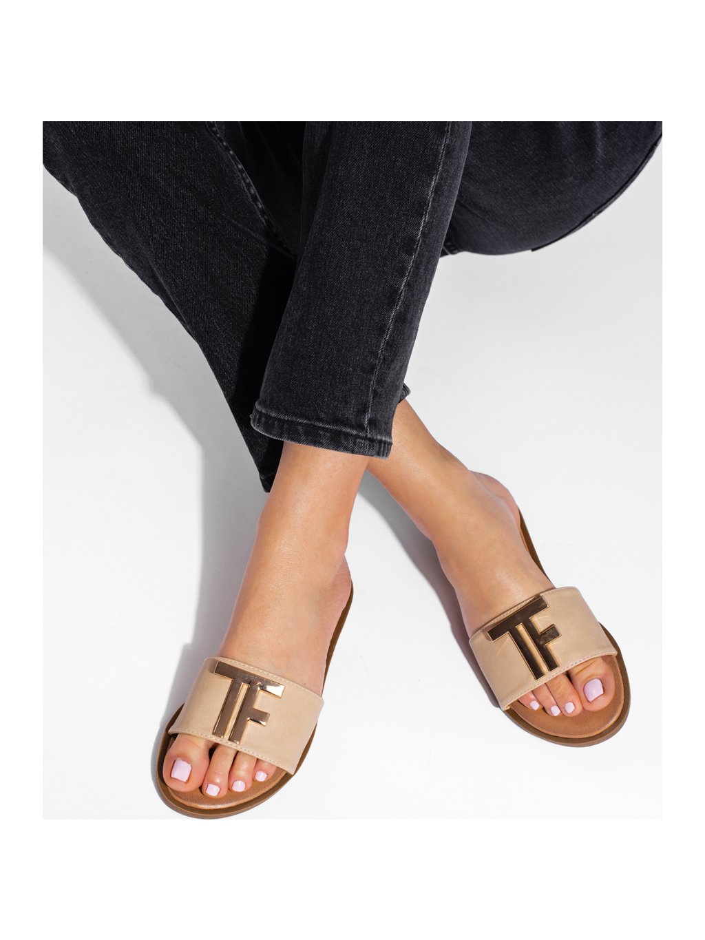 Női bézs színű papucs arany csattal Potocki