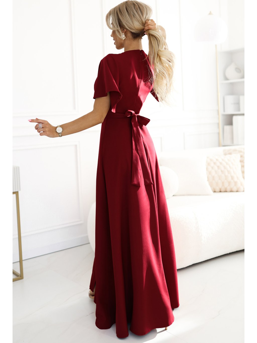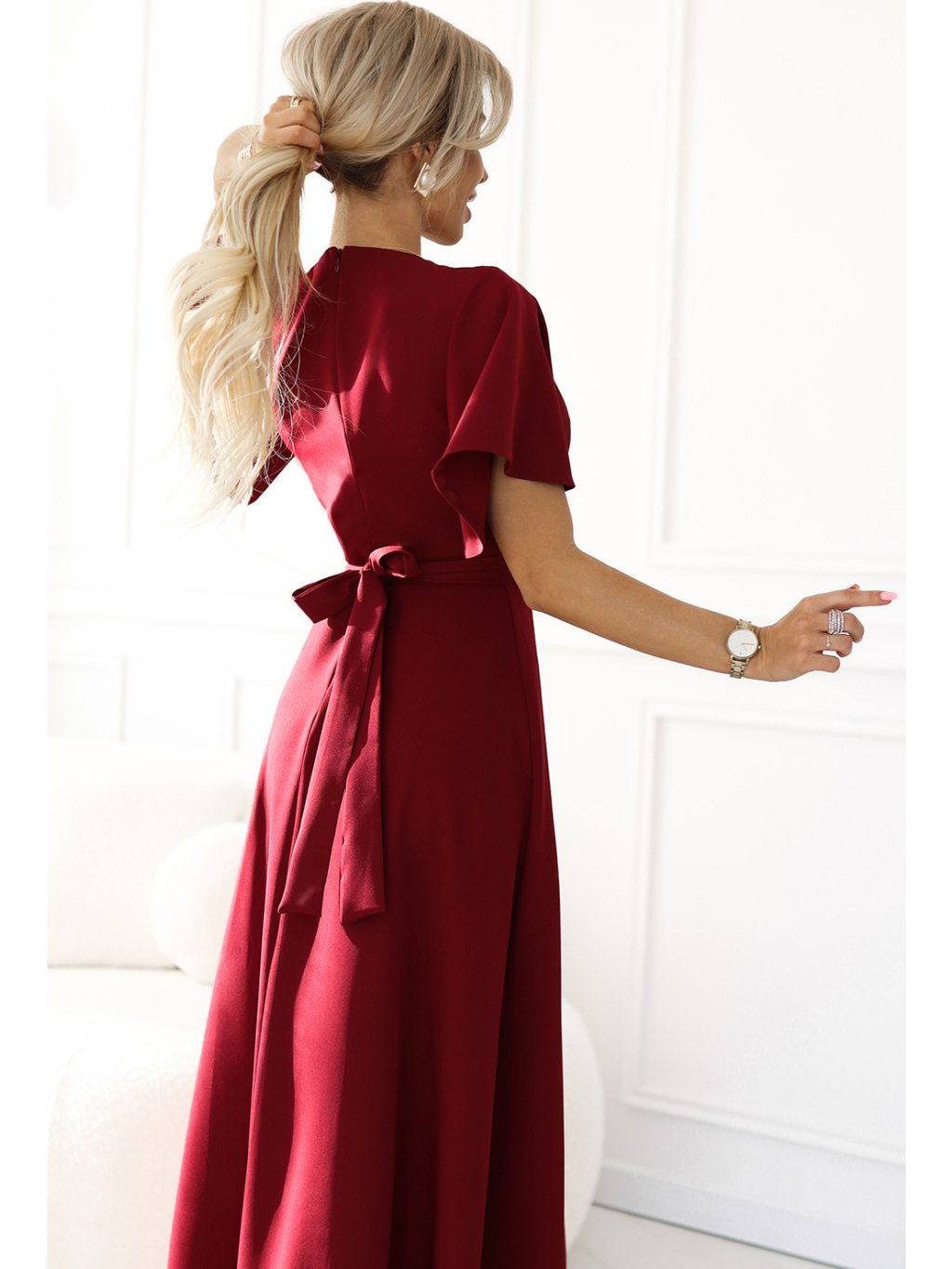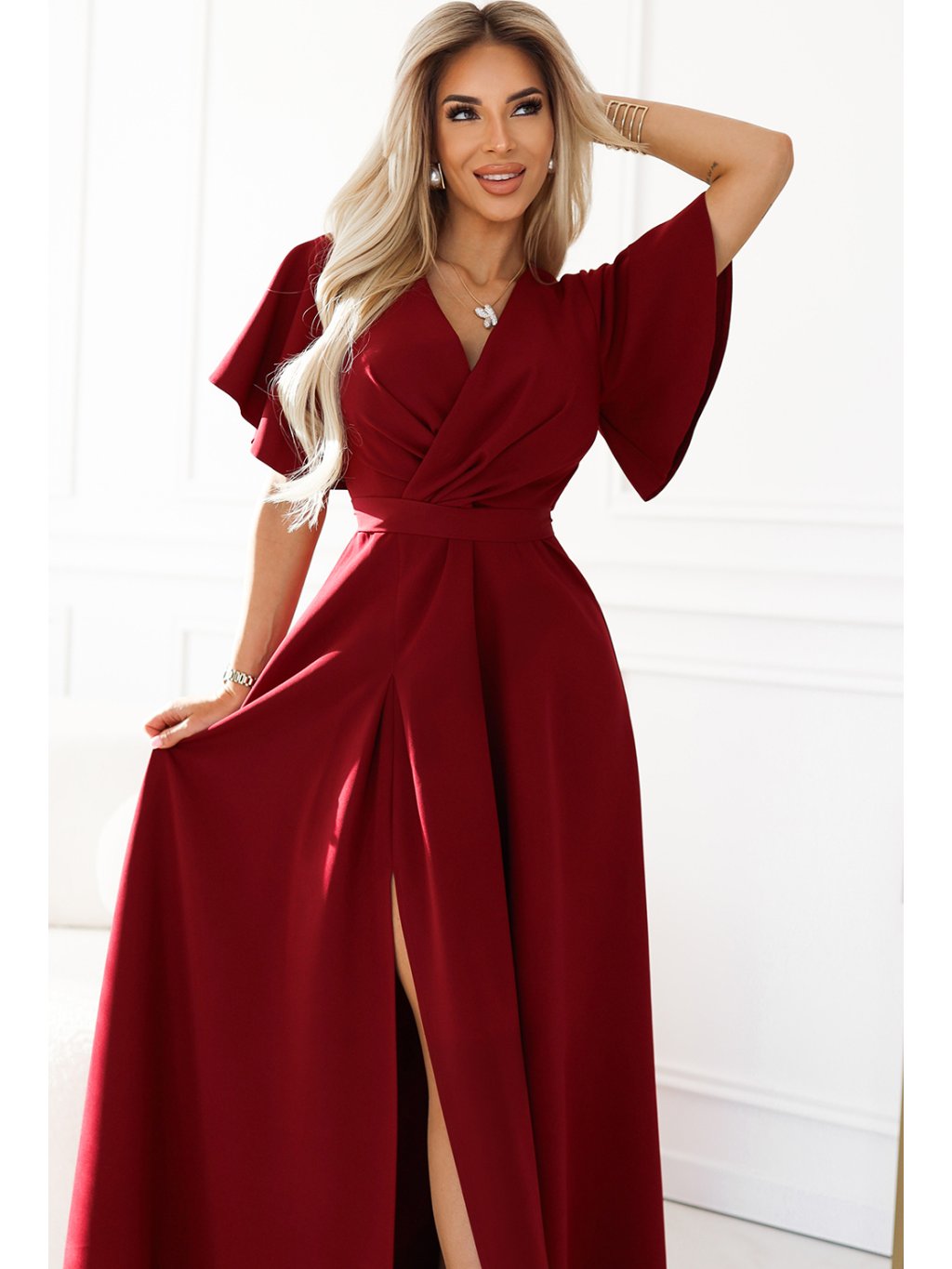 Női bordó hosszú ruha hasítékkal és nyakkivágással
