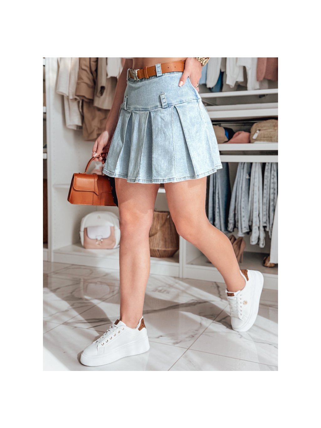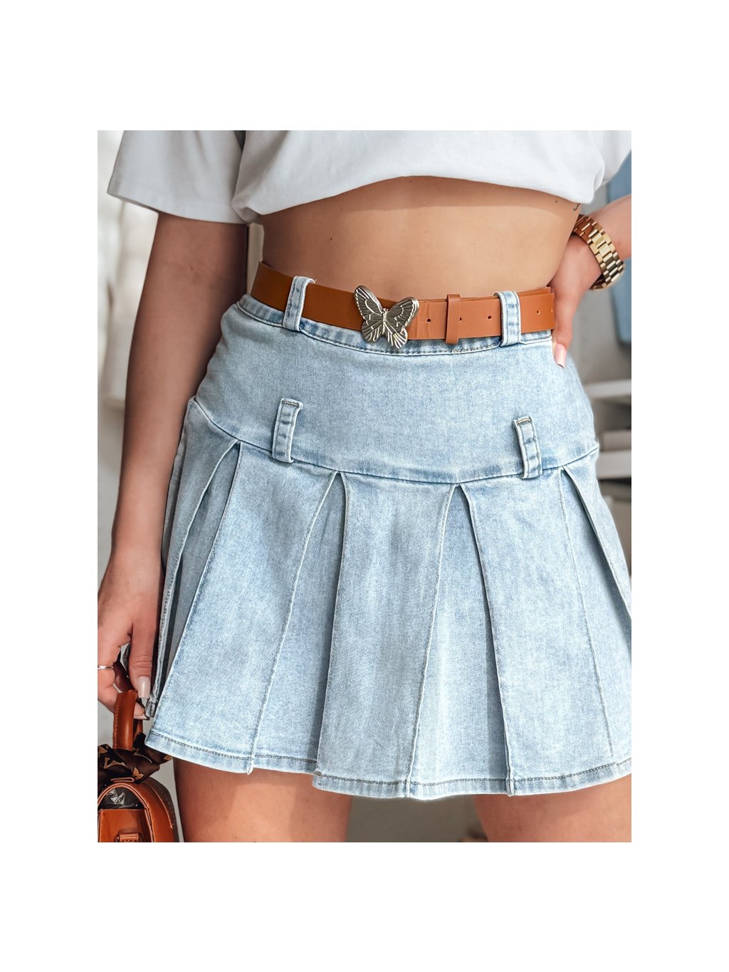 Női farmer miniszoknya fodrokkal BLUETTA