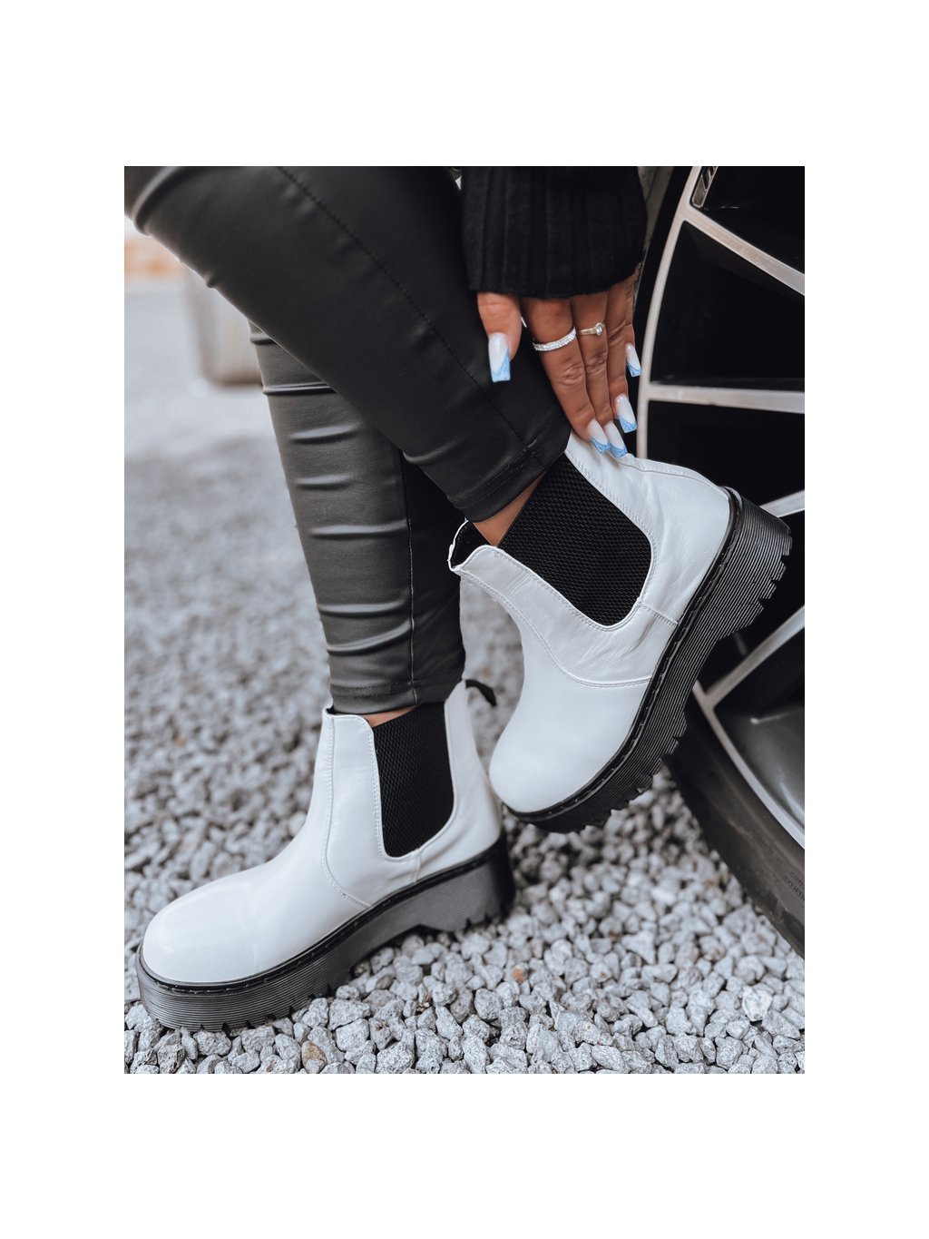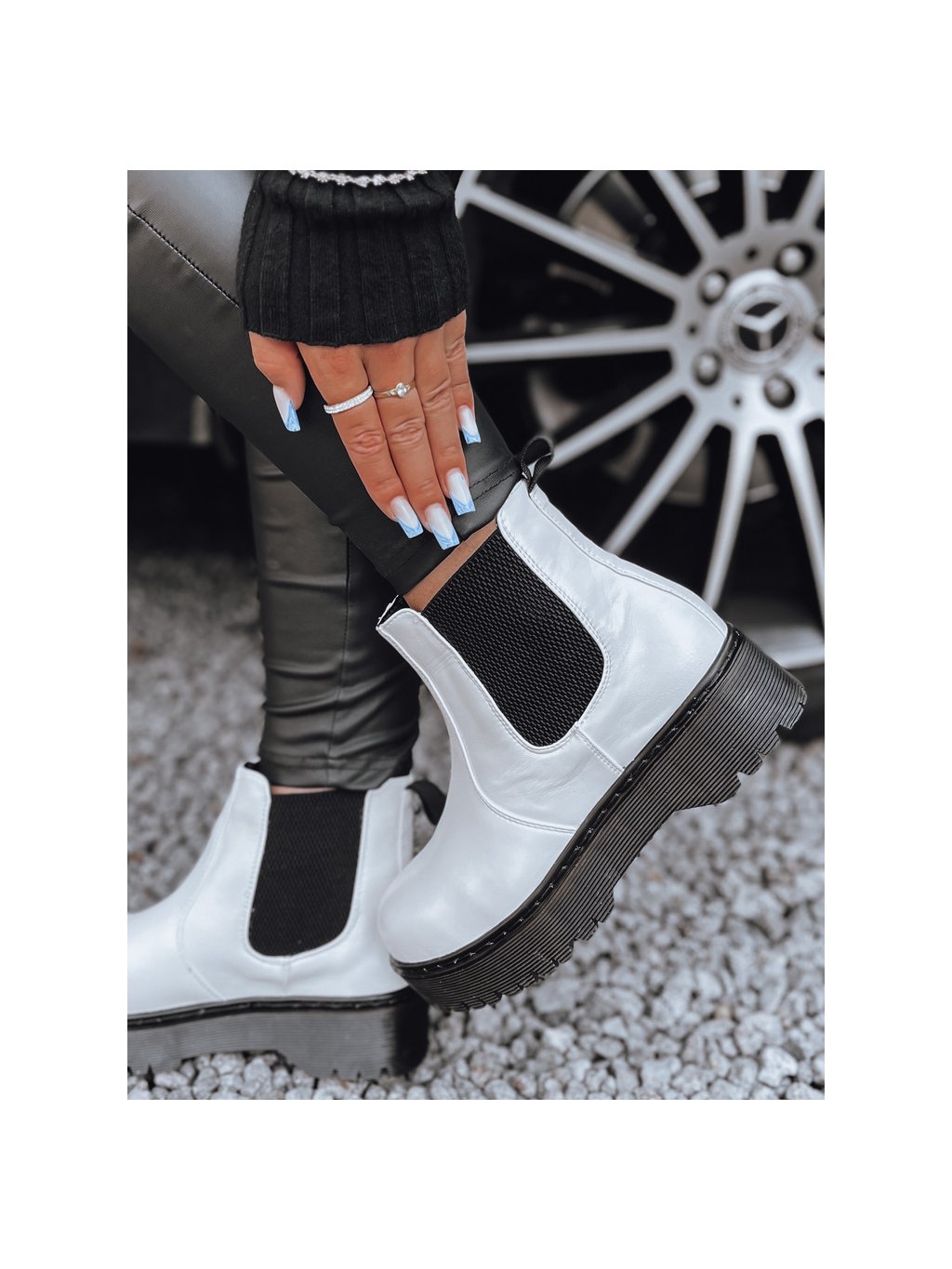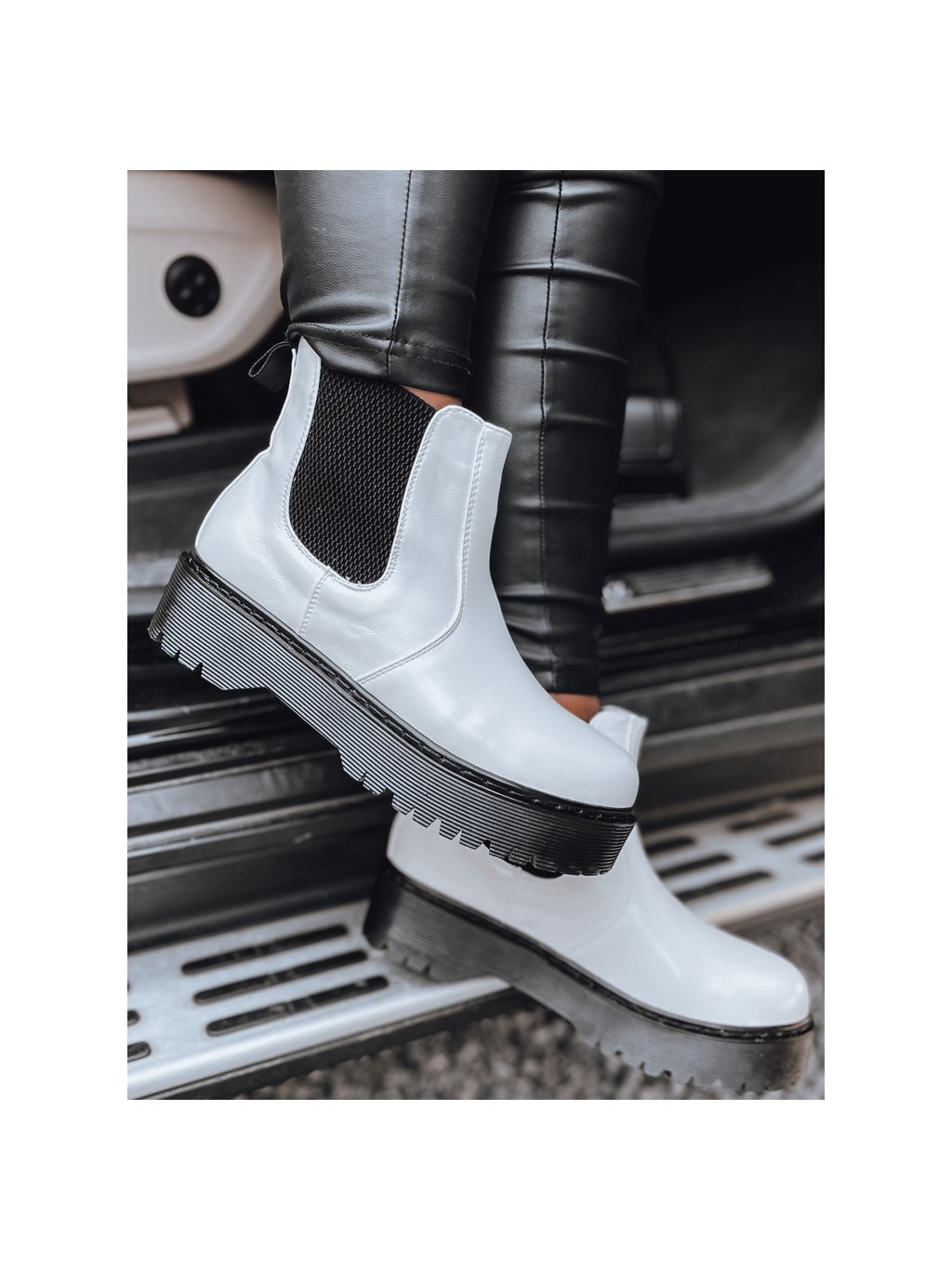 Női fehér STEPBACK bokacsizma magas talppal