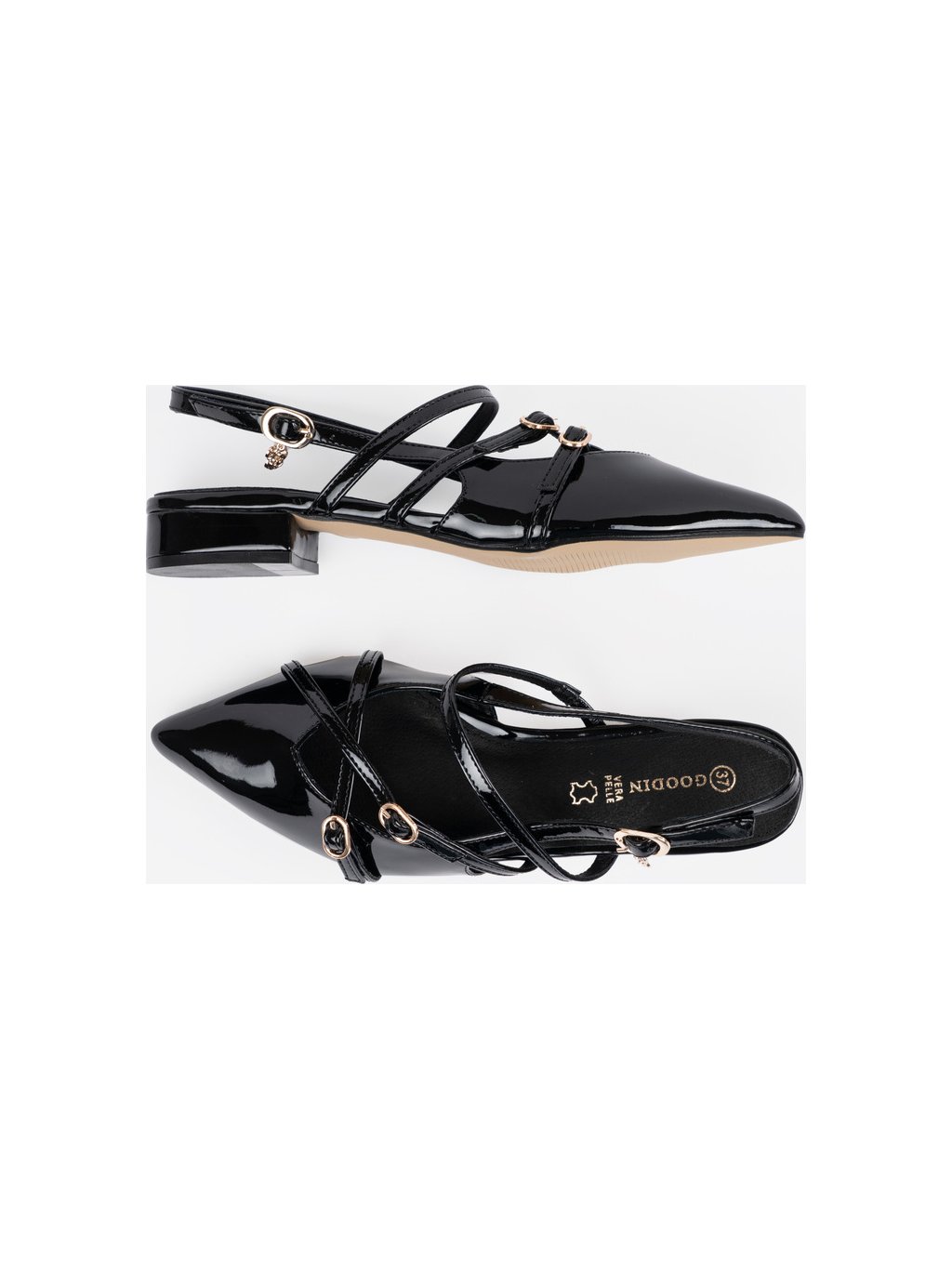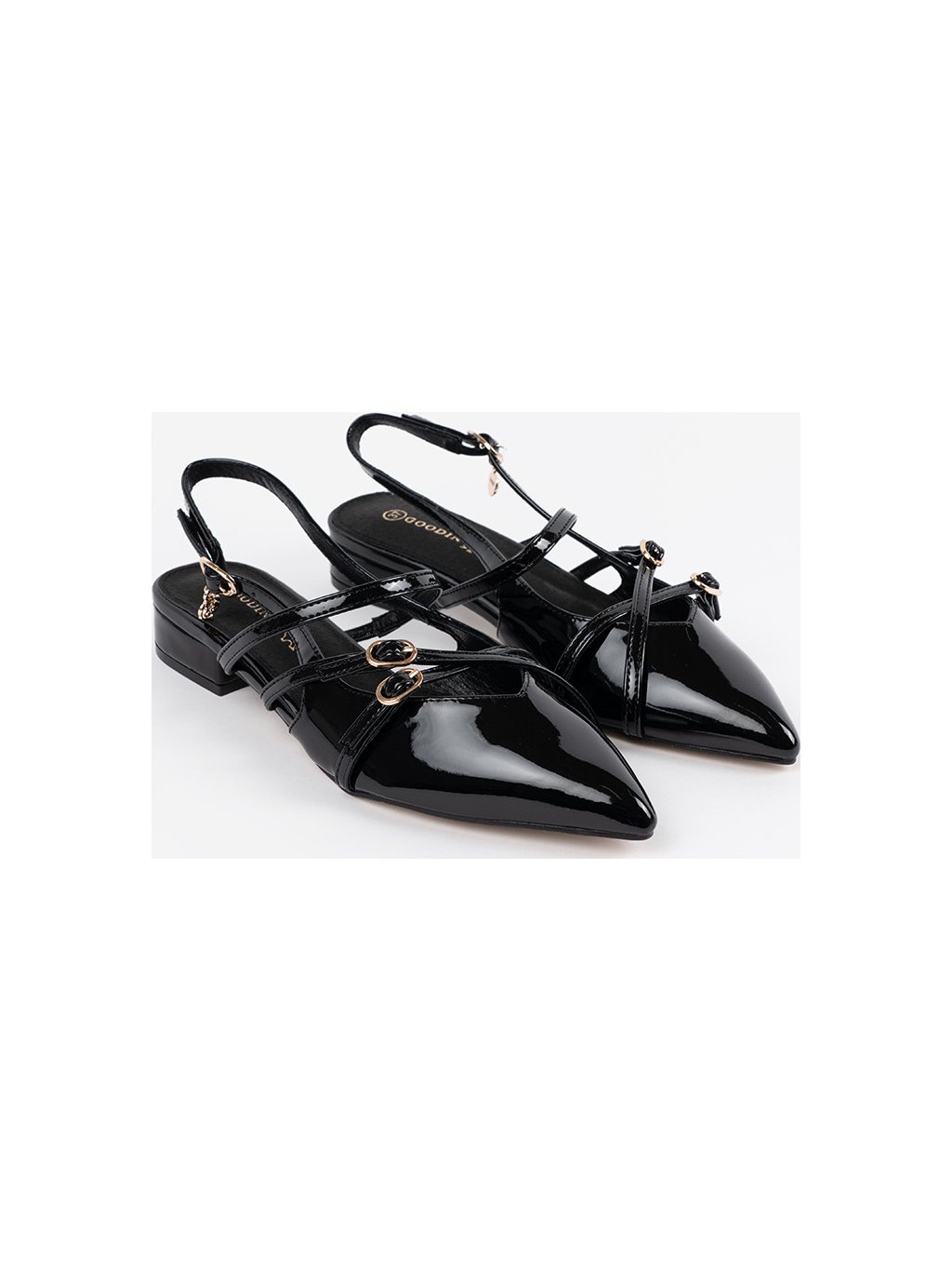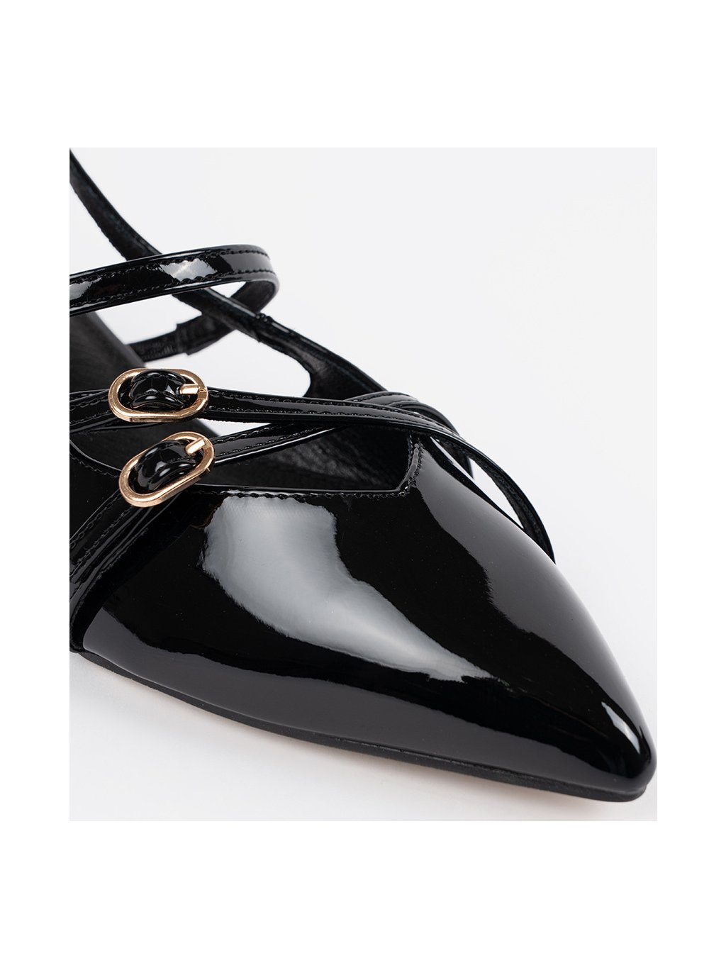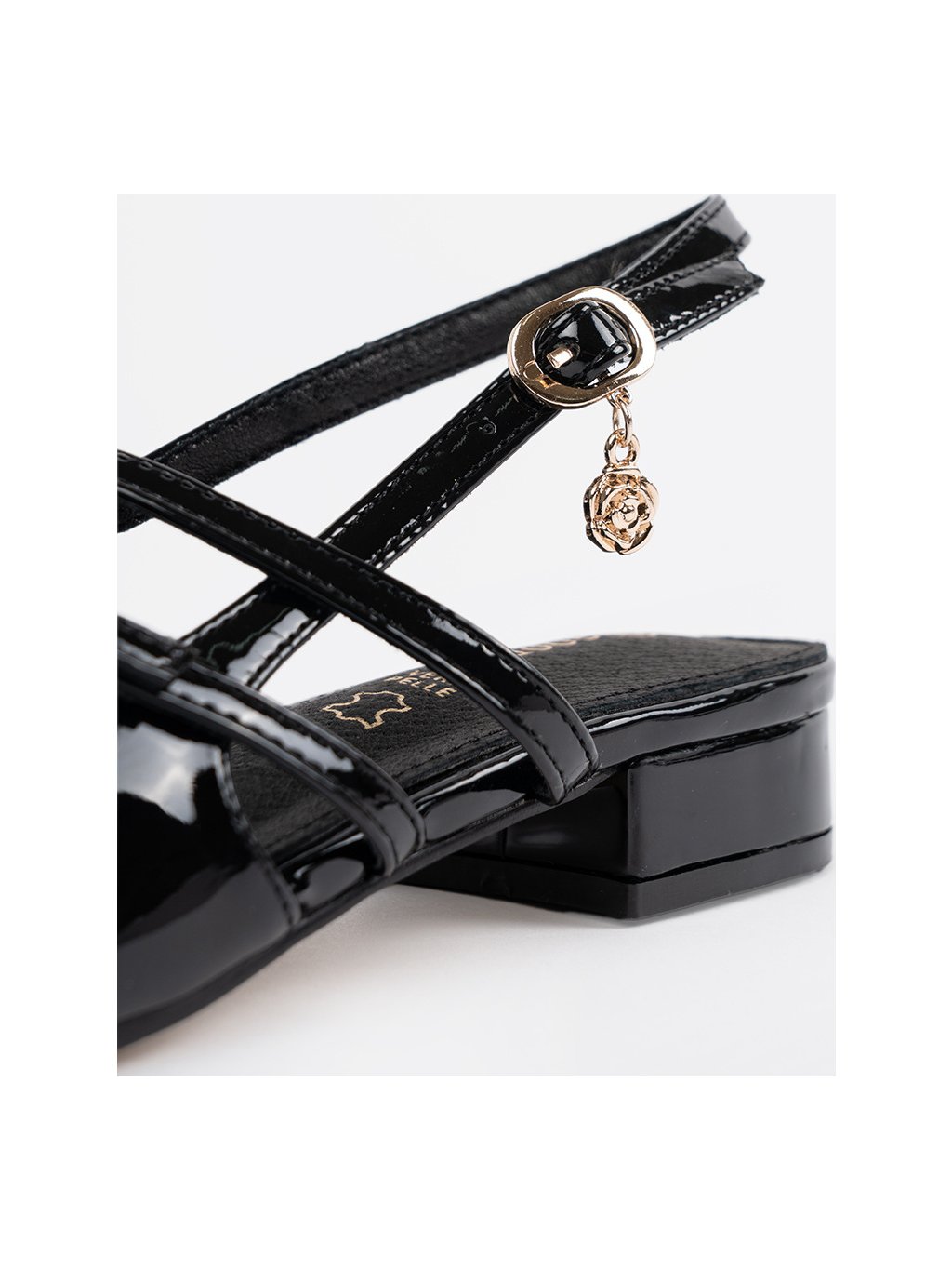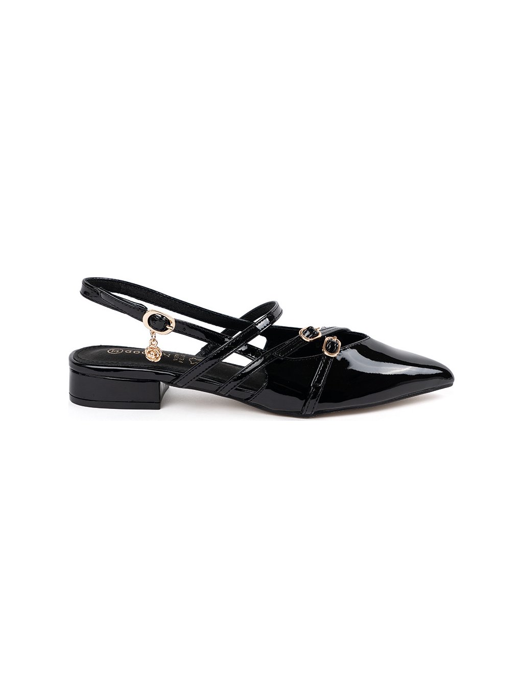 Női fekete lakkozott cipő nyitott sarokkal, sarok 3 cm