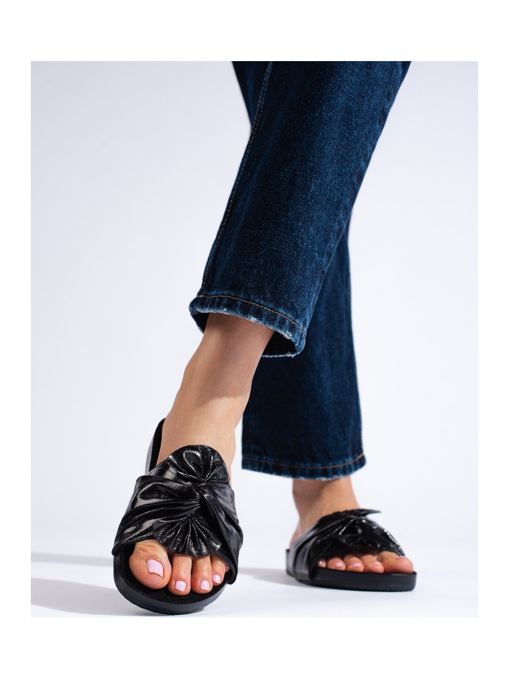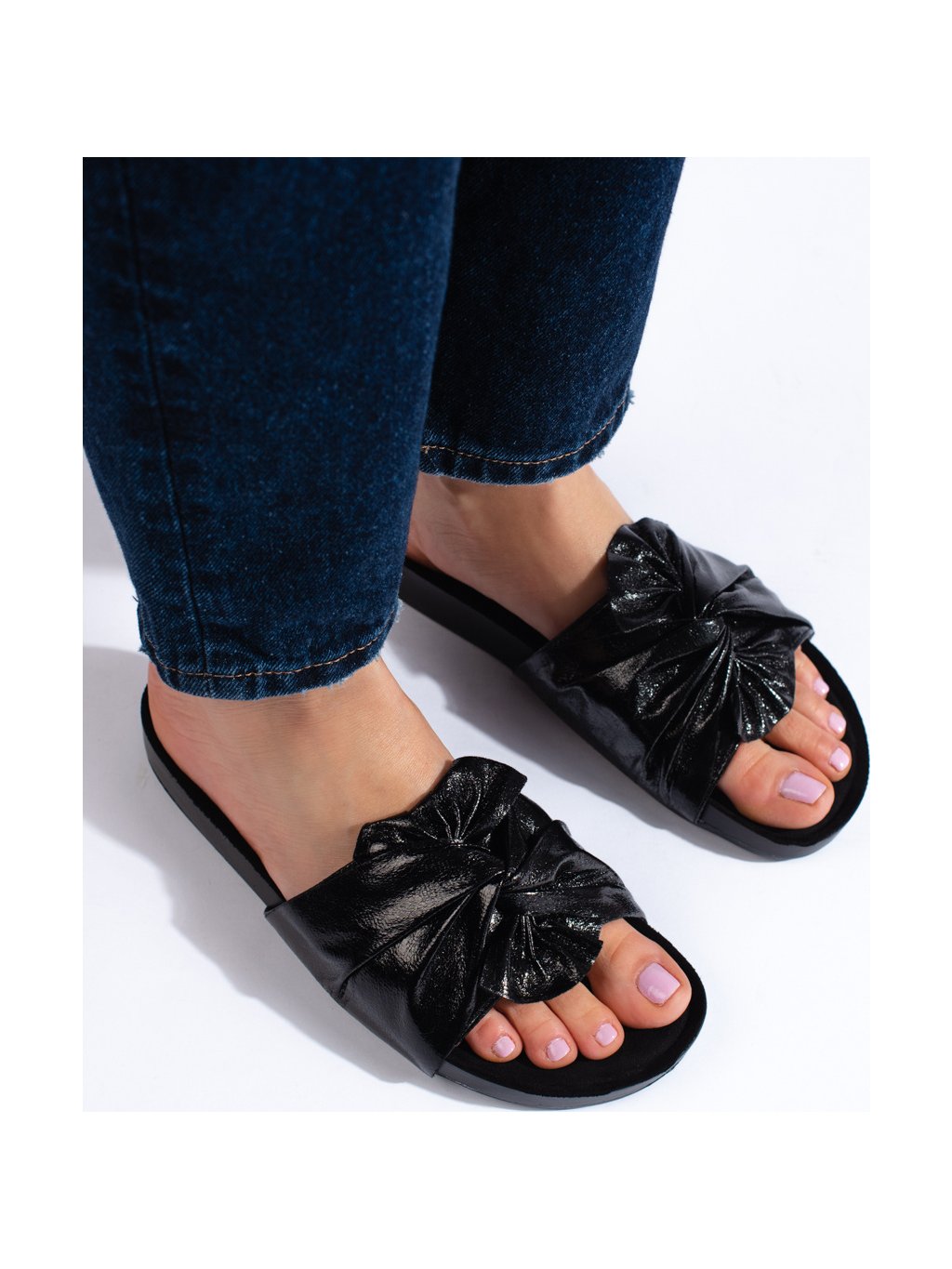 Női fekete papucs masnival Shelovet