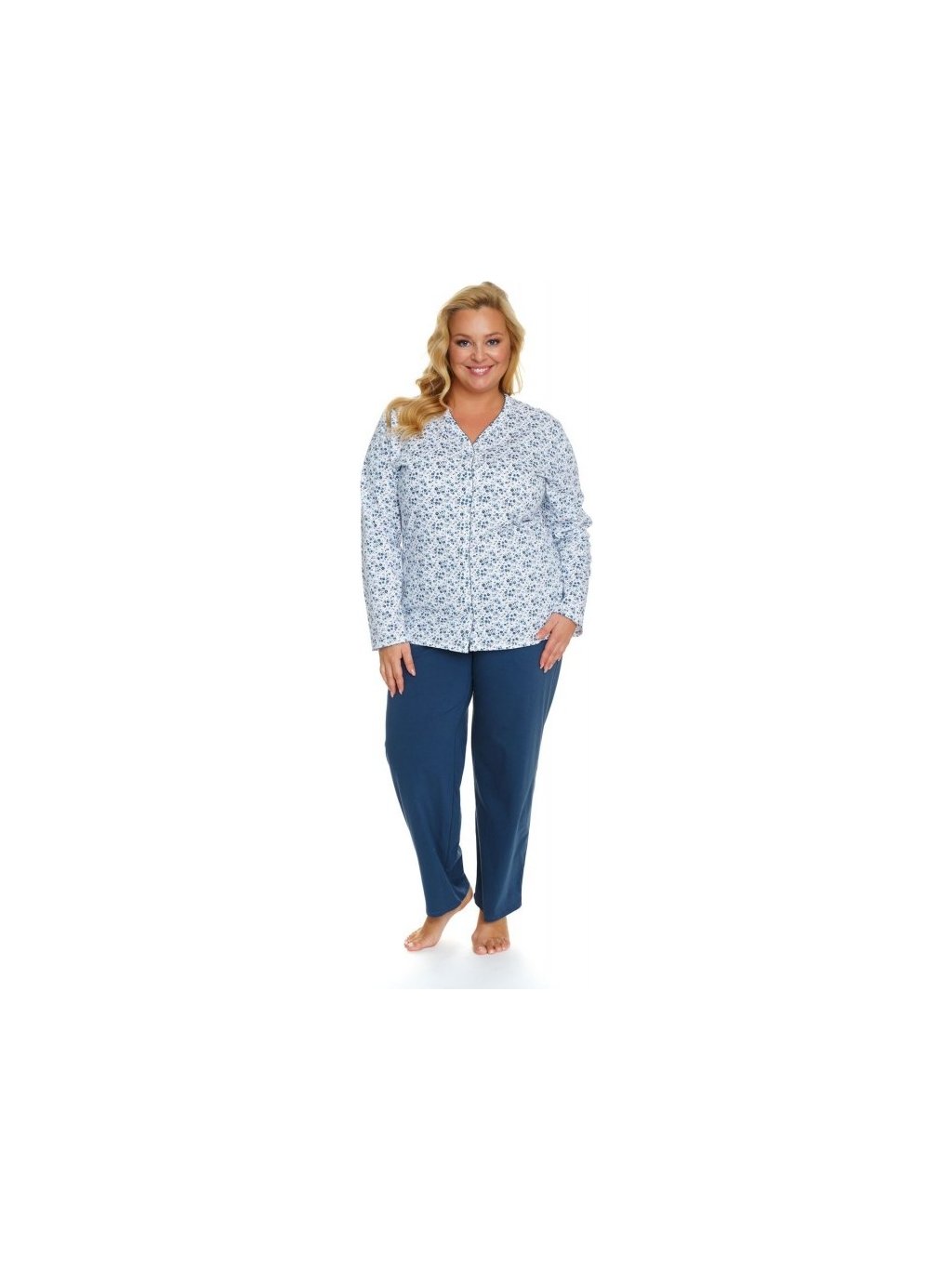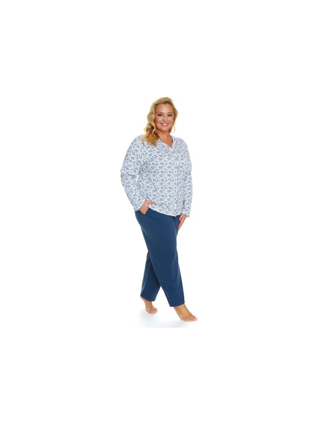 Női kék-fehér hosszú pizsama virágos mintával