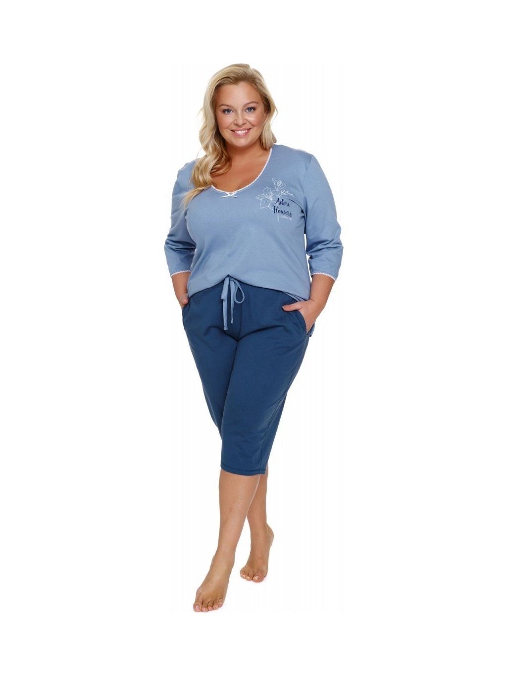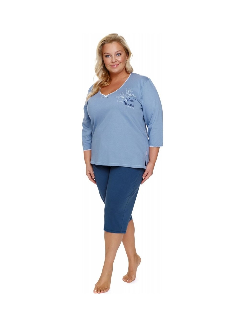 Női kék molett pizsama V-nyakkivágással Doctor Nap