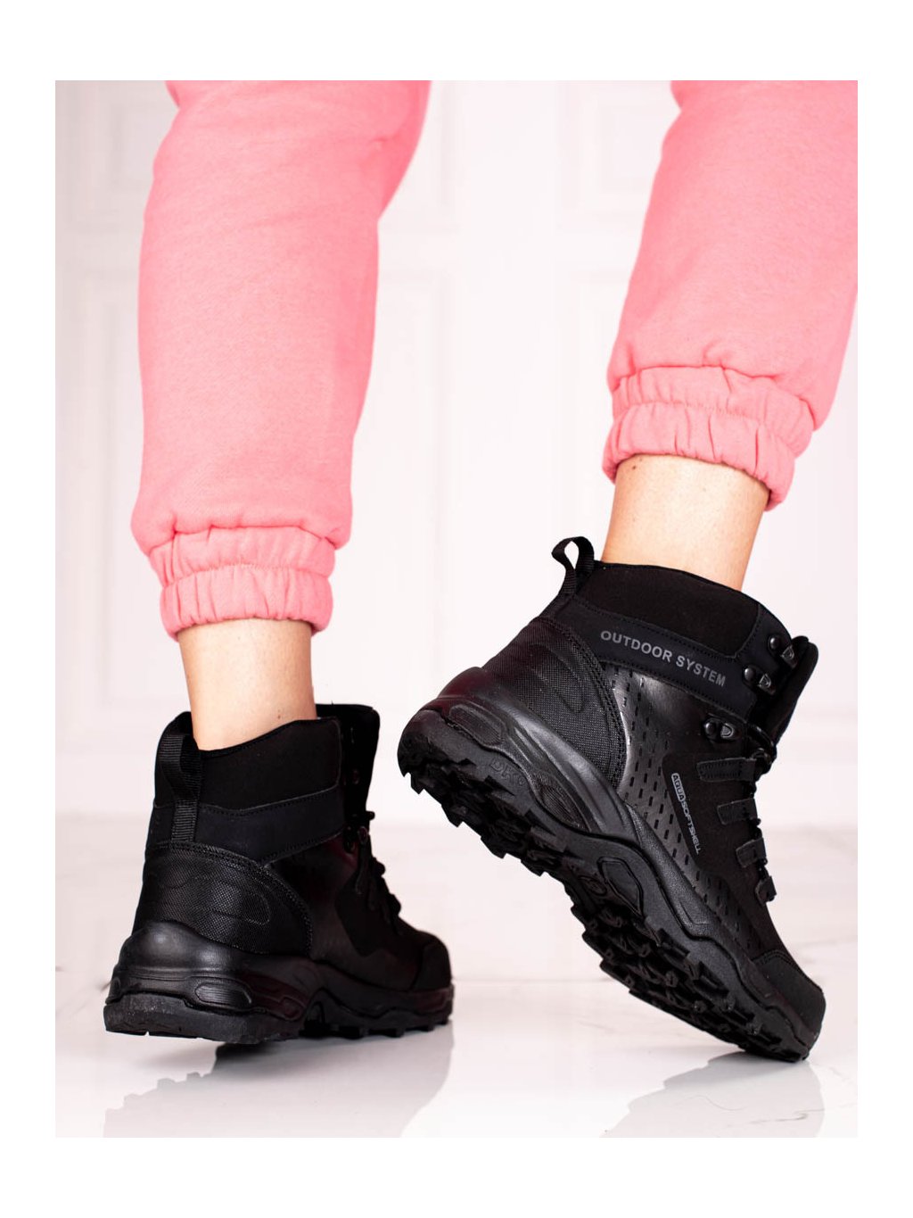 Női kényelmes fekete magas túracipő