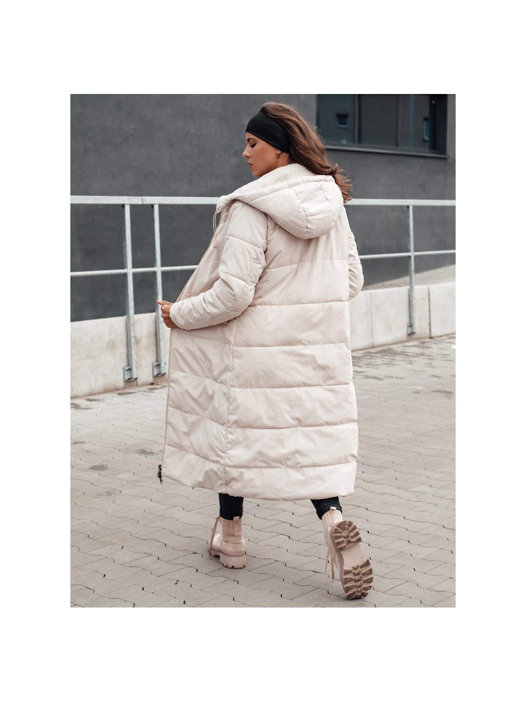 Női kifordítható krémszínű hosszú téli steppelt kabát kapucnival GLAMPUFF