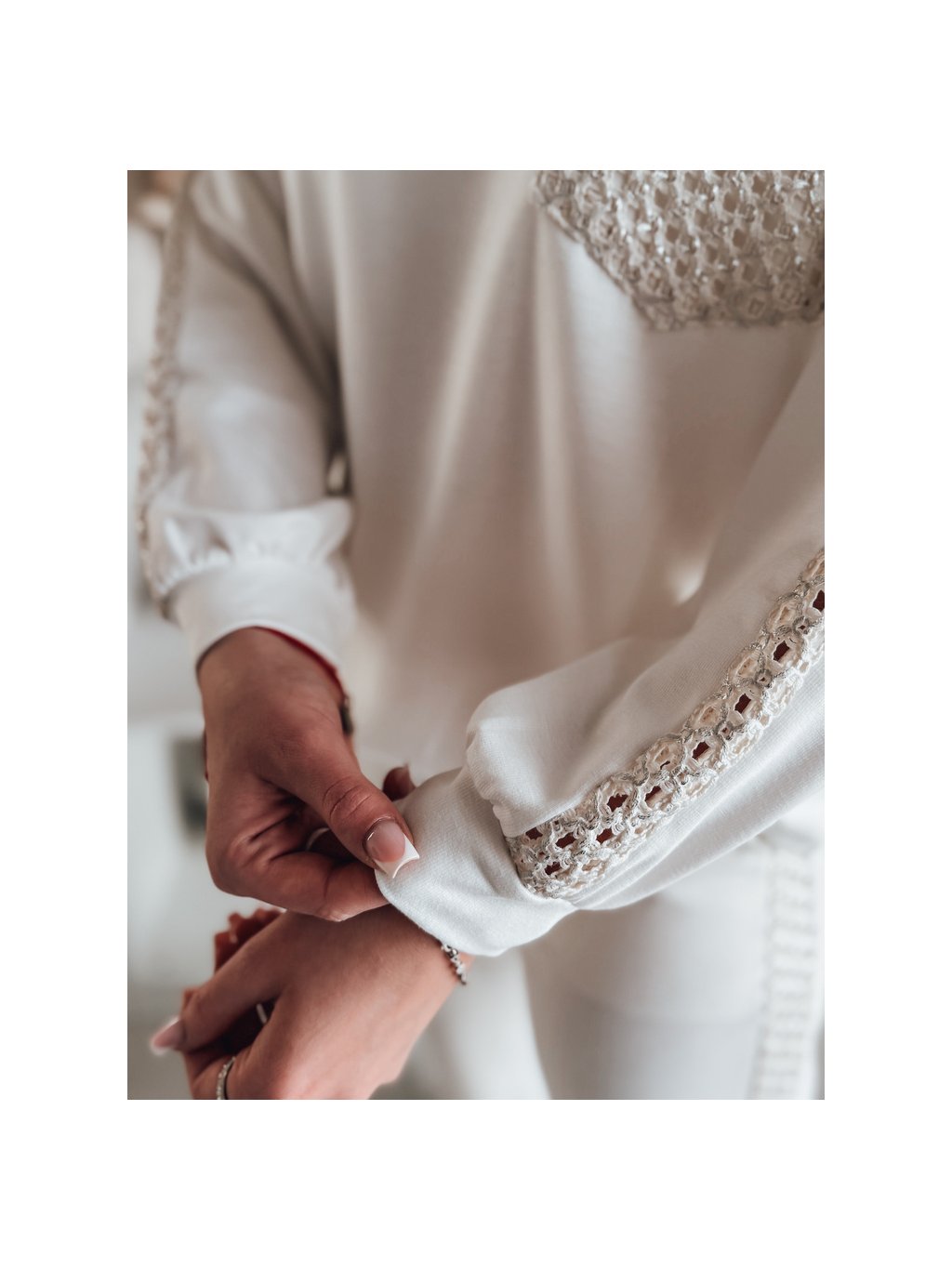 Női krémszínű pulóver finom csipke díszítéssel LUXEEN