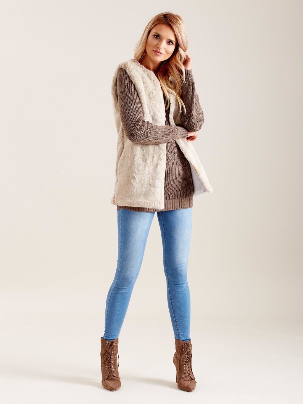 Női krémszínű szőrös mellény