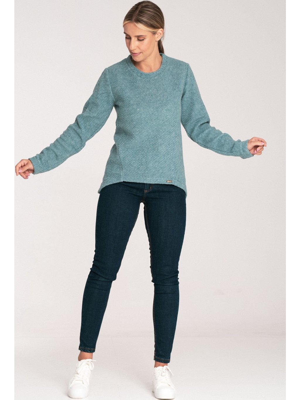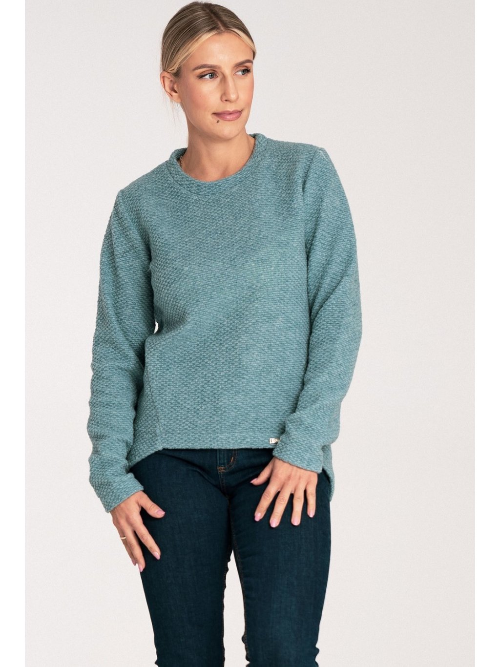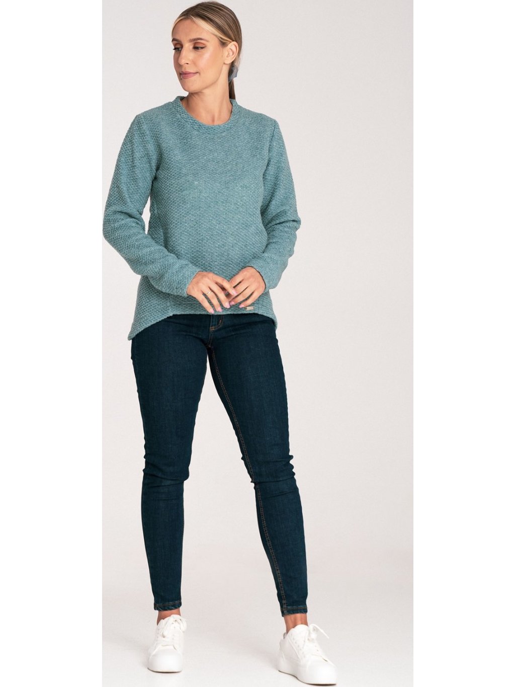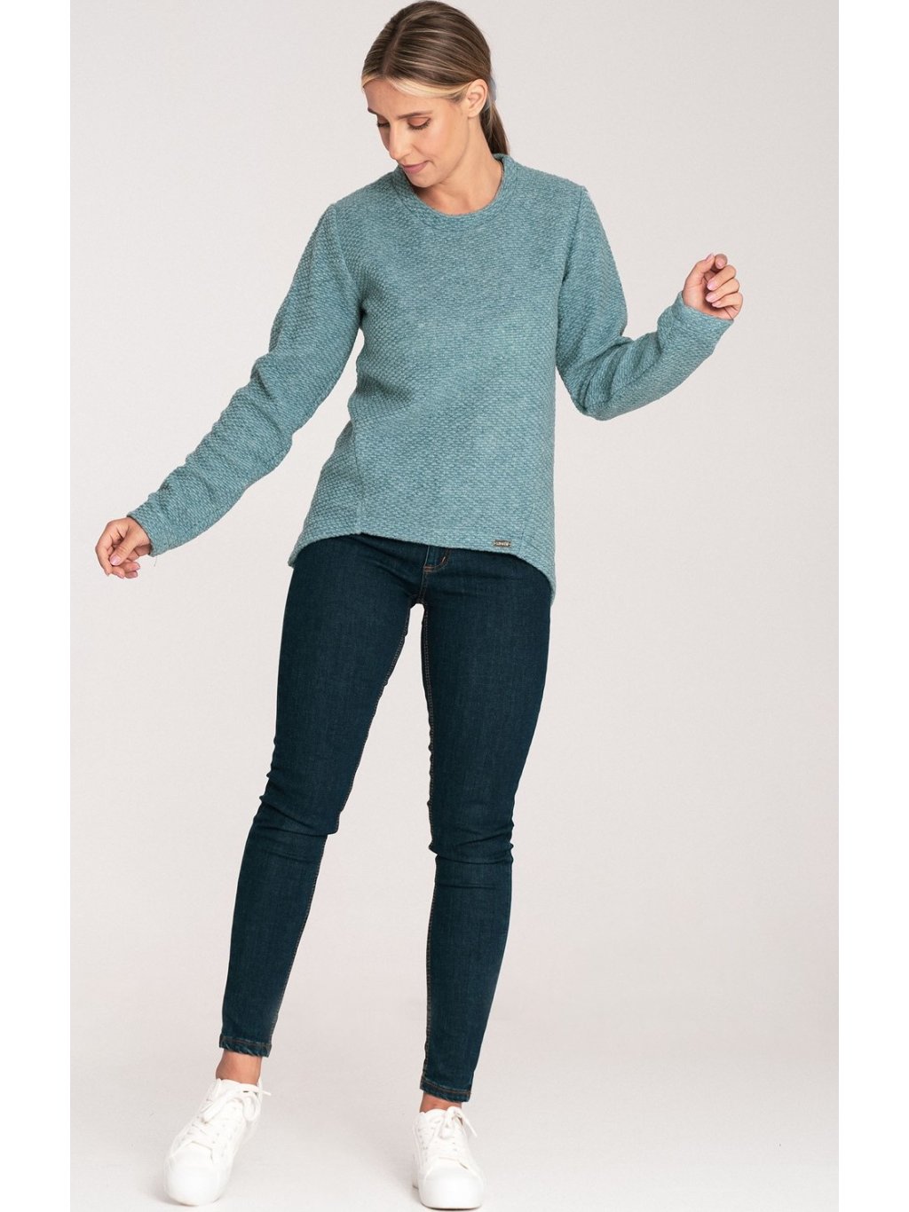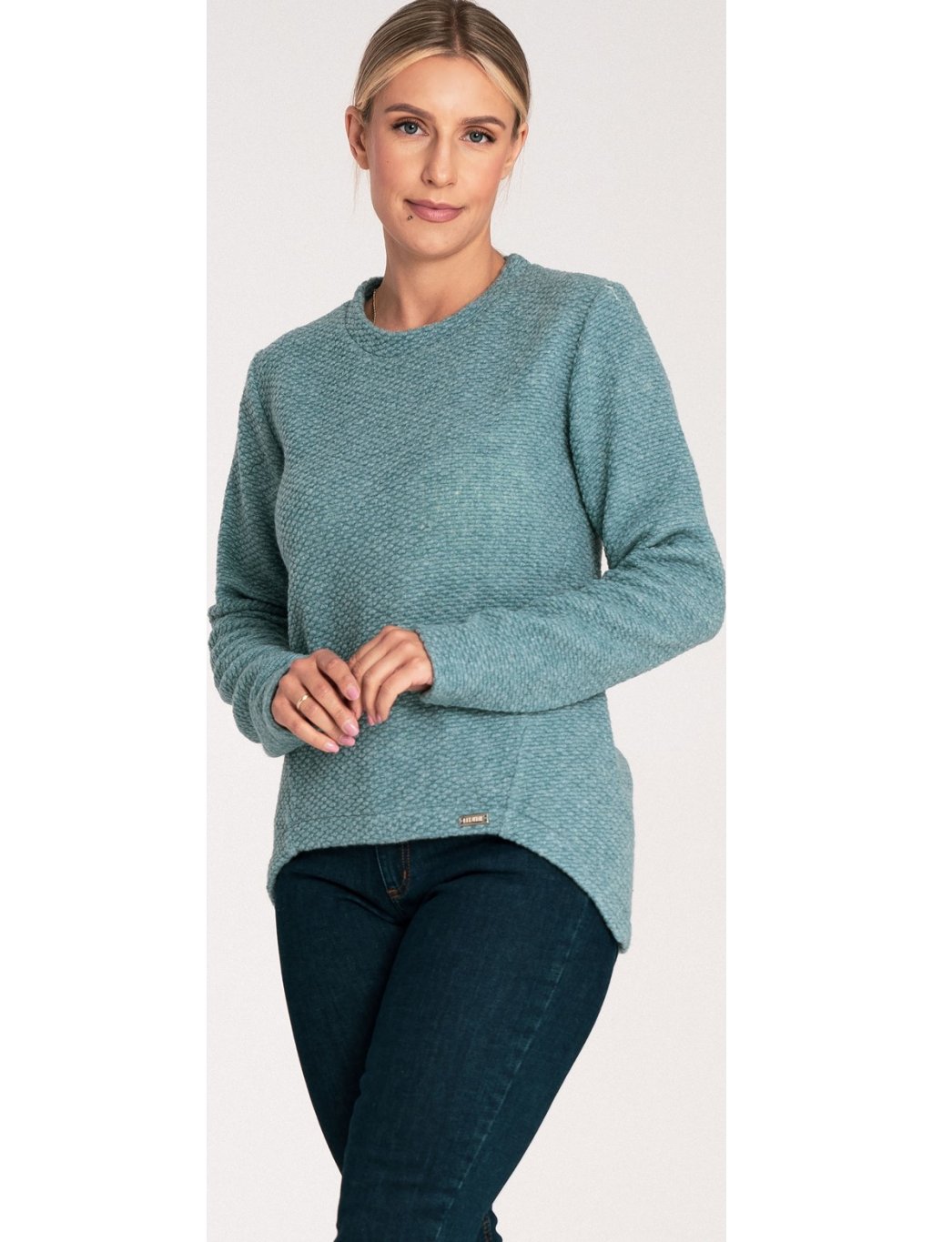 Női menta színű aszimmetrikus pulóver