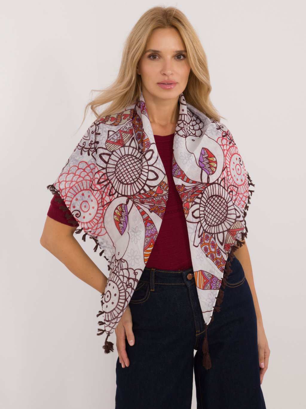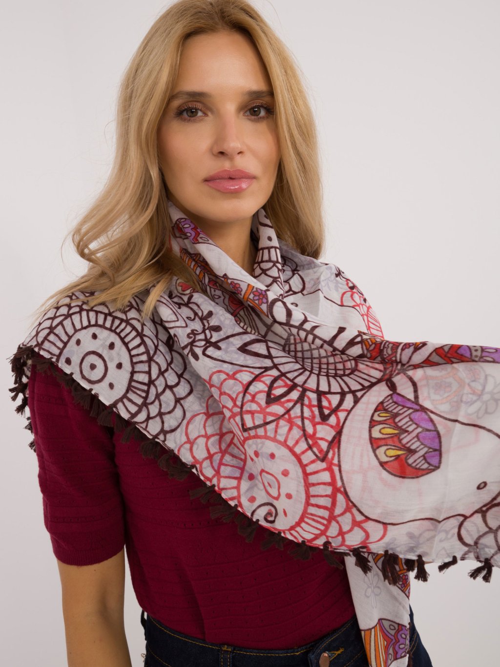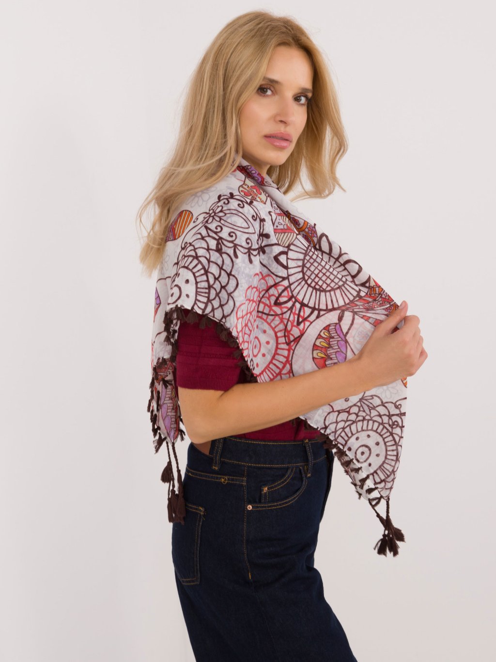 Női mintás sál rojtokkal