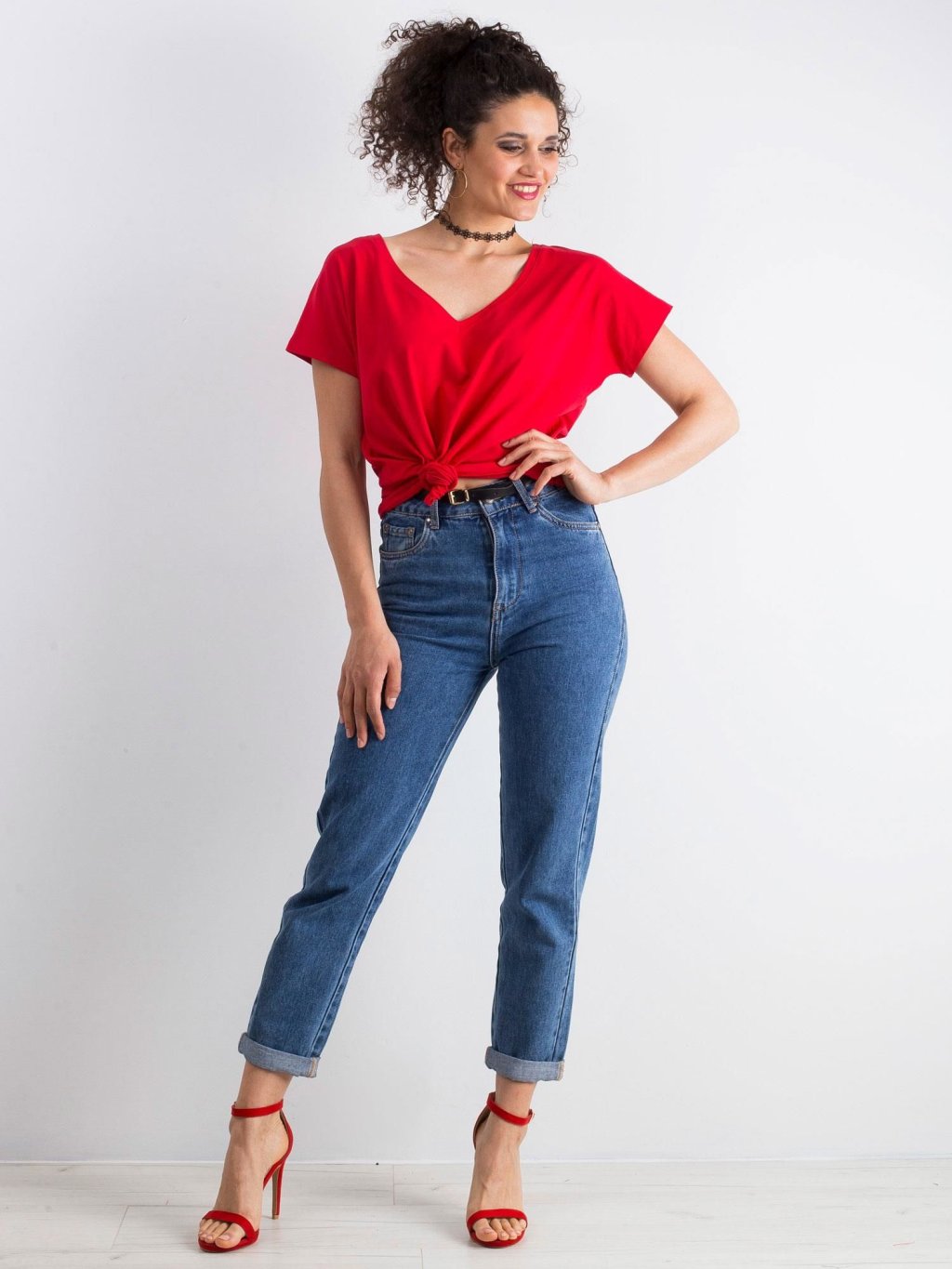 Női piros póló